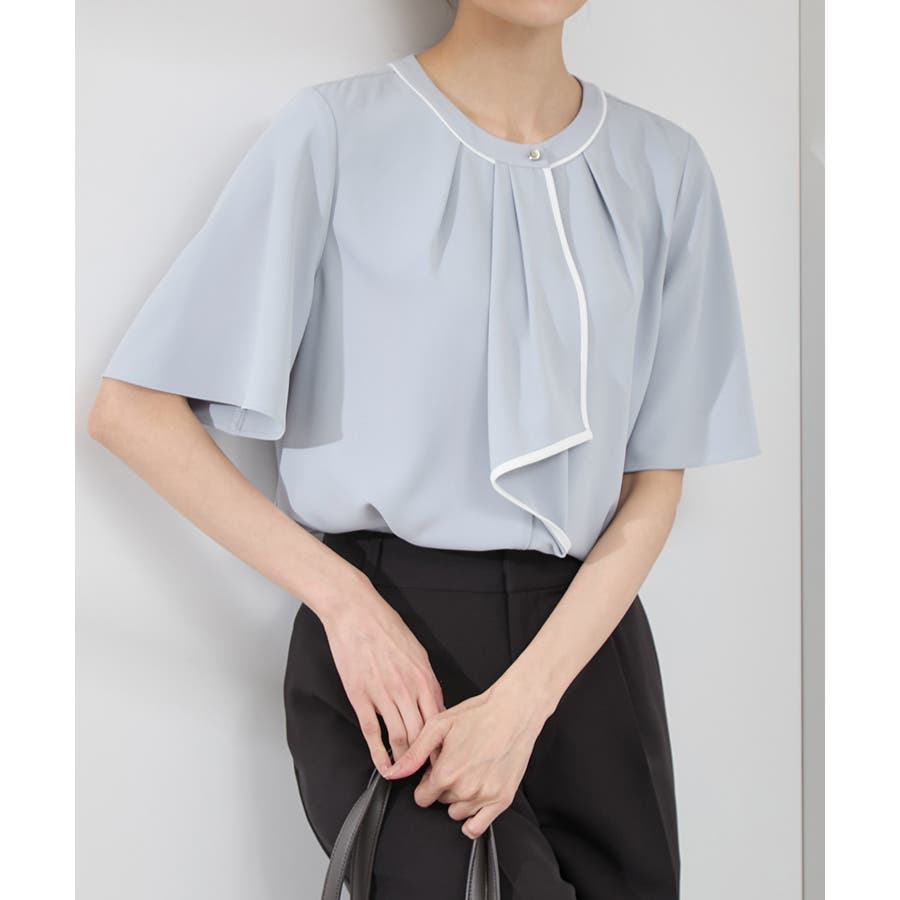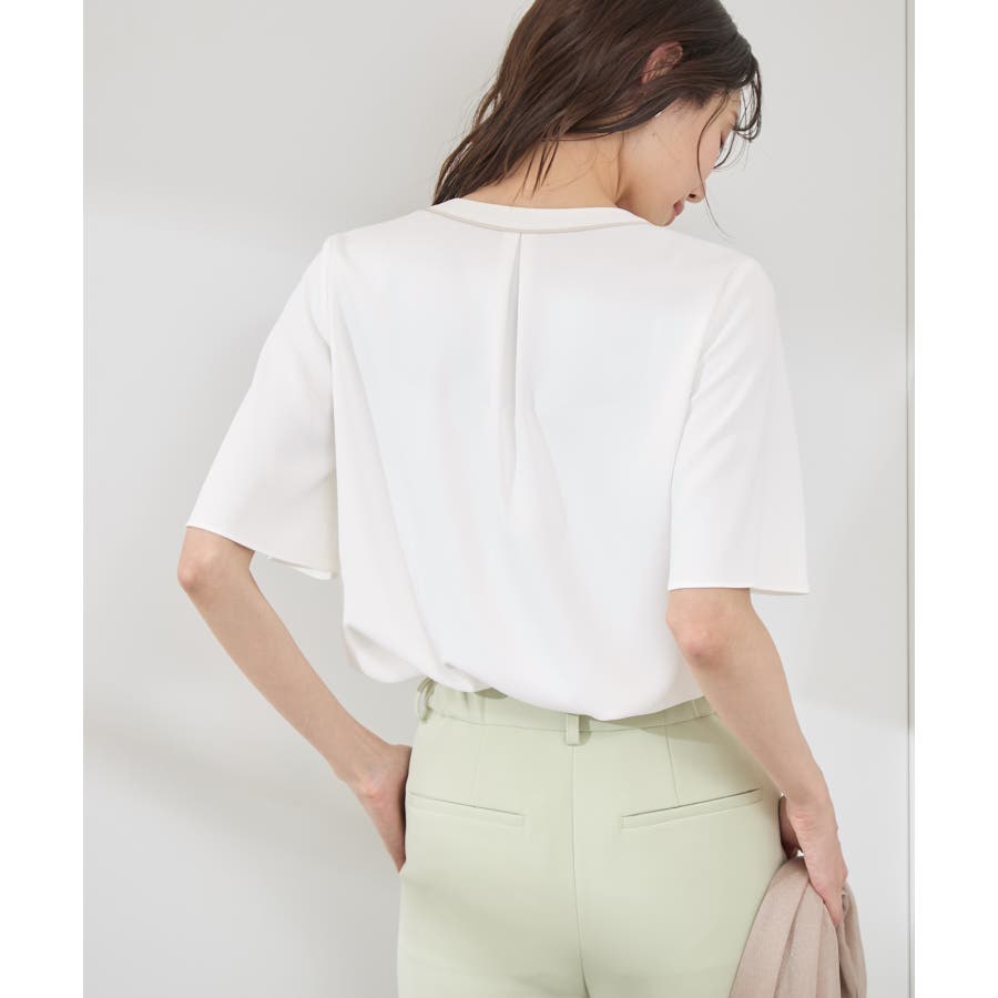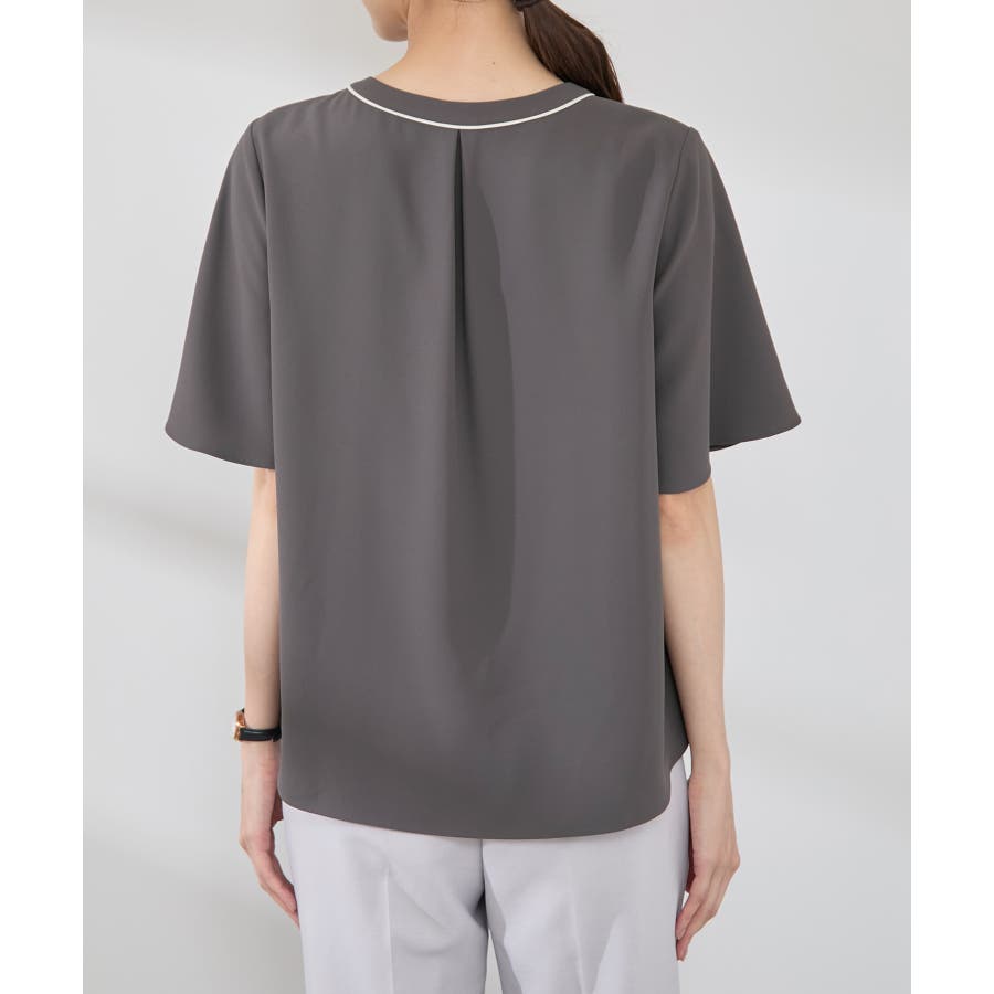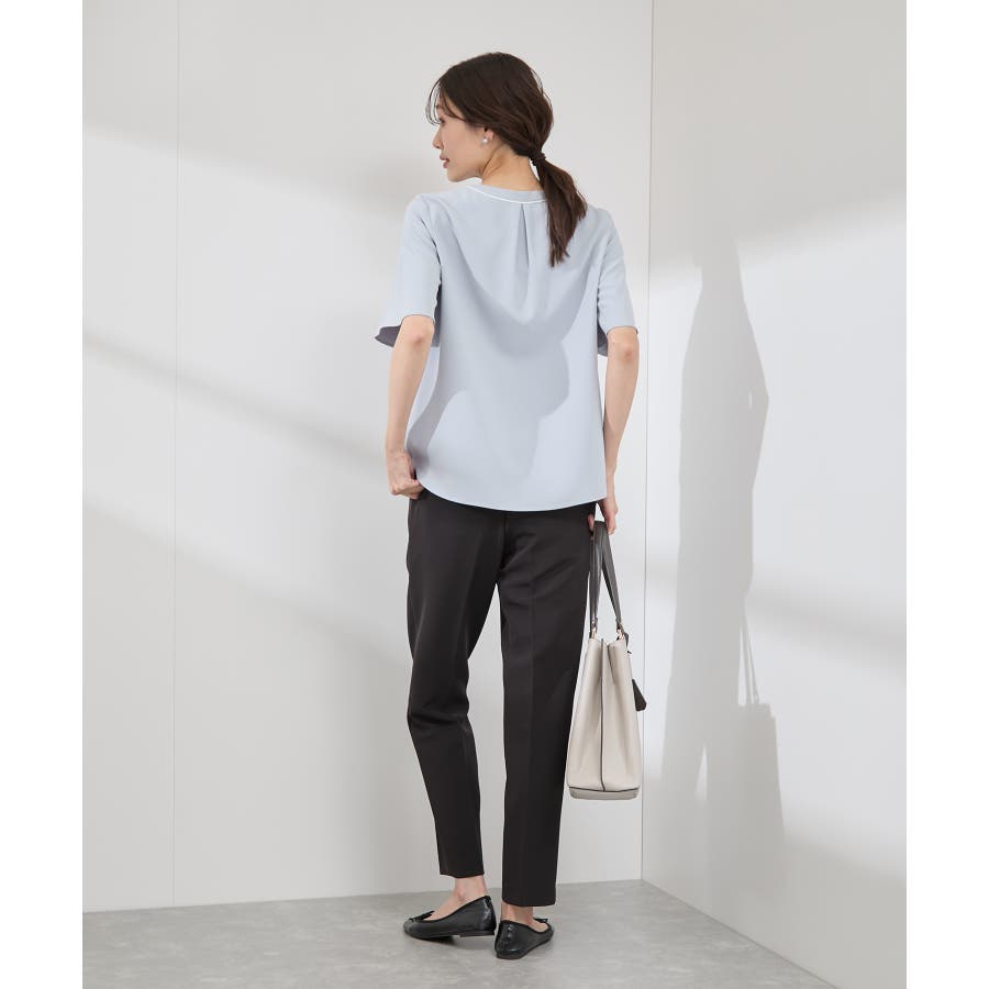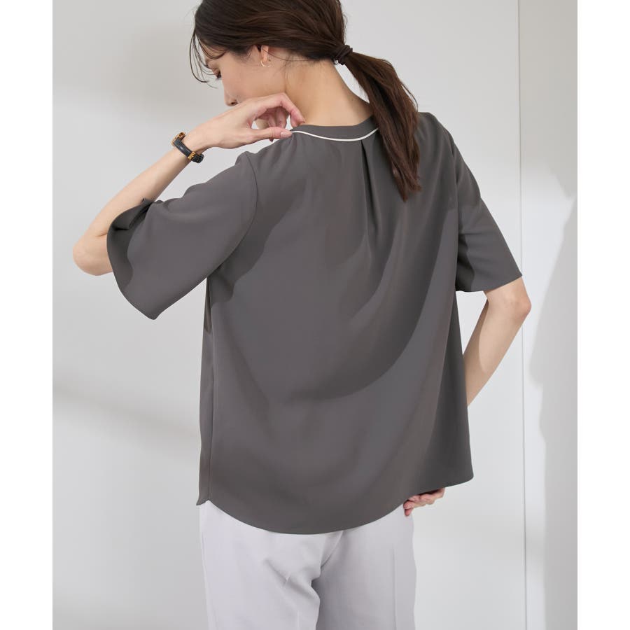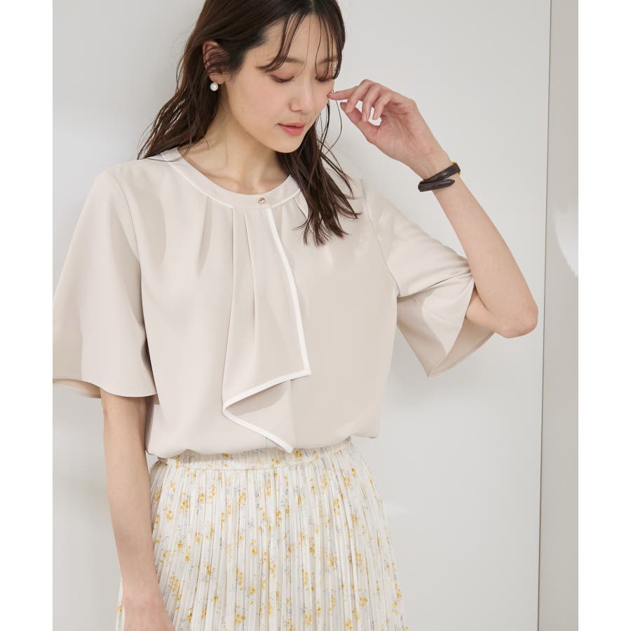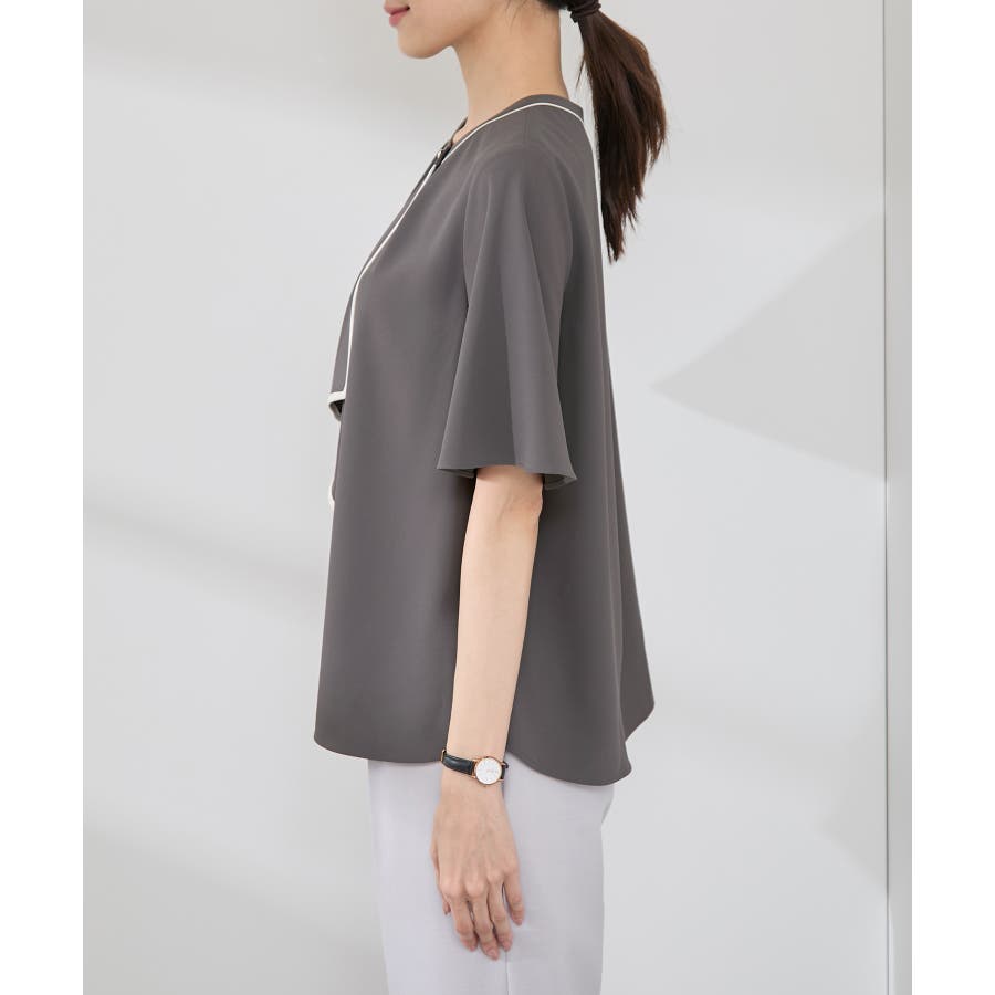 ・ややフレアの袖が腕を細く見せてくれるハーフスリーブブラウス。