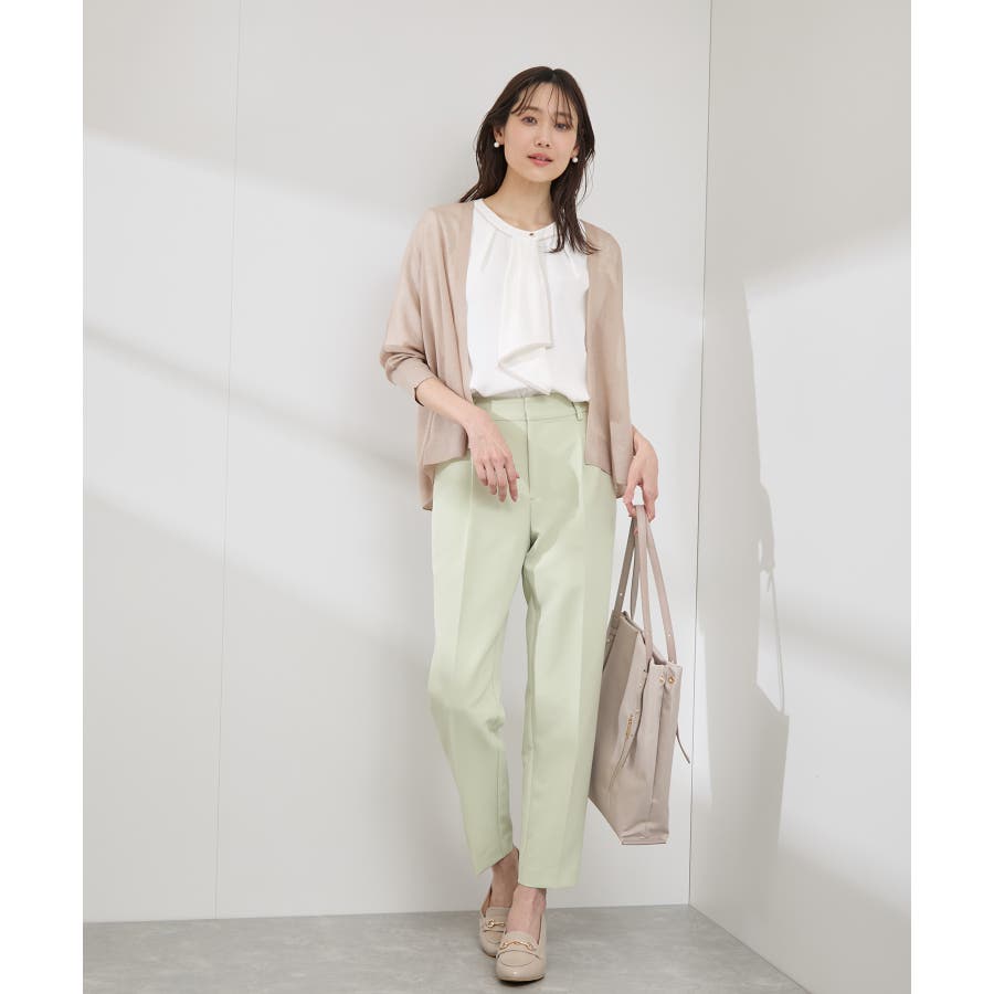・きちんと感のあるスカートやパンツを合わせればフォーマルな着こなしに。