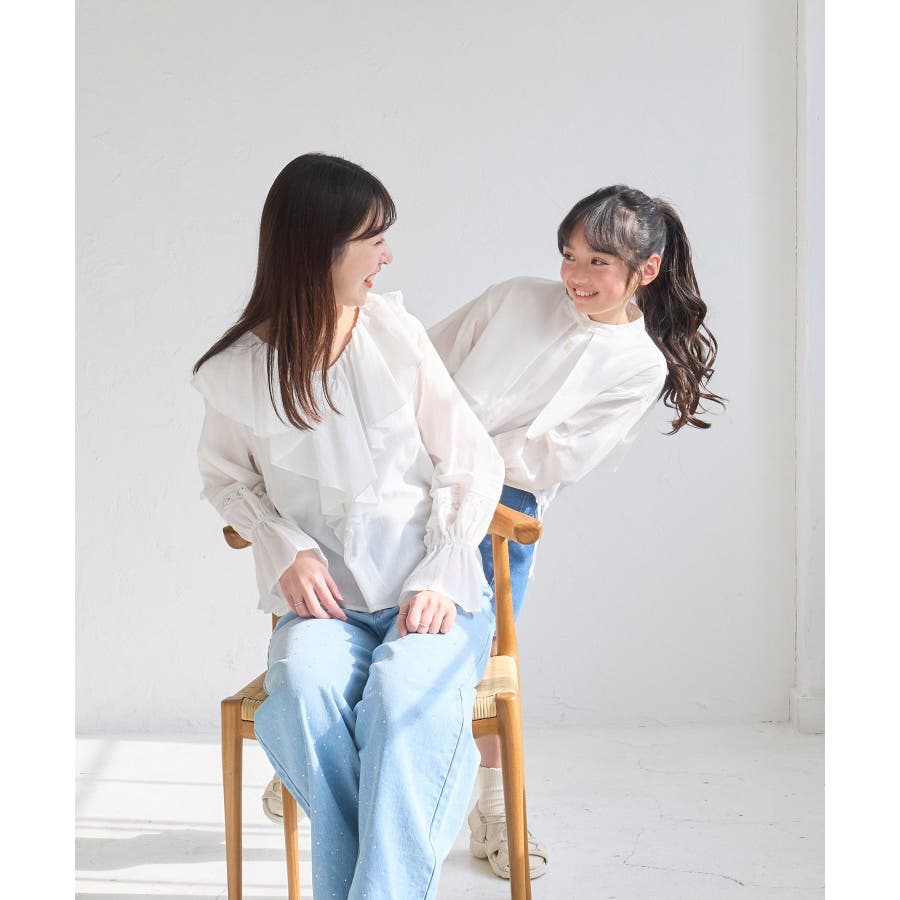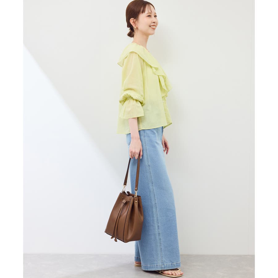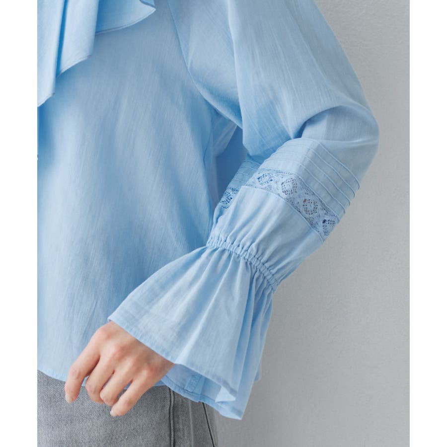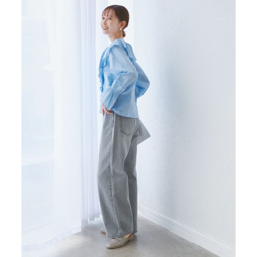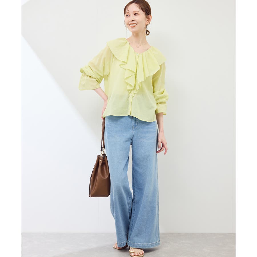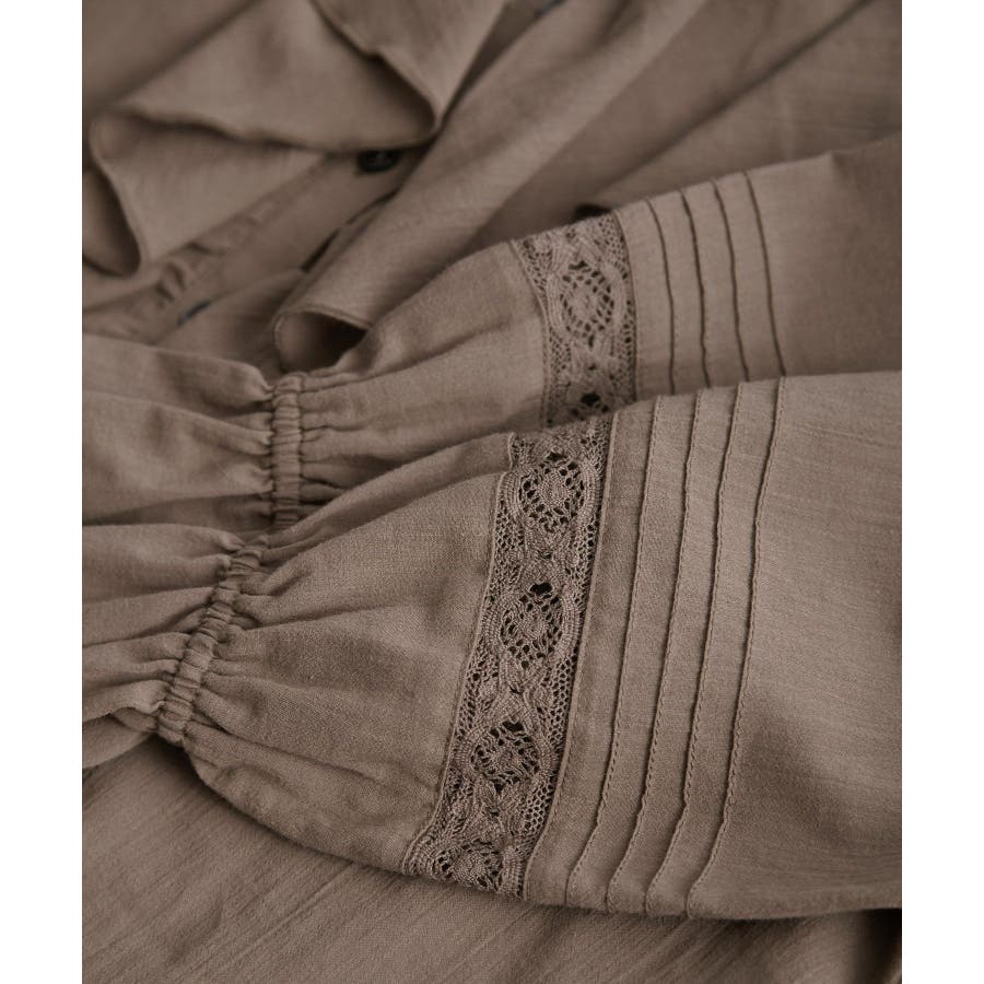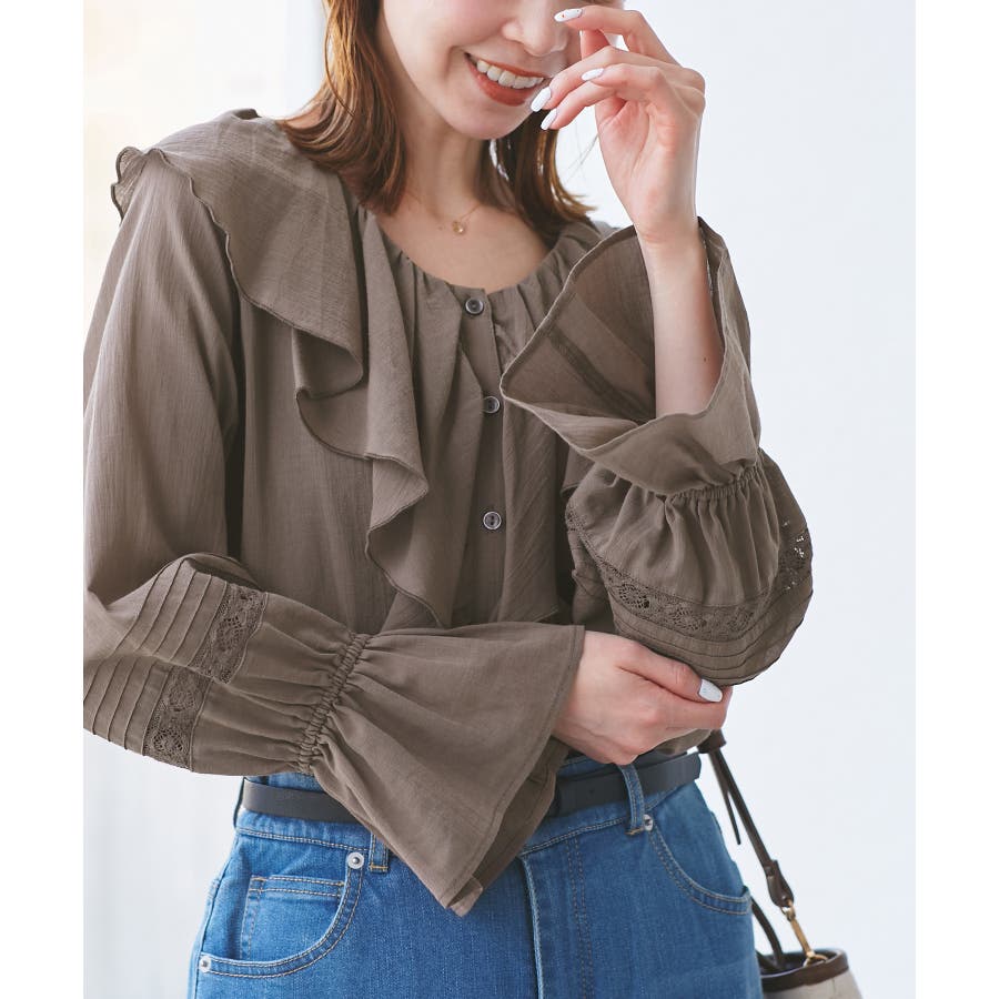 ・フロントにかけてたっぷりとあしらわれたラッフル襟が特徴。
