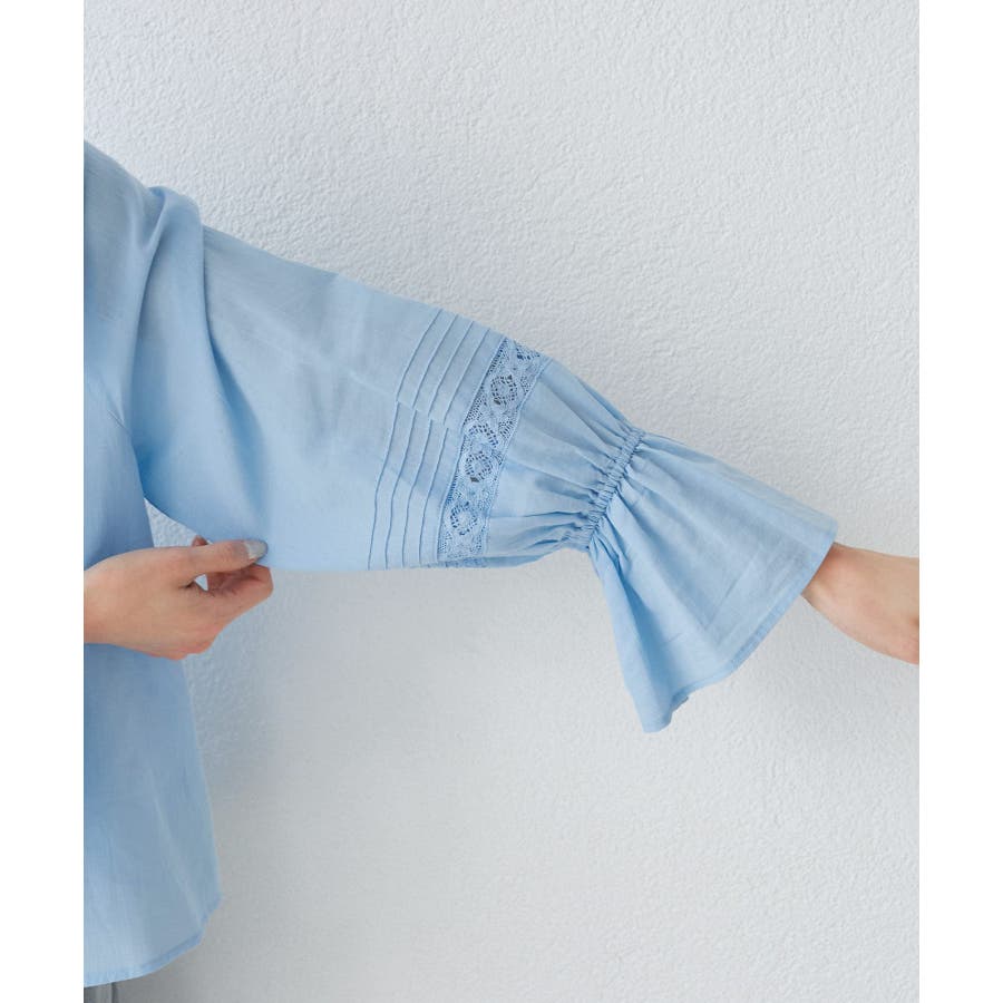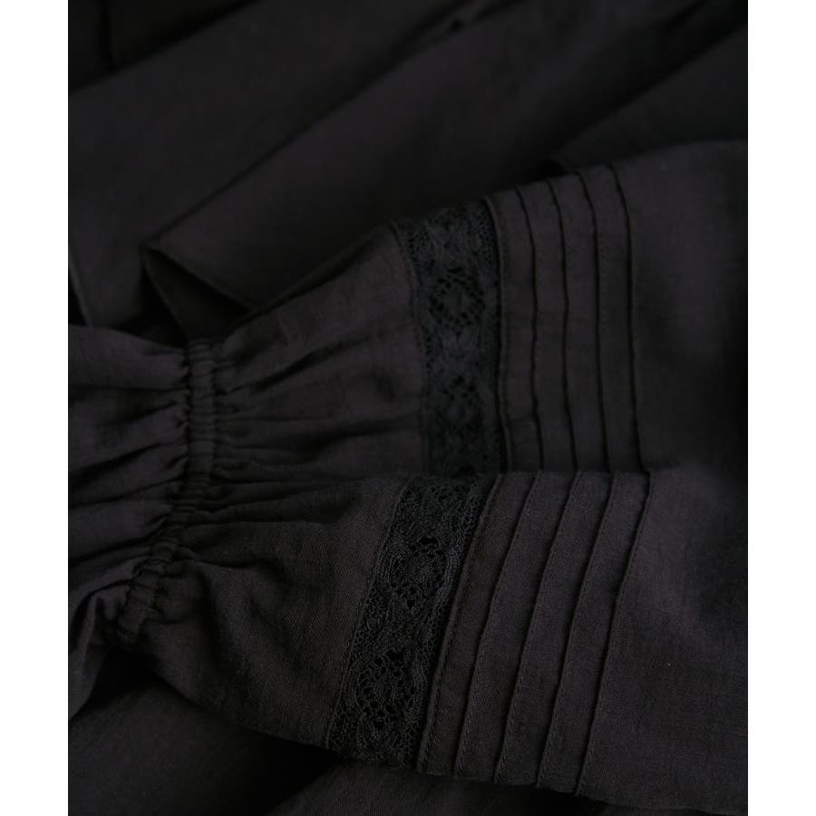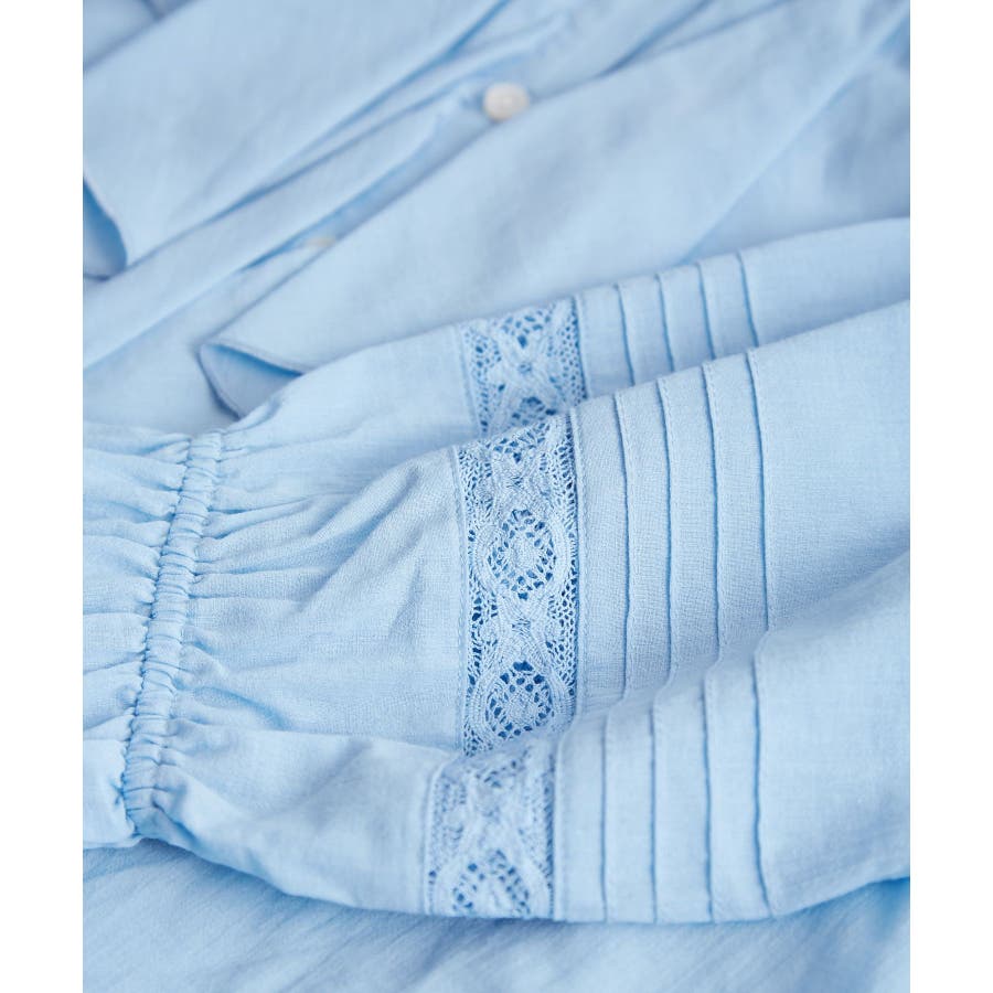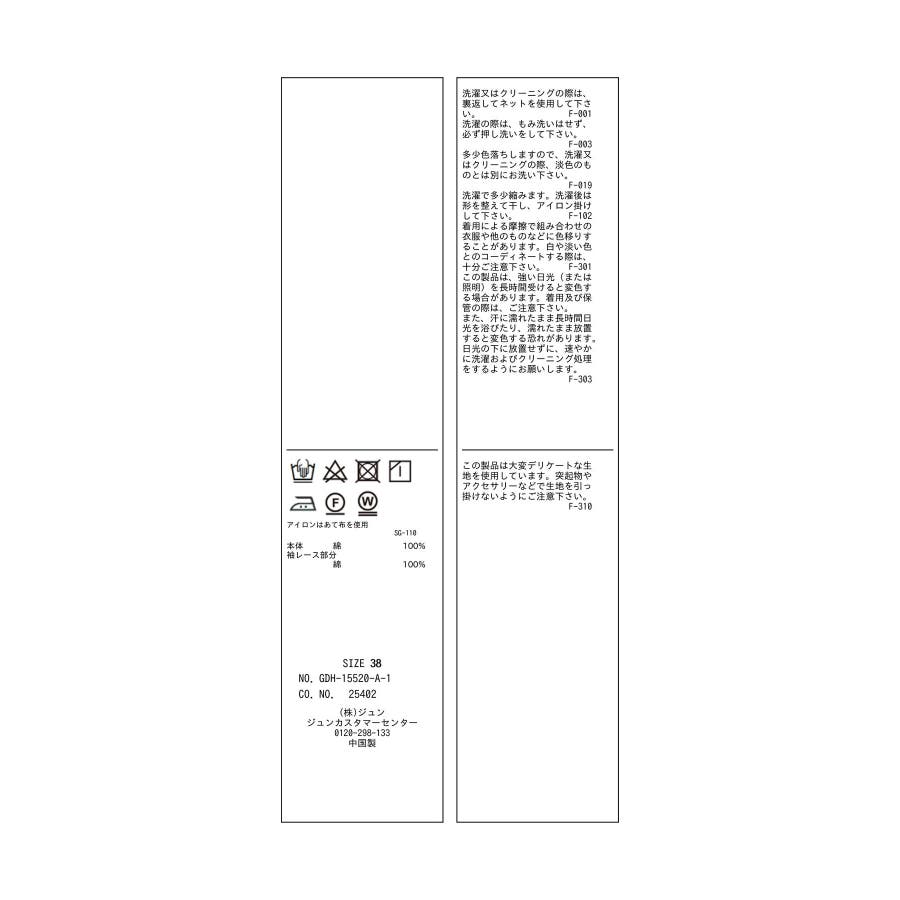 | 素材 | ブラック(01)/オフホワイト(15)/ブラウン系(22)/サックス(48):(本体)綿 100% (袖レース部分)綿 100% |
