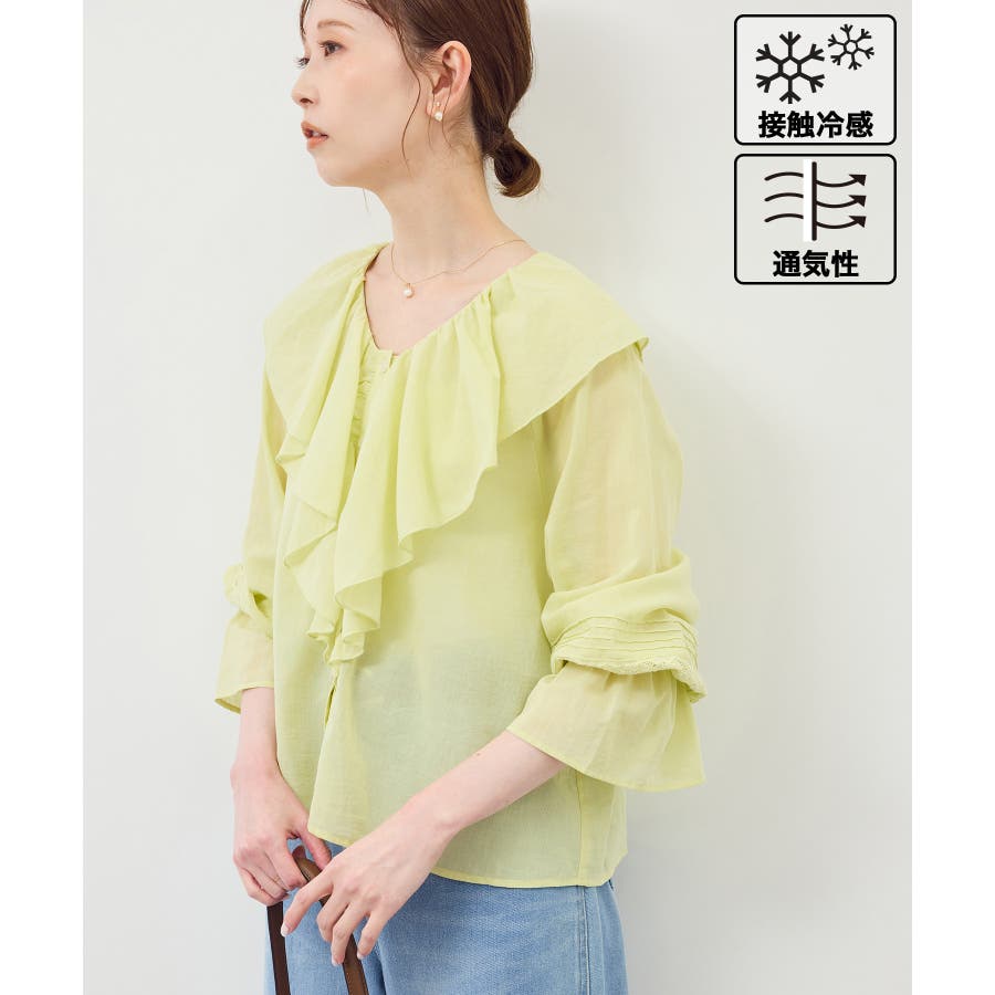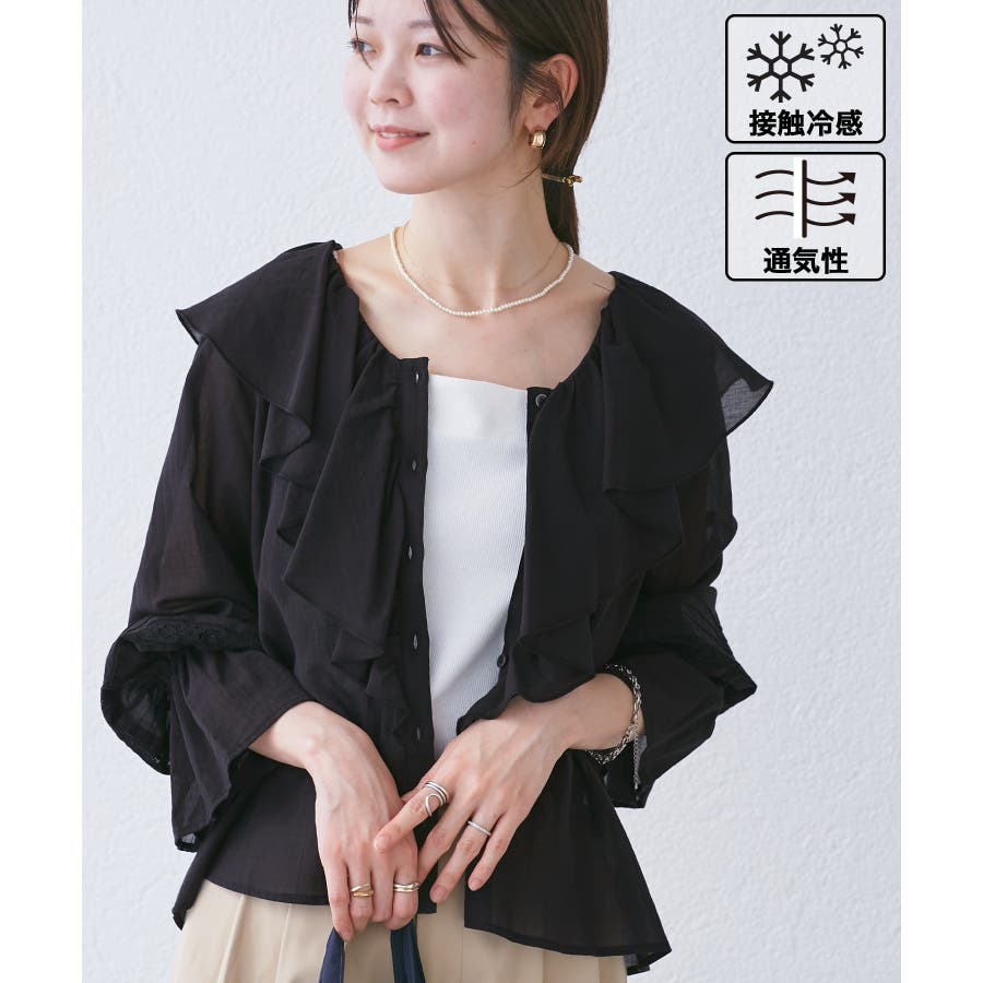【接触冷感・通気性】お着軽シャツシリーズ/綿ボイルフリルブラウス