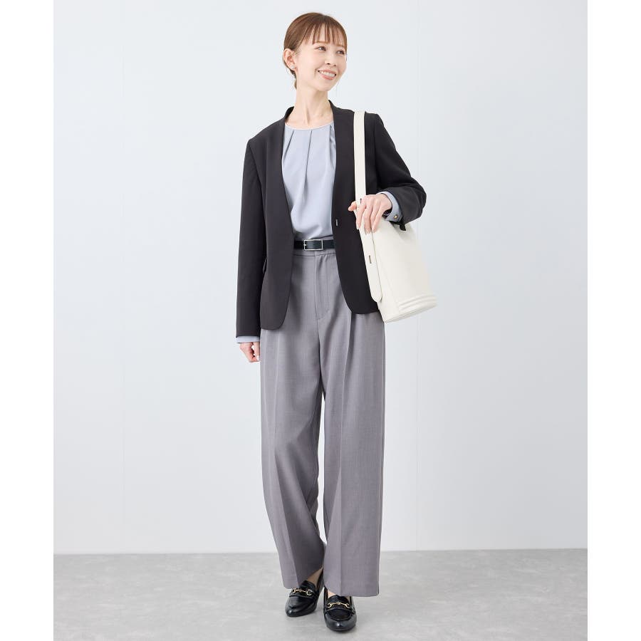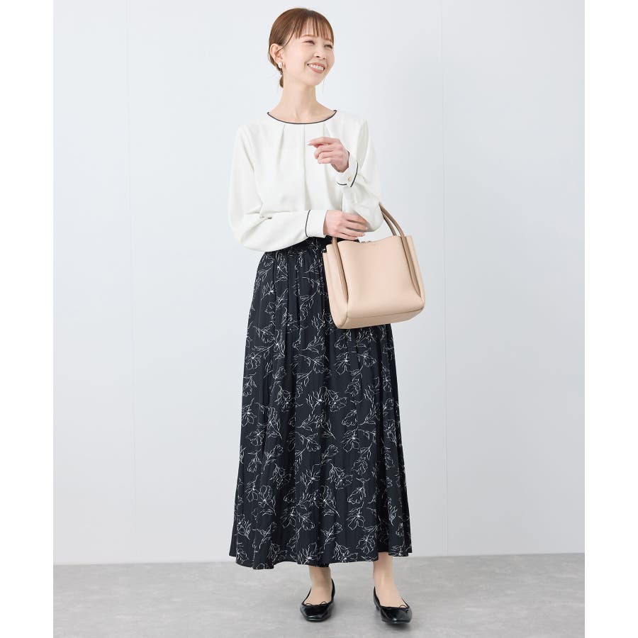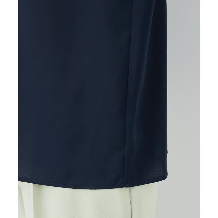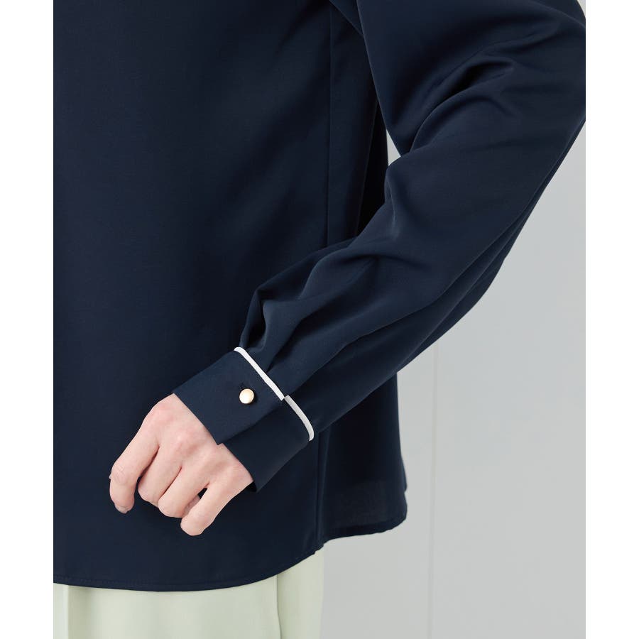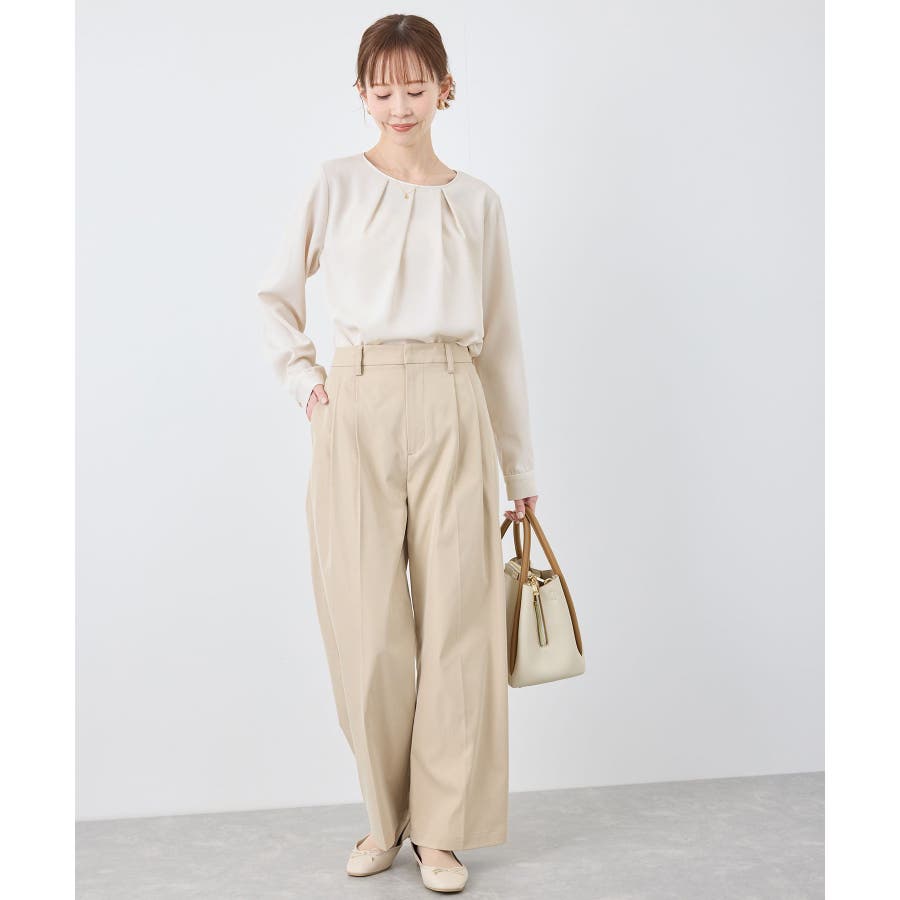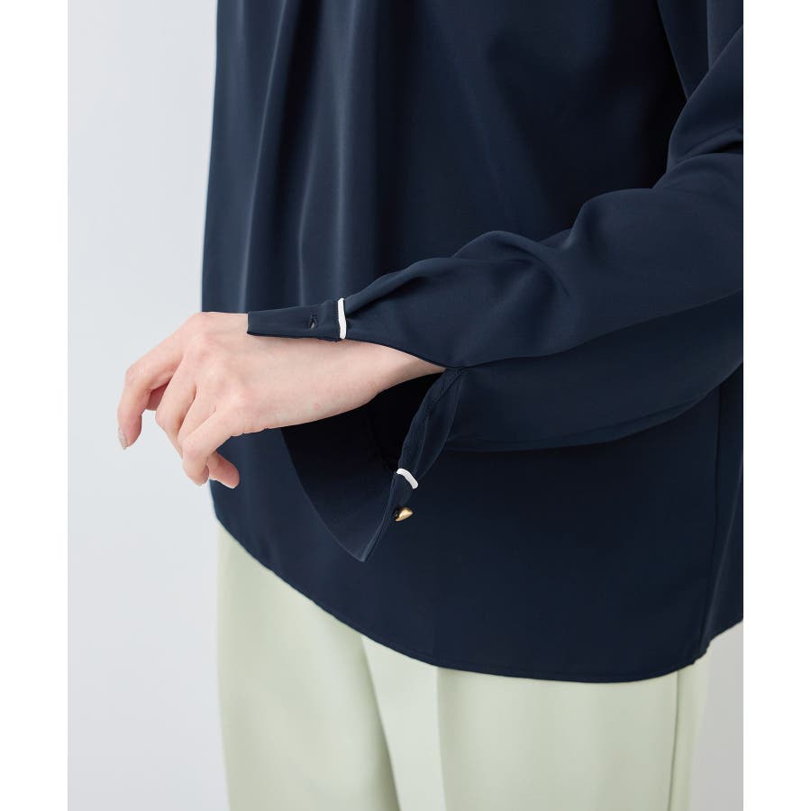 【素材感】 ・4つの機能を持った多機能ブラウス。 (1)シワになりにくい 弾力性の高い糸を使用しているため、お洗濯後のシワ回復に優れている。 (2)透けにくい 組織が二重織のため、透けにくい生地。 織り組織の変化により82.5Nt(防透け指数) →88.4Ntに改善。 (3)汚れが落ちやすい 分子レベルの撥水加工により、水溶性汚れが落ちやすい。 (4)UV対応 遮蔽率 95.9% を実現しているので、紫外線を通しにくい。 ・再生ポリエステルを使用した、サステナブルなアイテム。 【デザイン・シルエット】 ・アシンメトリーなフロントタックがポイントの長袖プルオーバーブラウス。 ・ネックラインとカフスの切り替えにパイピング入り。 ・裾はベーシックなフラットヘムで、パンツにもスカートにも好相性。 【カラー】 ・オフホワイト(15):オフホワイト×オフホワイト ・キナリ系(18):オフホワイト×チャコール ・ベージュ(27):ベージュ×オフホワイト ・ネイビー(40):ネイビー×ライトベージュ ・サックス(48):サックス×ライトベージュ ※ネイビー(40)はWEB限定カラー。 【スタイリングポイント】 ・春らしいフラワープリントスカートやレーススカートと合わせれば、卒業式や入学式、入園式、卒園式などのハレの日にぴったり。 ・シンプルなジャケットやパンツと合わせて、通勤やお仕事、オフィスカジュアルスタイルに最適。 ・きれいめなデザインなので、学校行事やセレモニーにも活躍。 ・ジーンズでカジュアルダウンすれば、オンオフどちらでも着こなせる万能アイテム。 ----------------------------- 裏地:なし 透け感:オフホワイト(15)キナリ(18)は光に当てるとややあり 伸縮性:ややあり 生地感・厚さ:普通 季節:春・秋・冬(ジャケットのインナーとして◎) ----------------------------- ※撮影時の光、お使いのモニター環境によって色の見え方が違う場合がございます。 ※分子レベル撥水加工の為、水溶性の汚れに防汚効果を発揮しますが、ファンデーションや口紅といった油分が多い汚れには対応しておりません。 ※水との親和性を良くする柔軟剤の使用は、撥水効果を弱めます。柔軟剤の使用量はお控え頂くことをお勧め致します。 ※着用や取扱いにより効果は永久ではございませんのでご注意ください。 ※防透け指数は、一般的な基準では93.0Nt以上で透け防止性があると評価しております。 ※モデル身長:165cm 着用サイズ:38