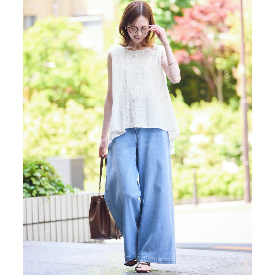 ・デニム合わせでナチュラルに着こなすのはもちろん、同系色のパンツと合わせたワントーンコーデでより上品な印象に。