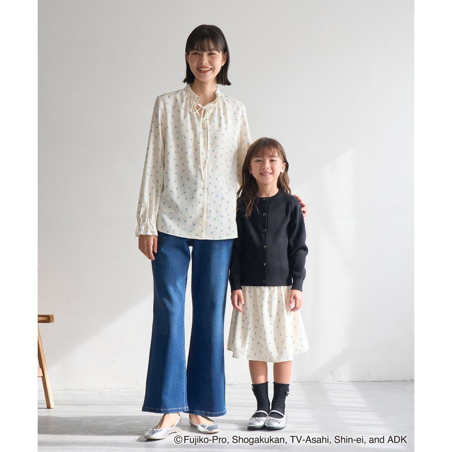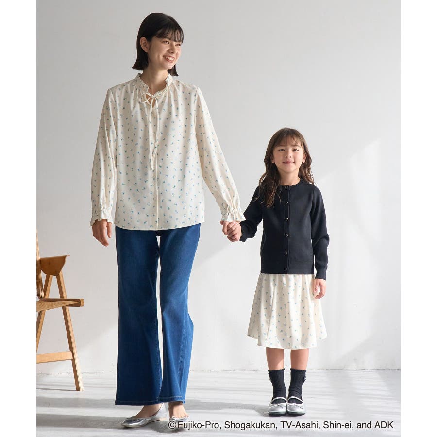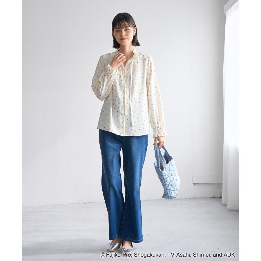 【デザイン・シルエット】 ・国民的大人気キャラクターの『ドラえもん』と、ROPE' PICNICのスペシャルアイテムシリーズ。 ・ドラえもんを交えた小花プリントがキュートな長袖ブラウス。 ・前開き面はネックリボンがポイント。 ・袖口を絞ったキャンディスリーブ。 ・控えめなフリルネックもポイント。 【カラー】 ・オフホワイト(15):ドラえもん ・ブラック(01):ドラミ 【スタイリングポイント】 ・同柄のブラウス(品番:GDH15900)と合わせ、ワンピース見えで着用するのもおすすめ。 ・きれいめなスカートやパンツでお出かけ仕様にもなる一枚。 ・カジュアルなサロペット合わせも一押し。 ----------------------------- 裏地:なし 透け感:オフホワイト(15)はややあり 伸縮性:なし 生地感・厚さ:やや薄手 季節:春・秋・冬(ニットやカーディガンのインナーとしても◎) ----------------------------- ※撮影時の光、お使いのモニター環境によって色の見え方が違う場合がございます。 ※モデル身長:166cm 着用サイズ:38