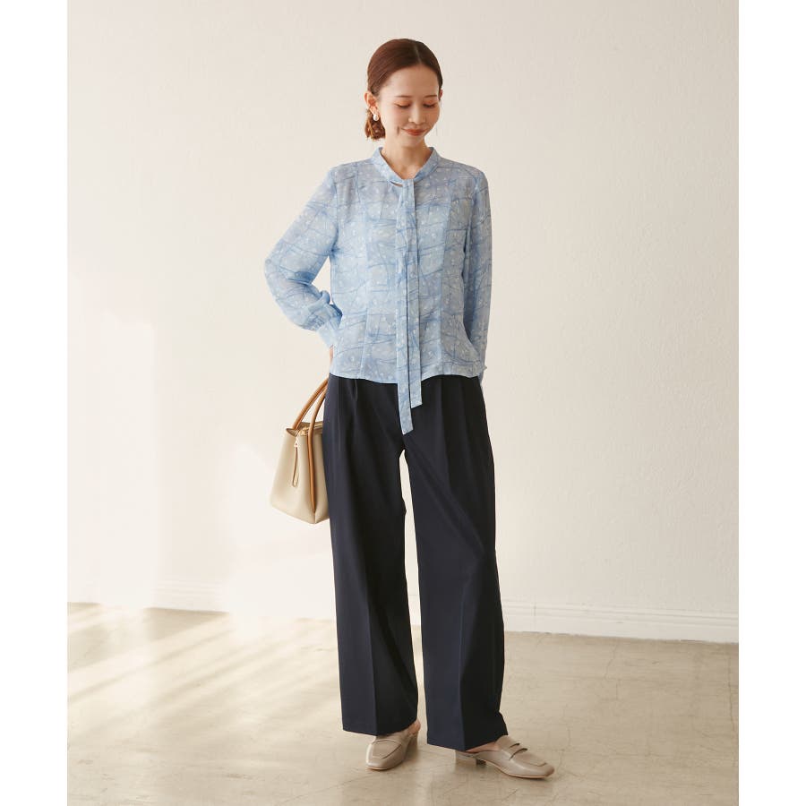 ・リボンタイがアクセントとなり、カーディガンやジャケットのインにも映える。