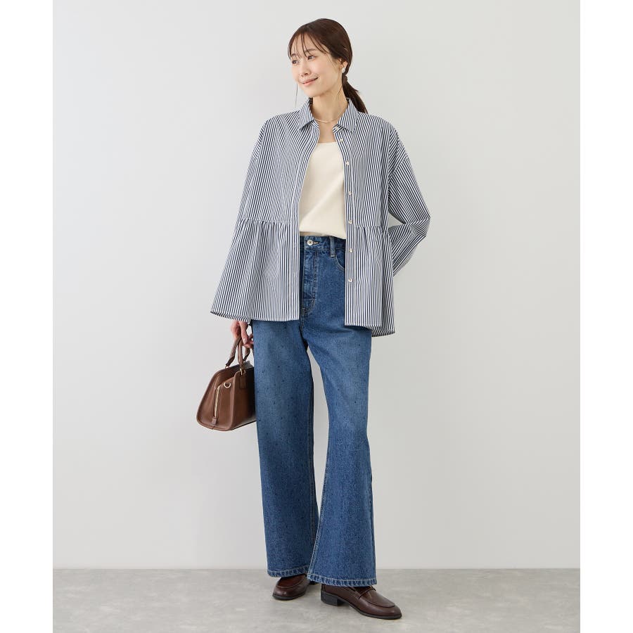 ・フレアパンツとのコーディネイトは全体のバランスが取りやすく、小柄な方にもおすすめ。