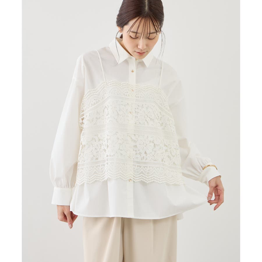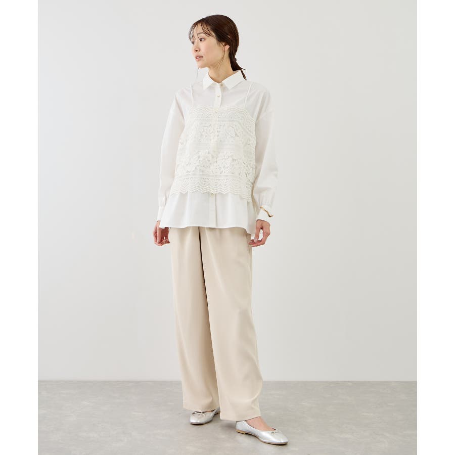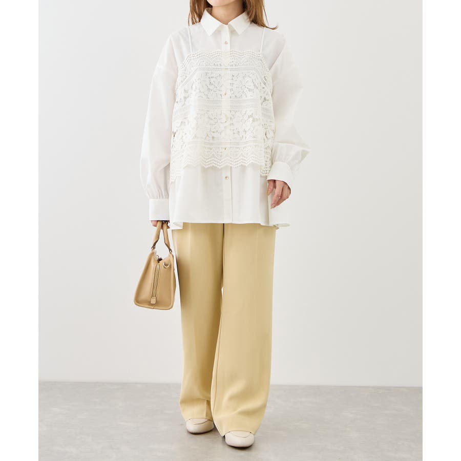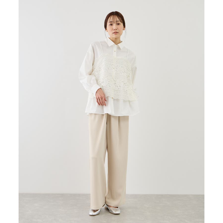 ・レースキャミとのレイヤードでフェミニンなコーディネイトに。