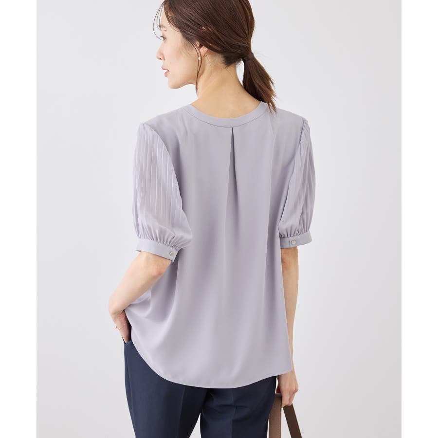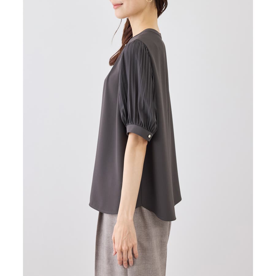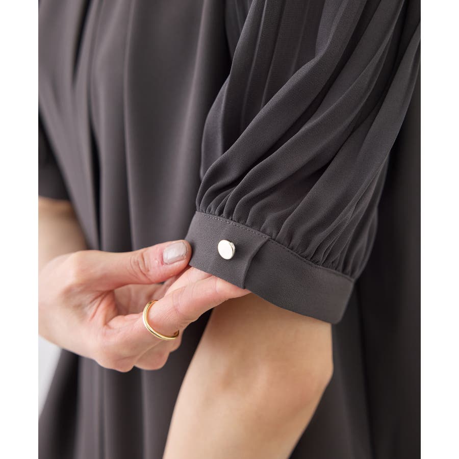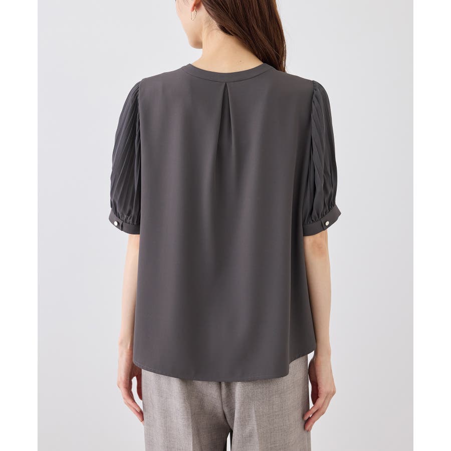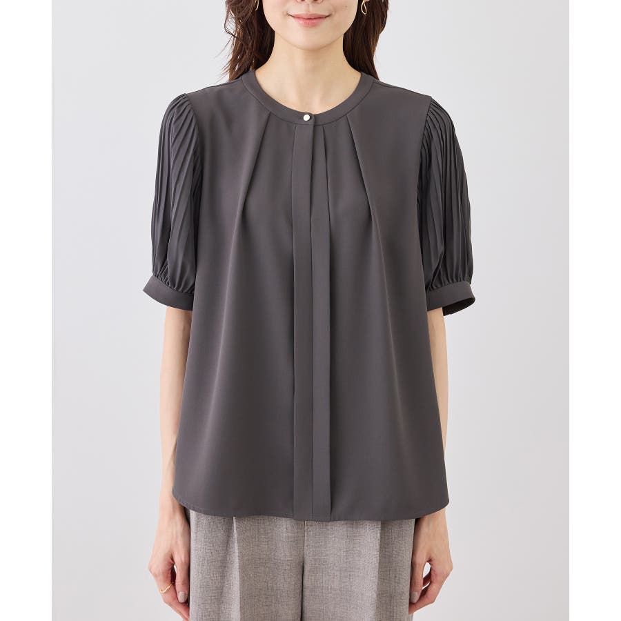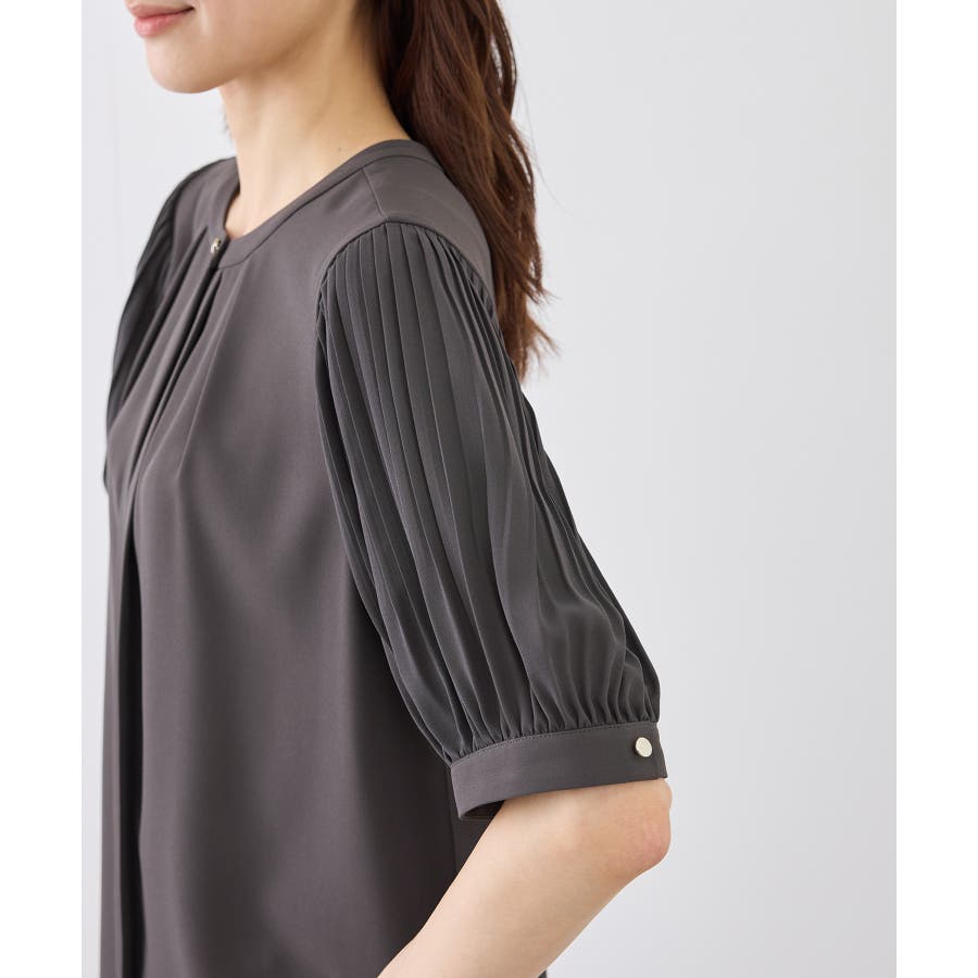 袖プリーツハーフスリーブブラウス