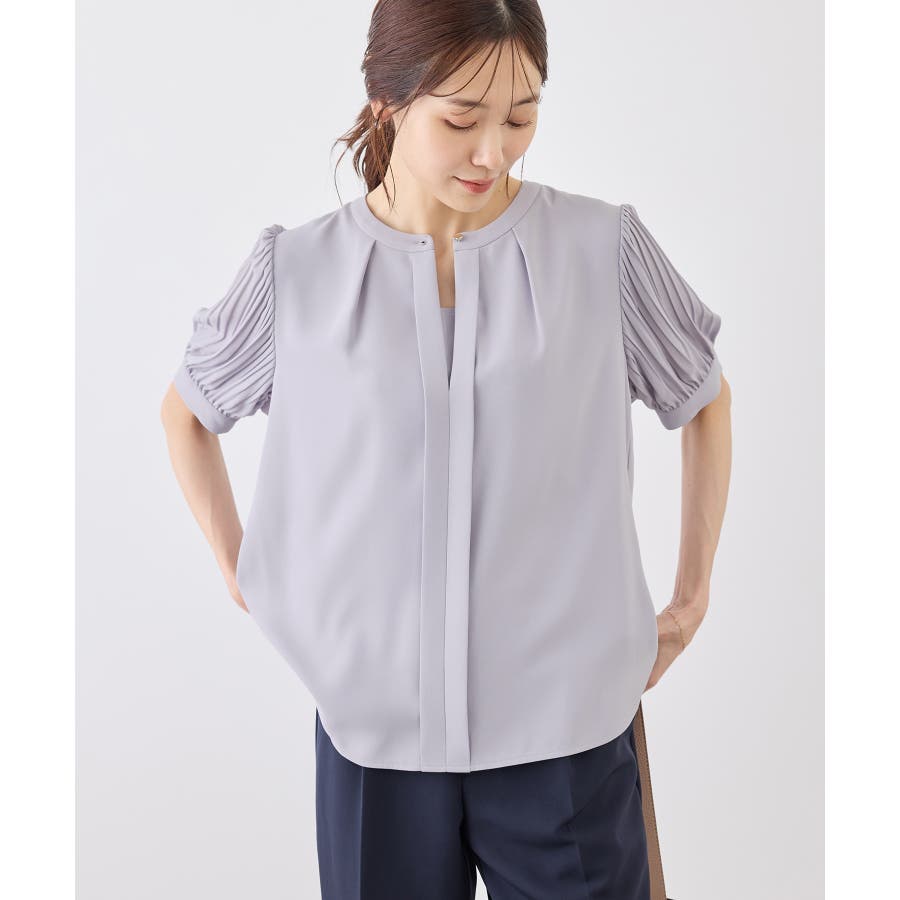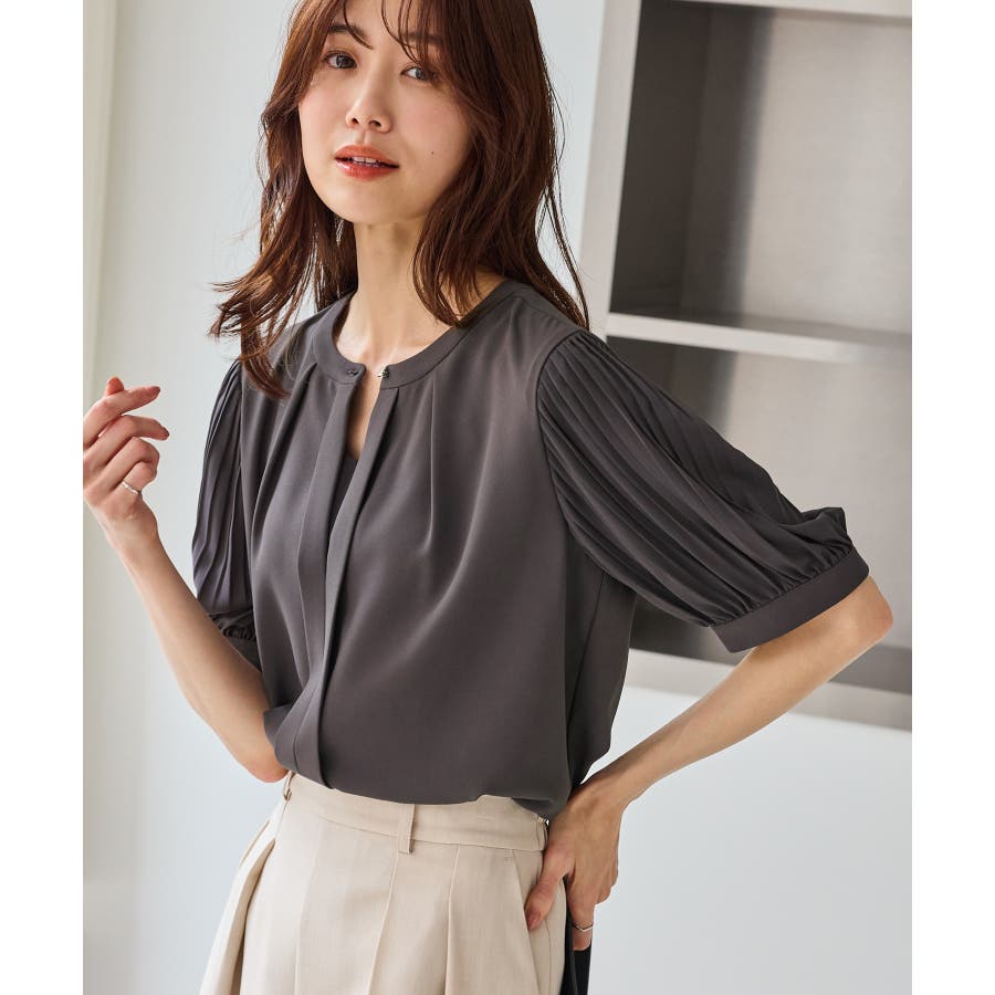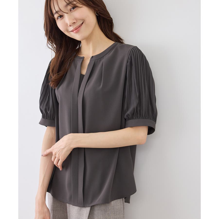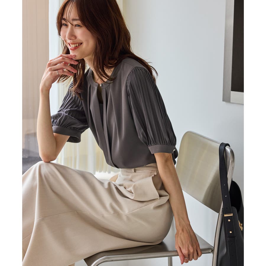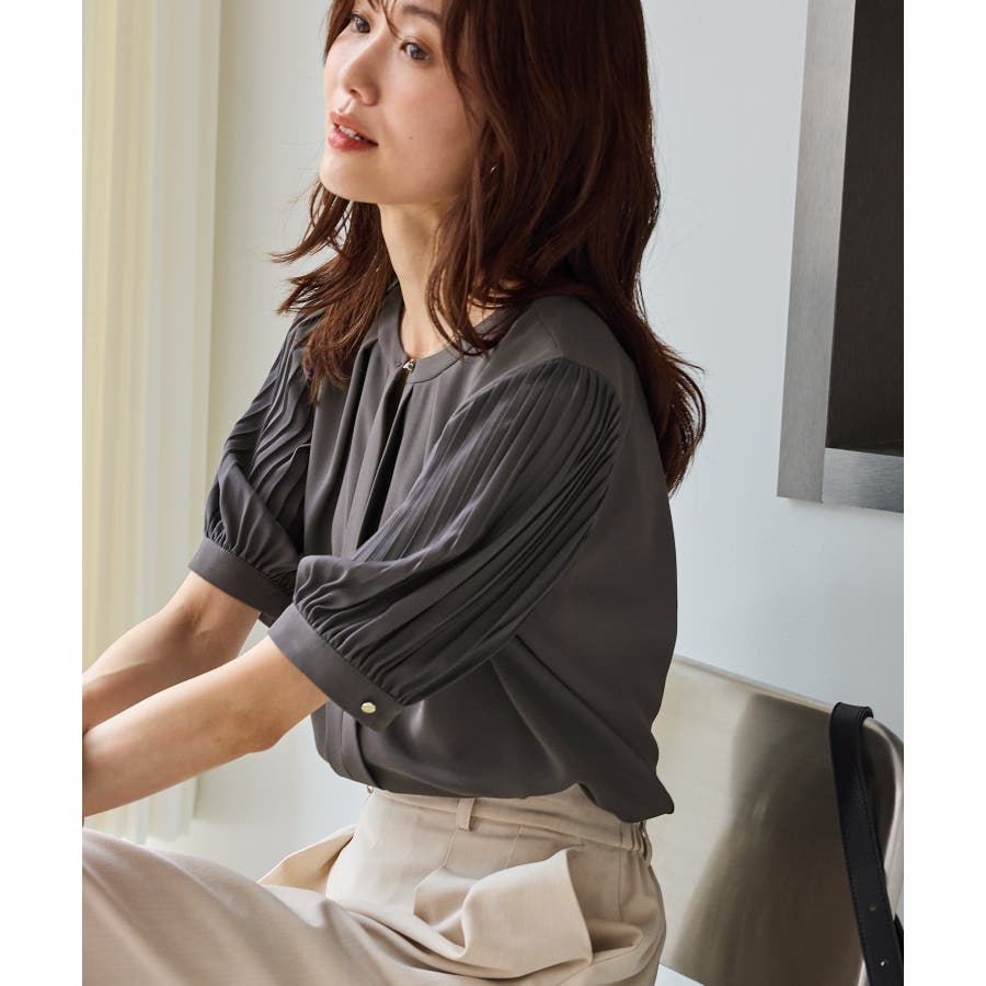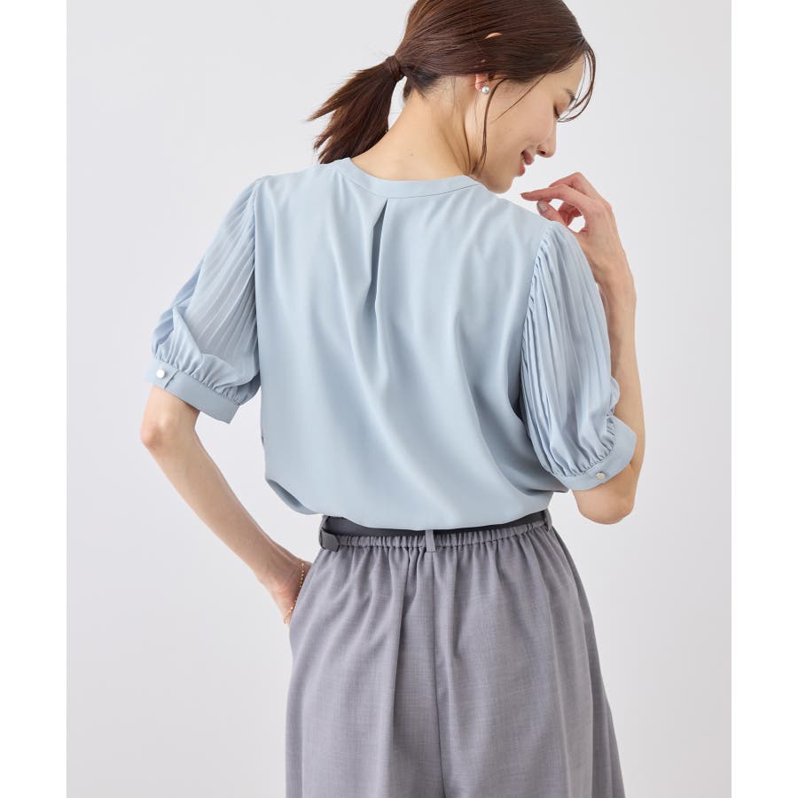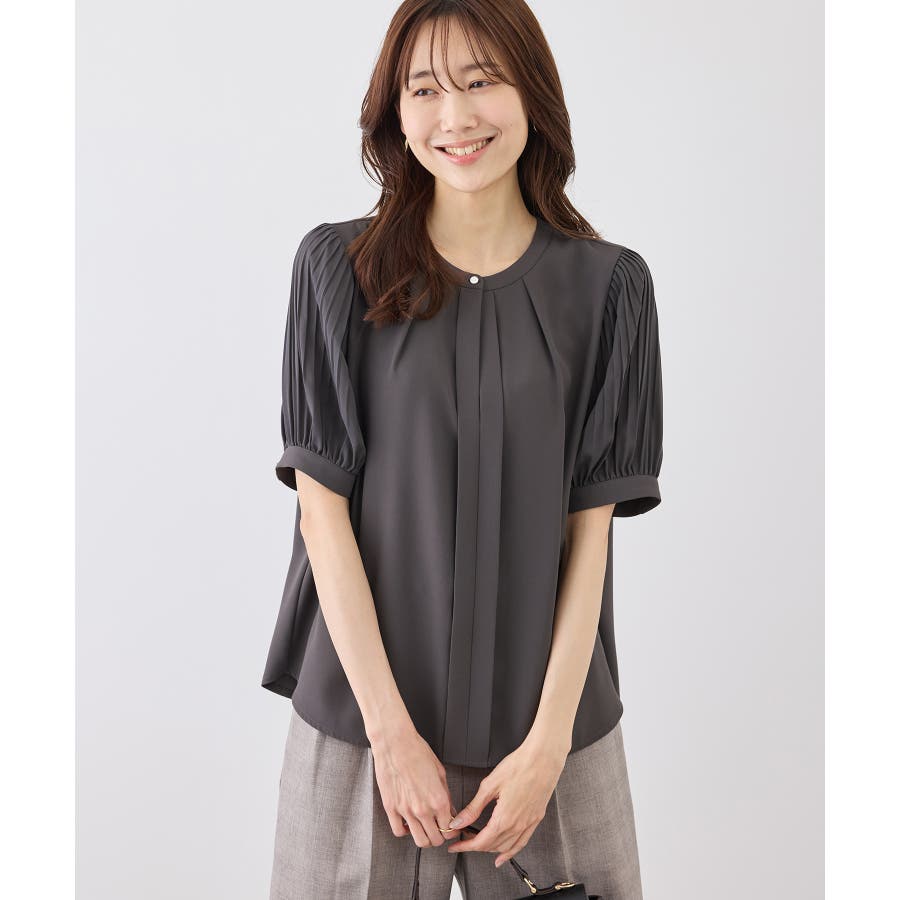 袖プリーツハーフスリーブブラウス