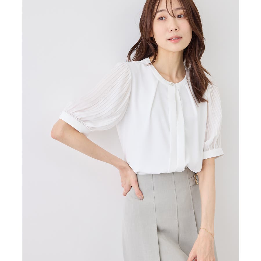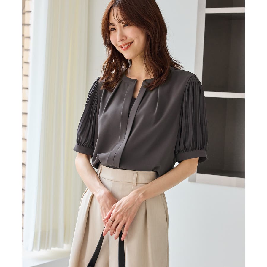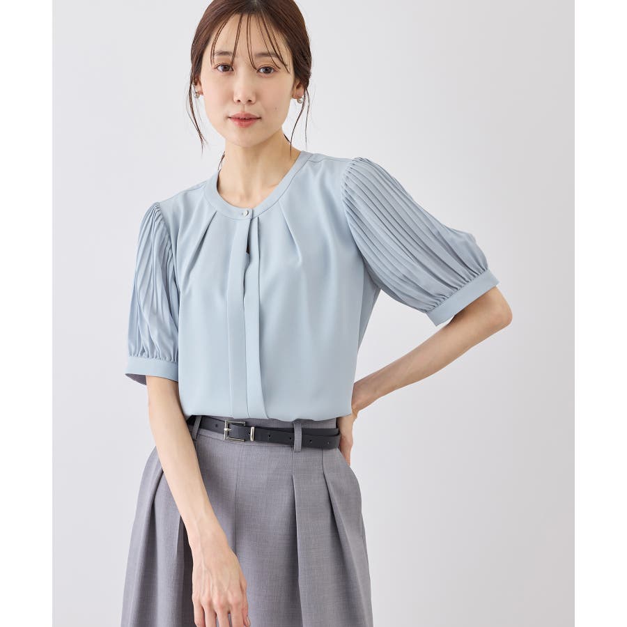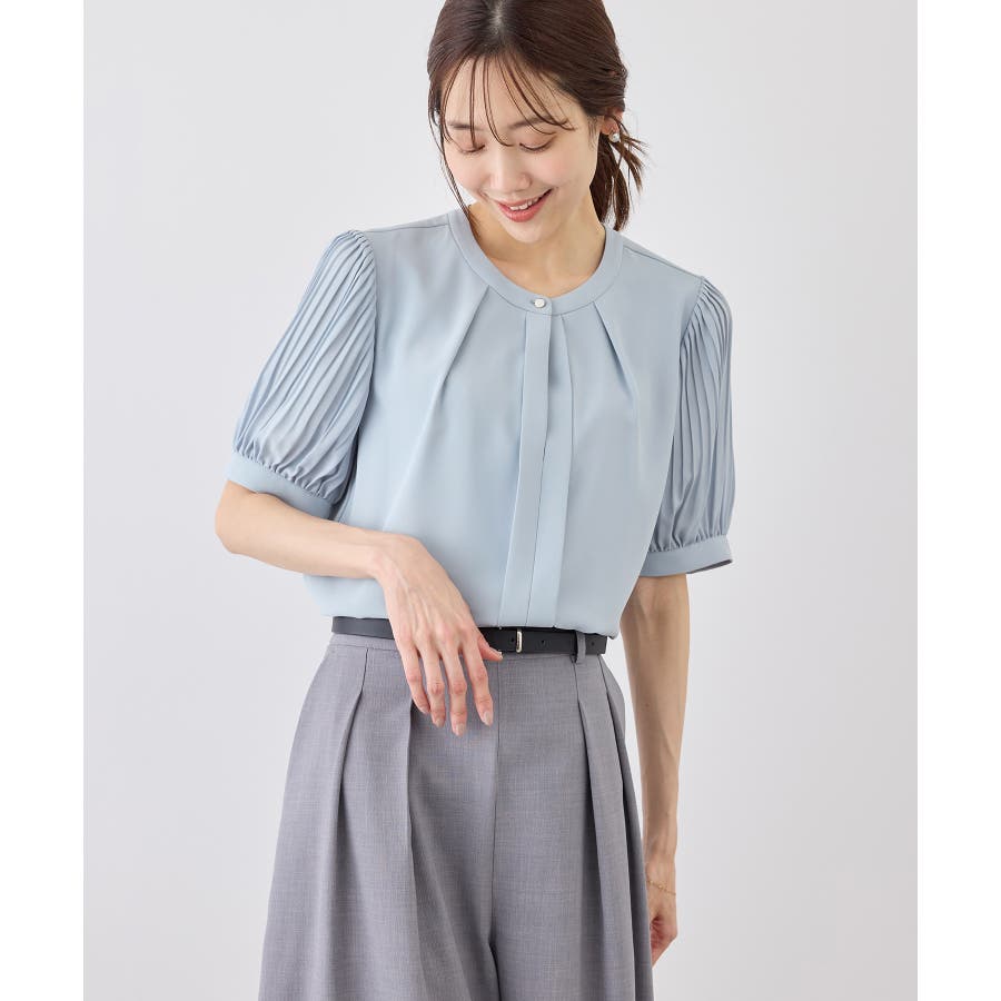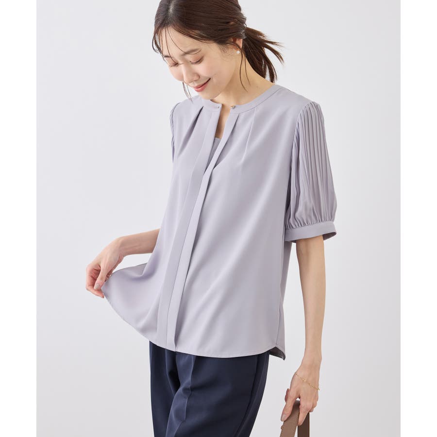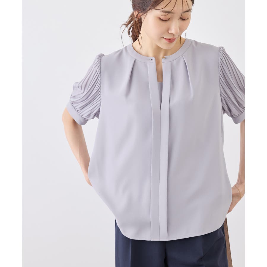 袖プリーツハーフスリーブブラウス