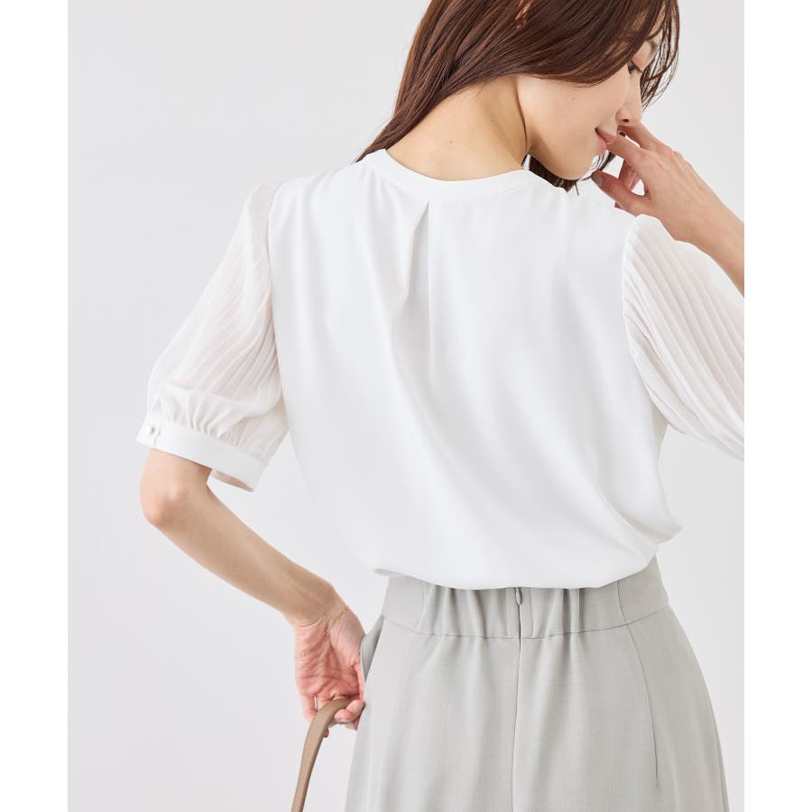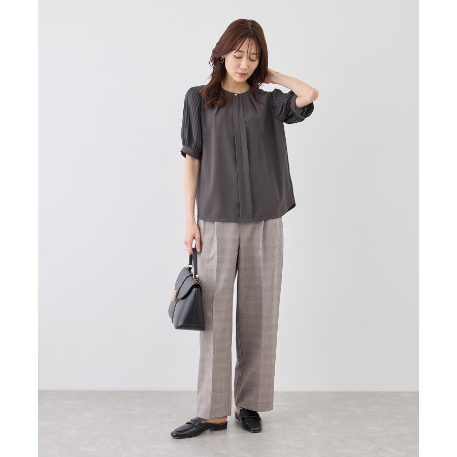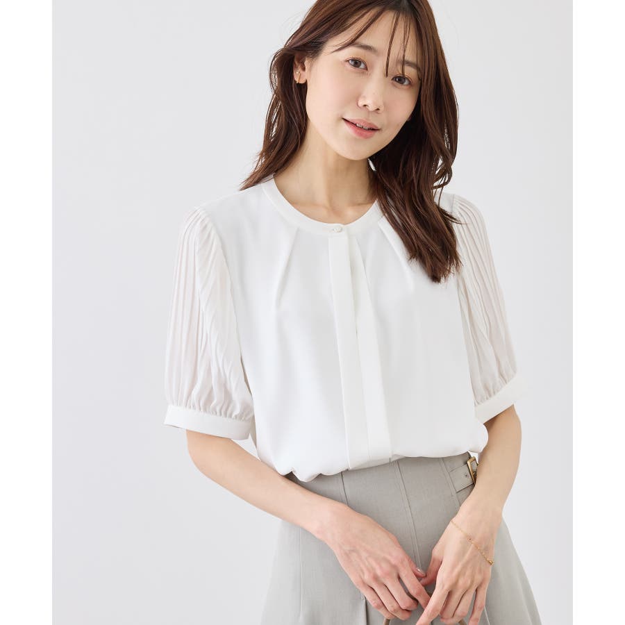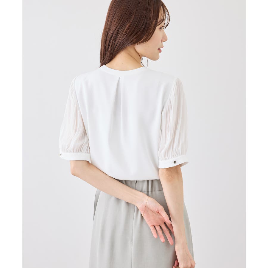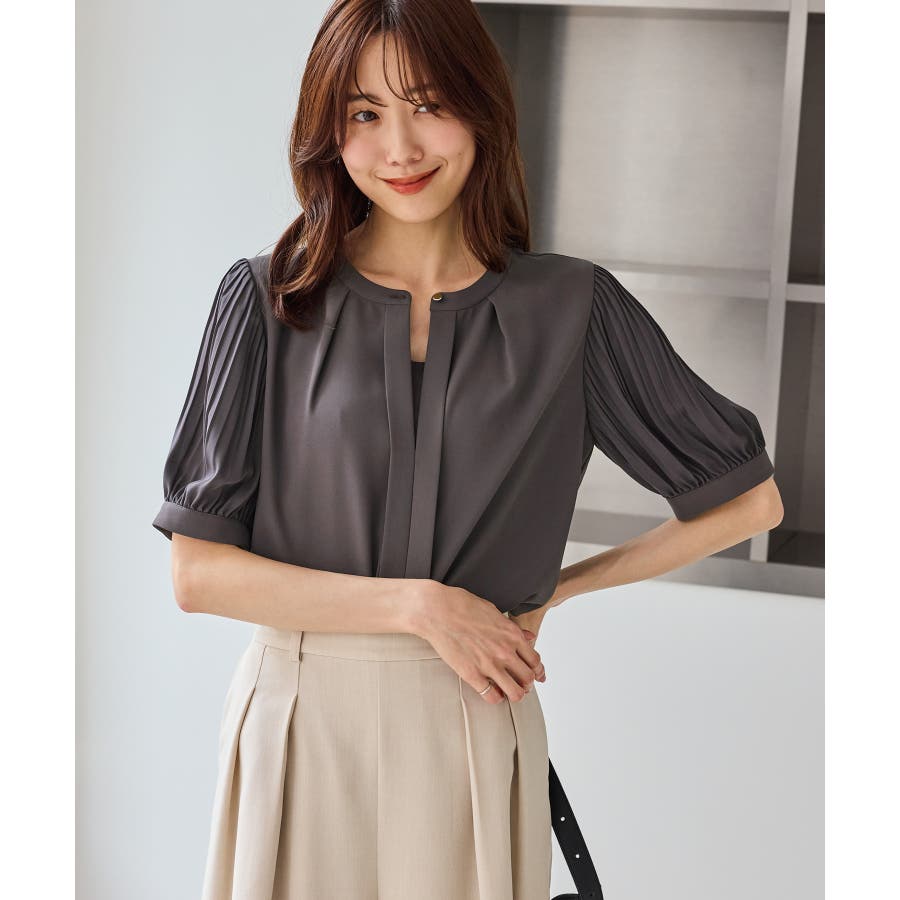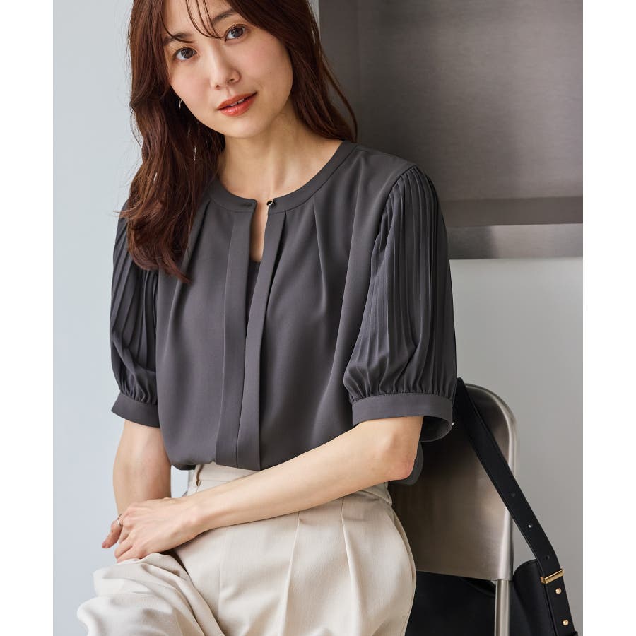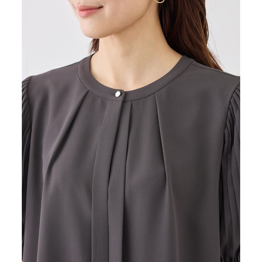 袖プリーツハーフスリーブブラウス