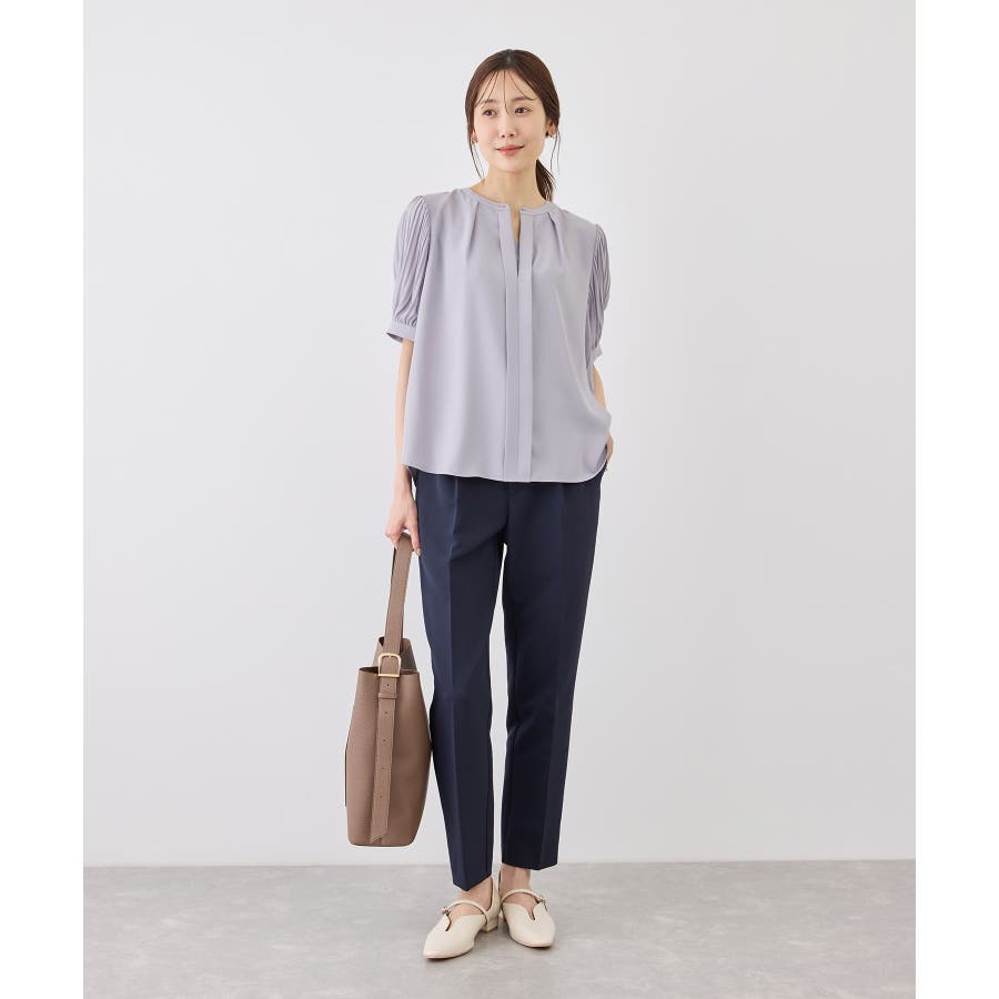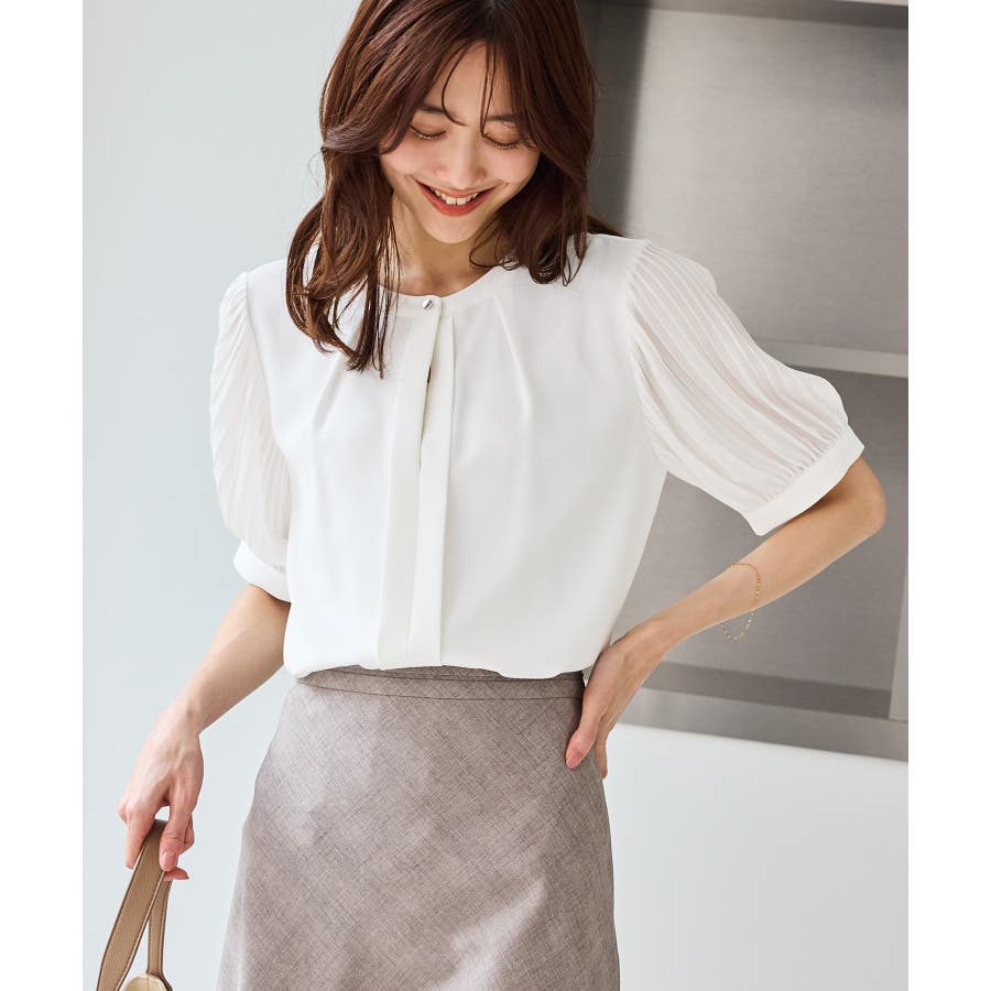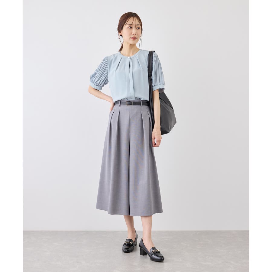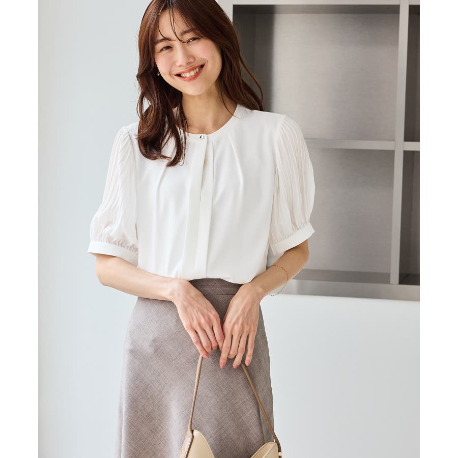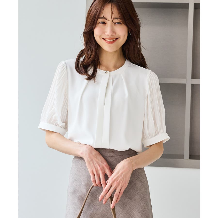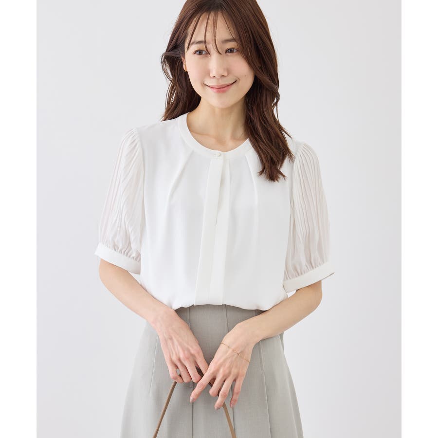 袖プリーツハーフスリーブブラウス