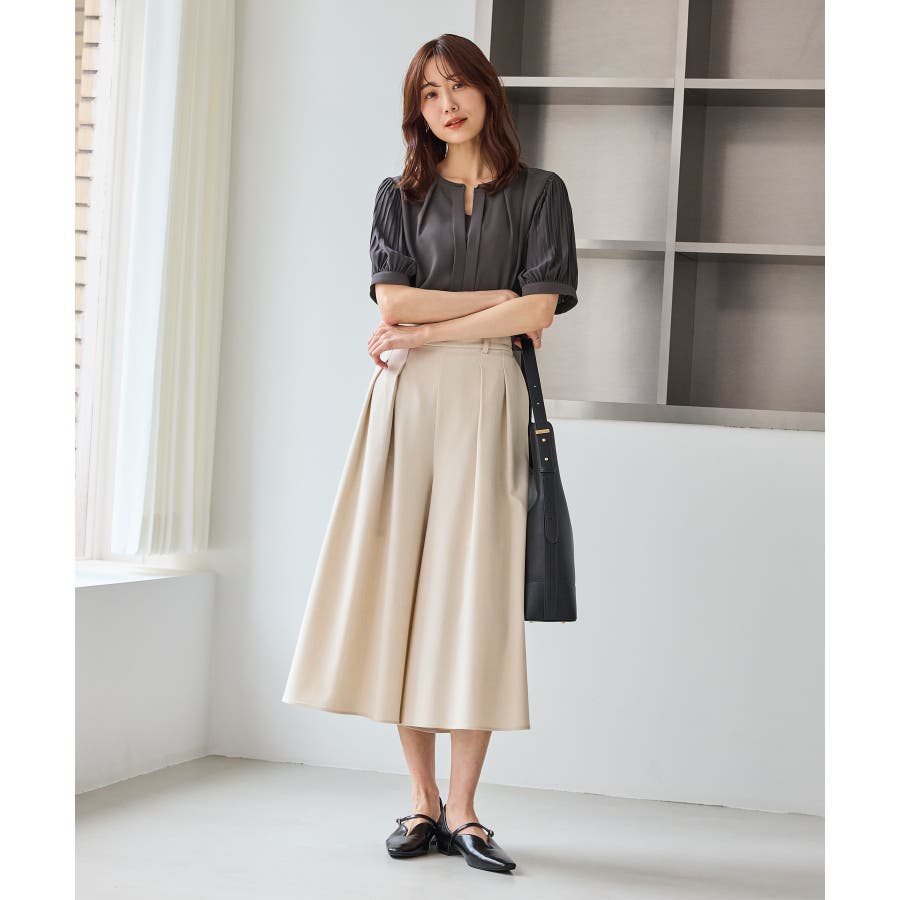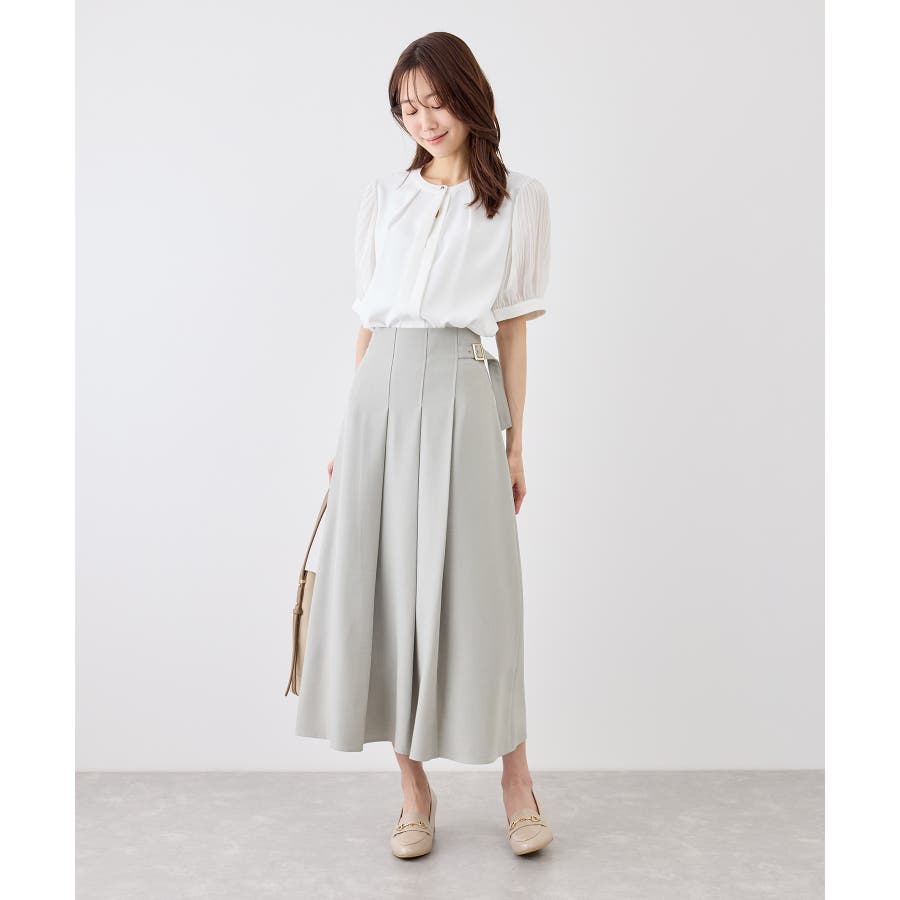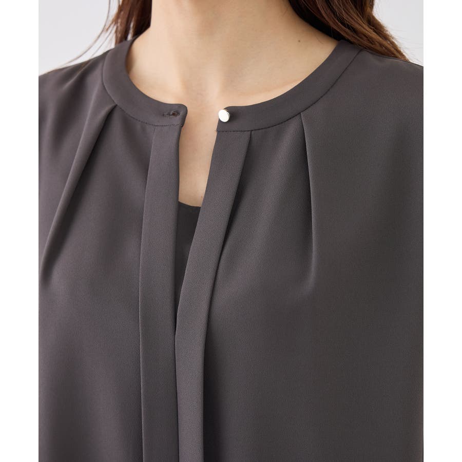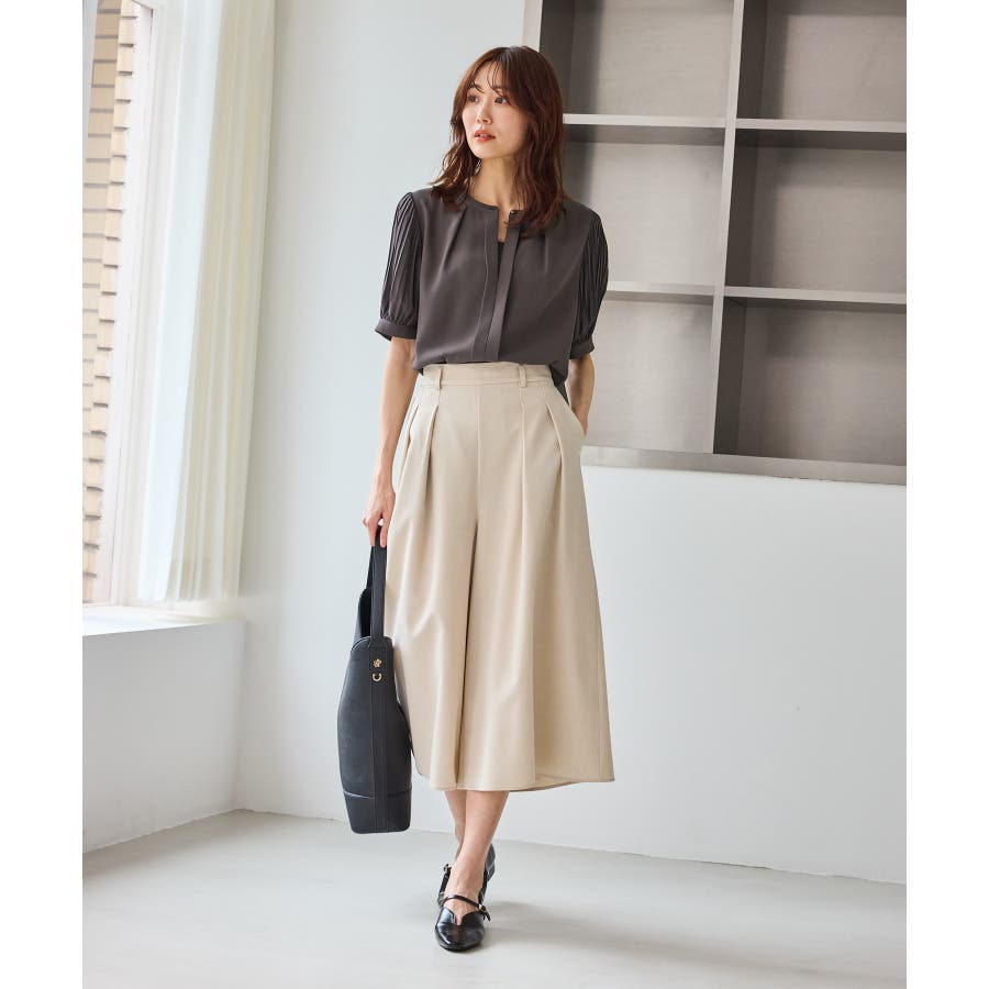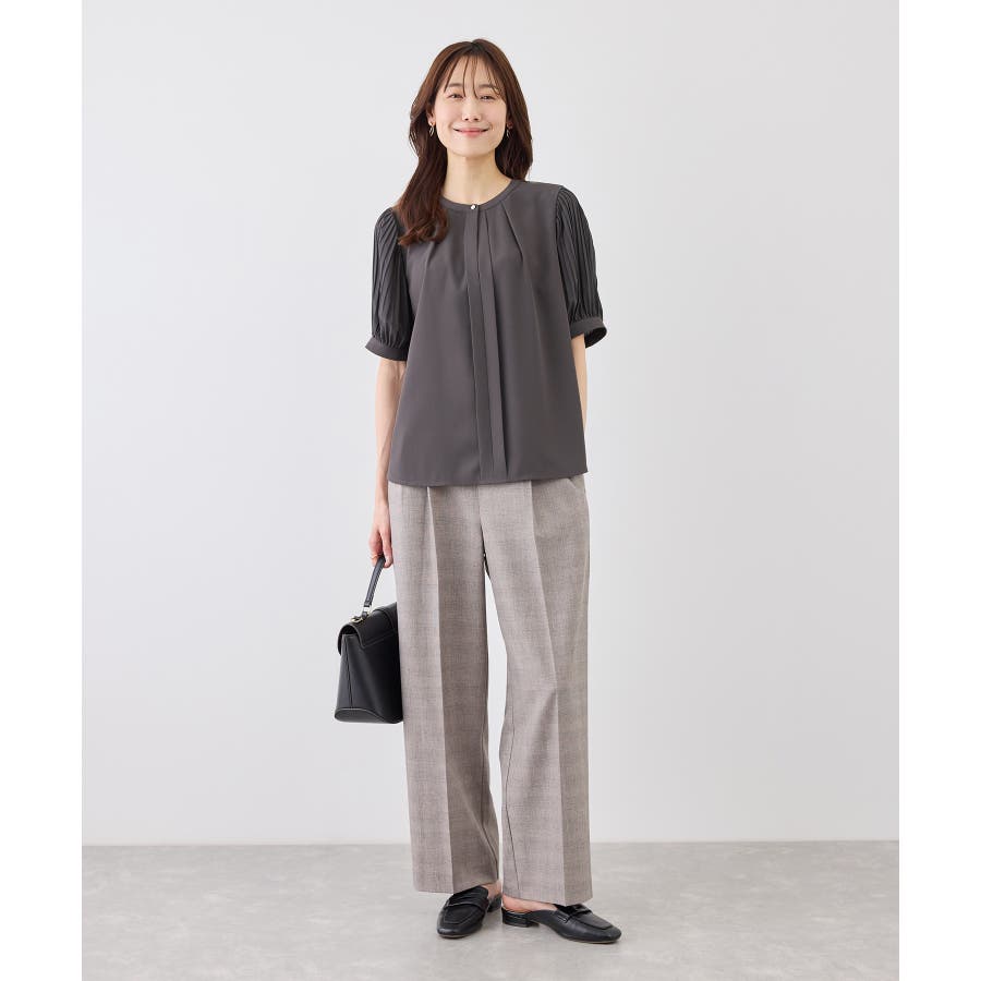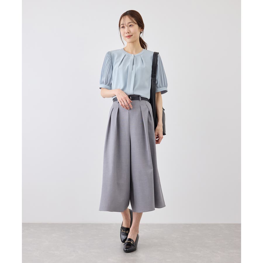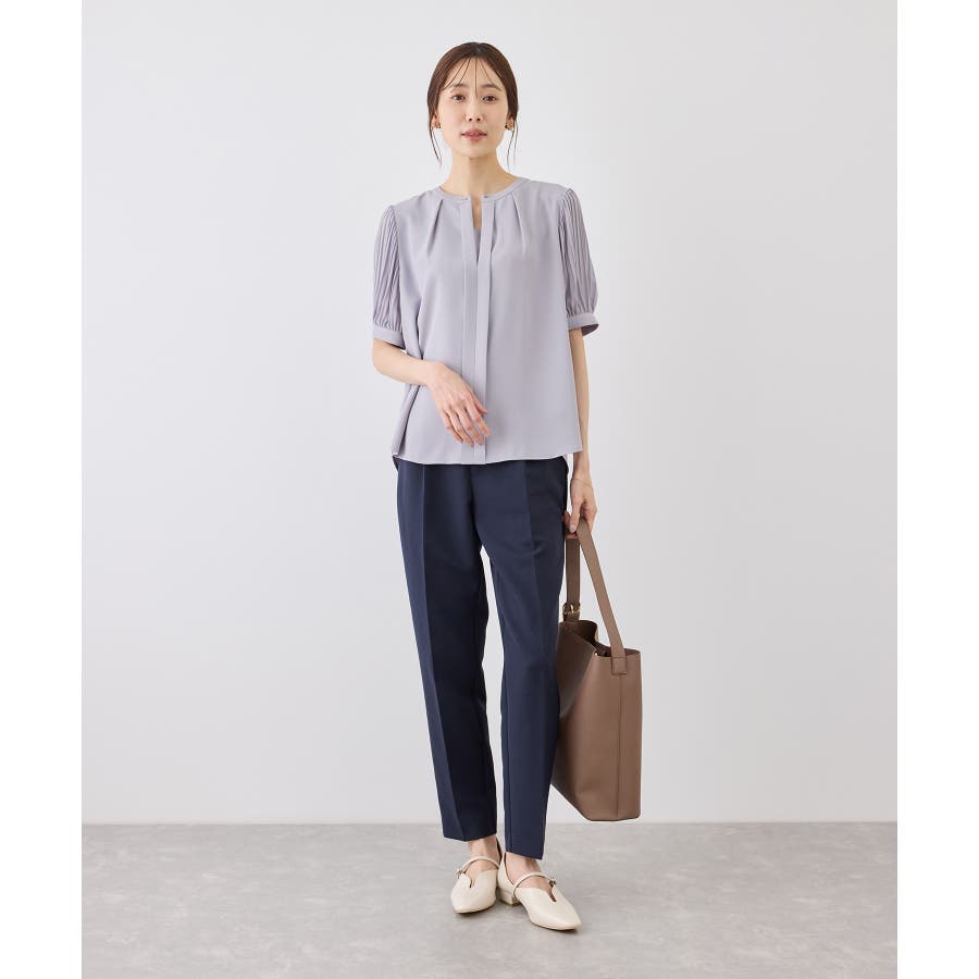 袖プリーツハーフスリーブブラウス