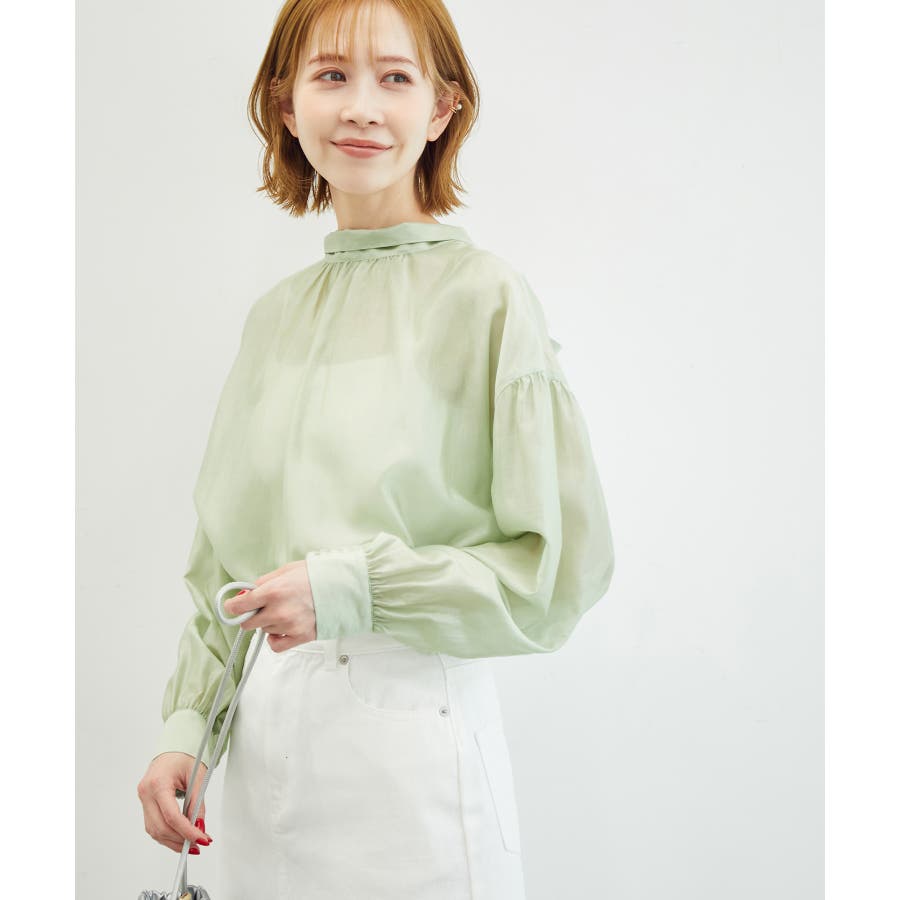 【素材感】 ・マットなシアー感が大人な印象にボウタイブラウス。 【デザイン・シルエット】 ・華やか見えするボウタイデザインで、ボリュームスリーブがフェミニンさをアップ。 ・身頃を拾いにくいゆったりシルエット。 ・前後2WAYで着用可能。 【カラー】 ・ブラック、アイボリー、ライトグリーンの3色展開。 【スタイリングポイント】 ・ジャケットやカーディガンのインに重ねて、早い時期から活躍。 ・ワイドパンツでマスキュリンなルックが完成。 ・モノトーンカラーは軽めのフォーマルにも対応。 ----------------------------- 裏地:なし 透け感:あり 伸縮性:なし 生地感・厚さ:薄手 ボタン:全て開閉可能 その他仕様:袖口シャーリング 季節:春・秋 ----------------------------- ※撮影時の光、お使いのモニター環境によって色の見え方が違う場合がございます。 ※モデル身長:165cm 着用サイズ:38 : 【emur(エミュール)】 ロペピクニックが展開する大人ライン。 目まぐるしい時代を強く艶(あで)やかに生きる、大人の女性のためのタイムレス・リュクスなニュースタンダードウェア。 ファッション経験値のある女性に提案できる上質な品質と素材感のアイテムを、手に入りやすいプレミアムプライスで提供します。 WEBサイト/一部店舗限定になります。