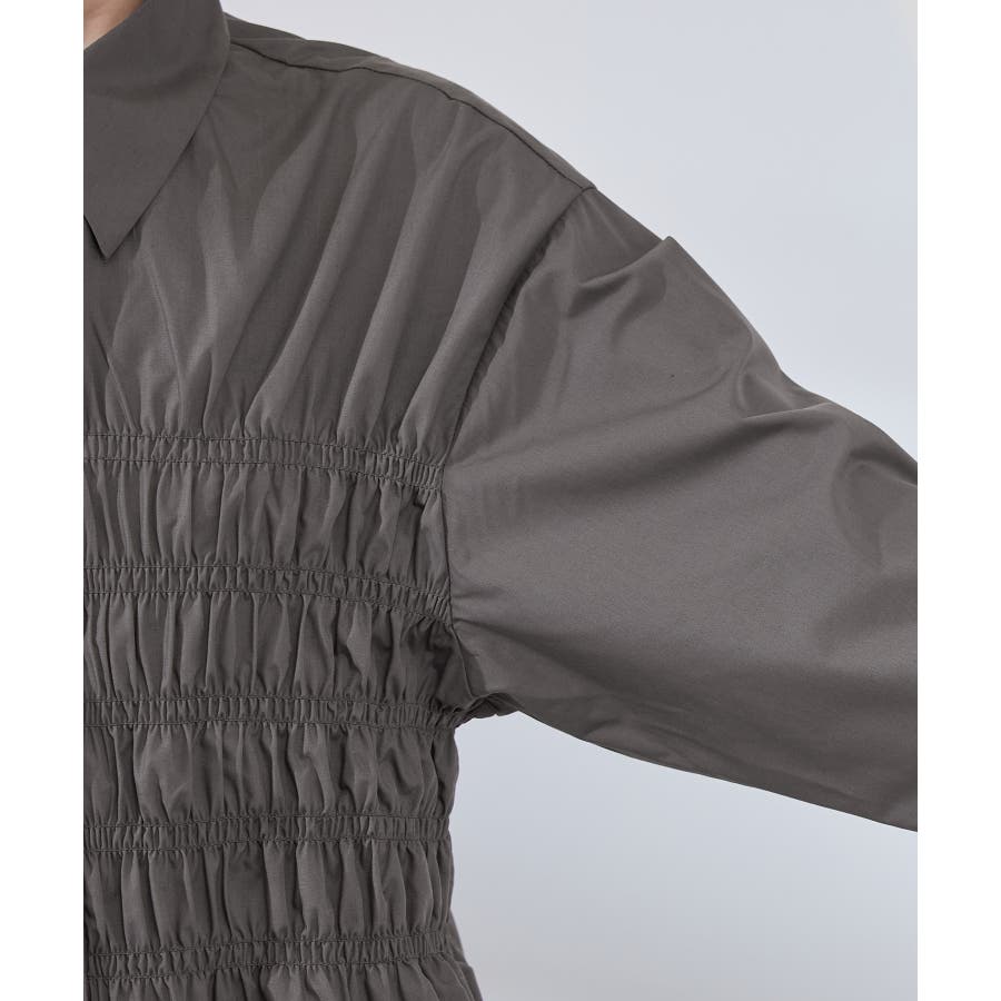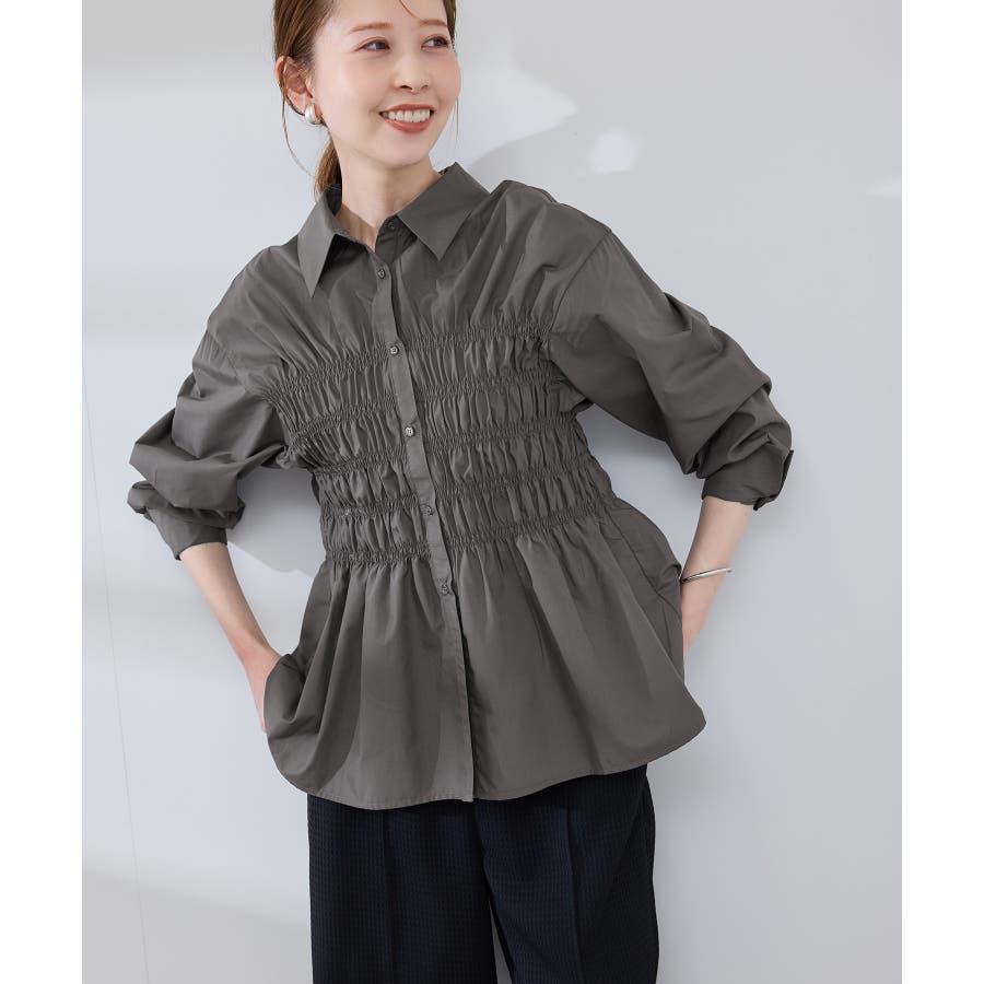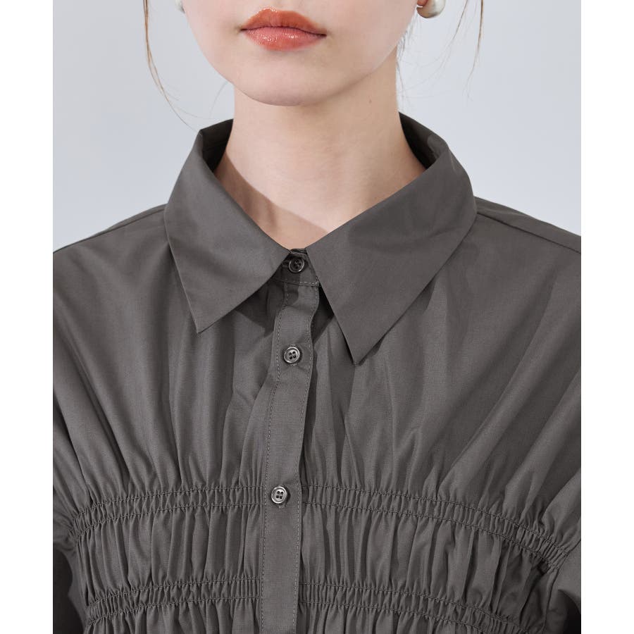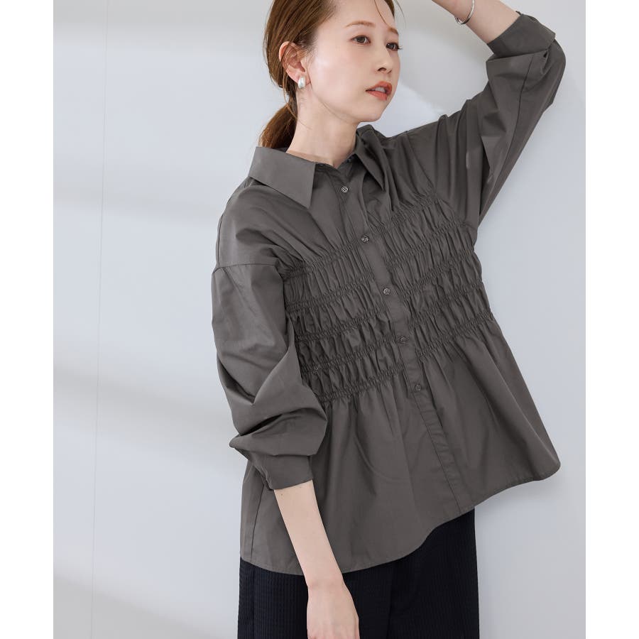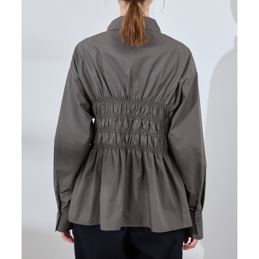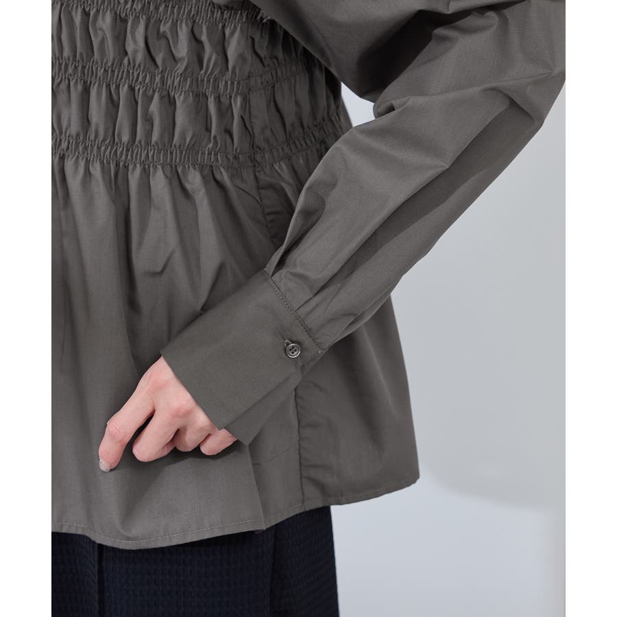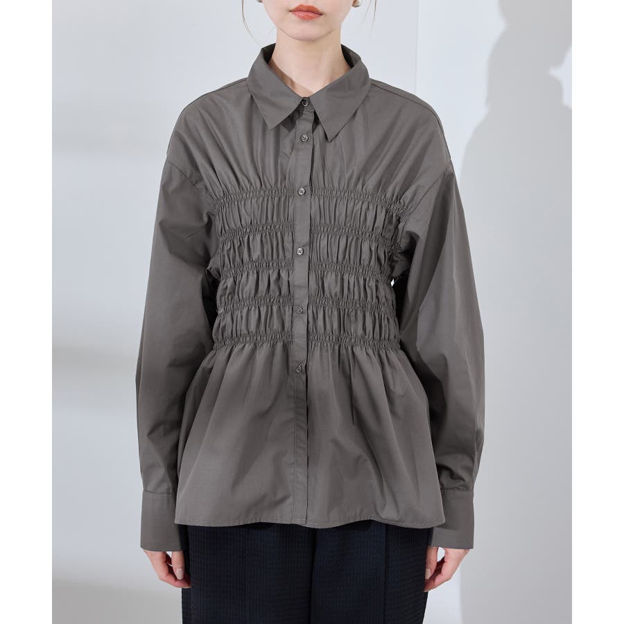 ・身頃の細かなシャーリングがポイントの長袖シャツ。