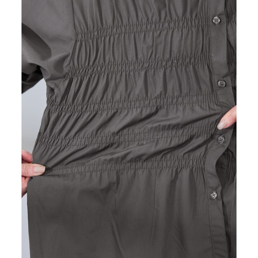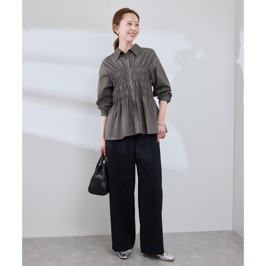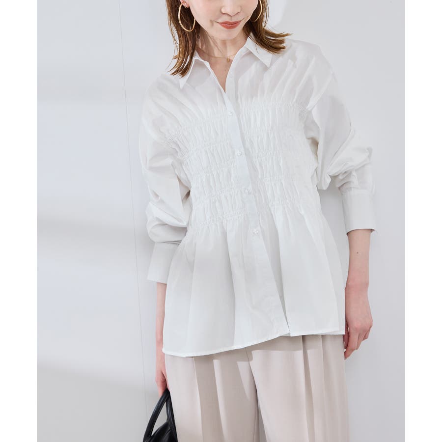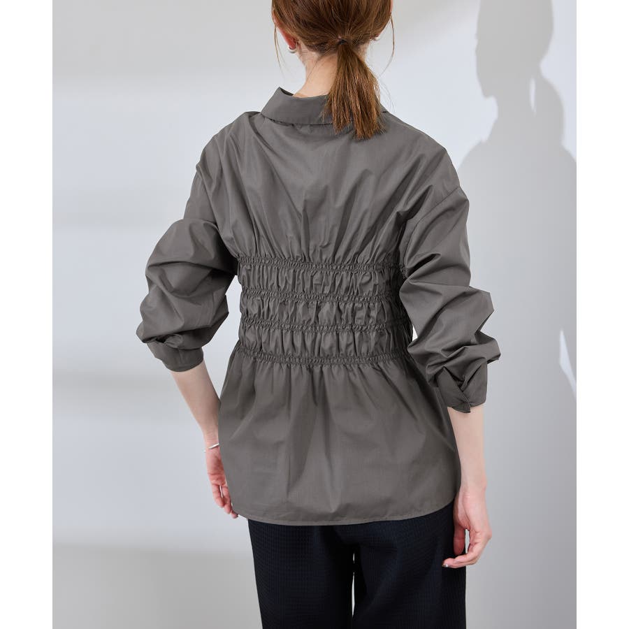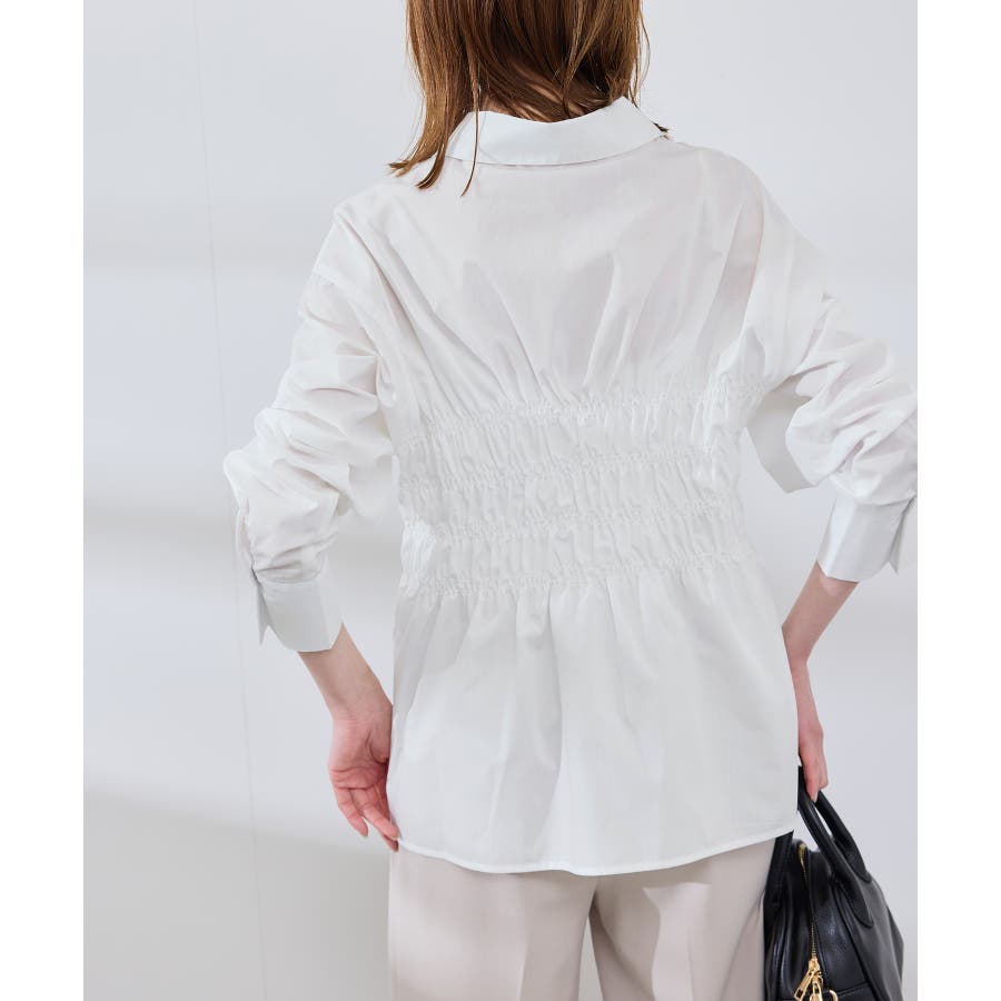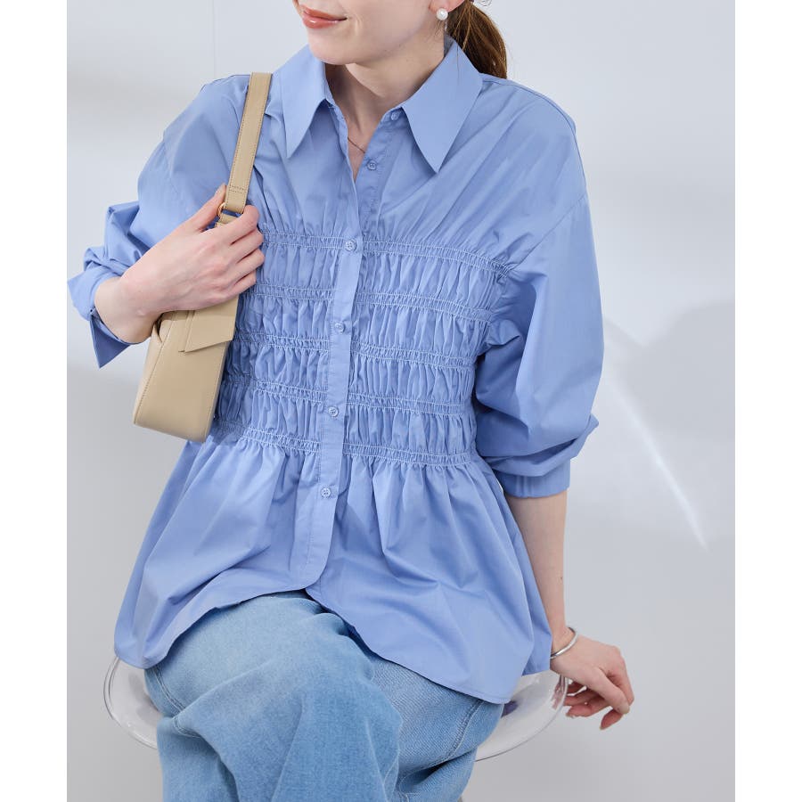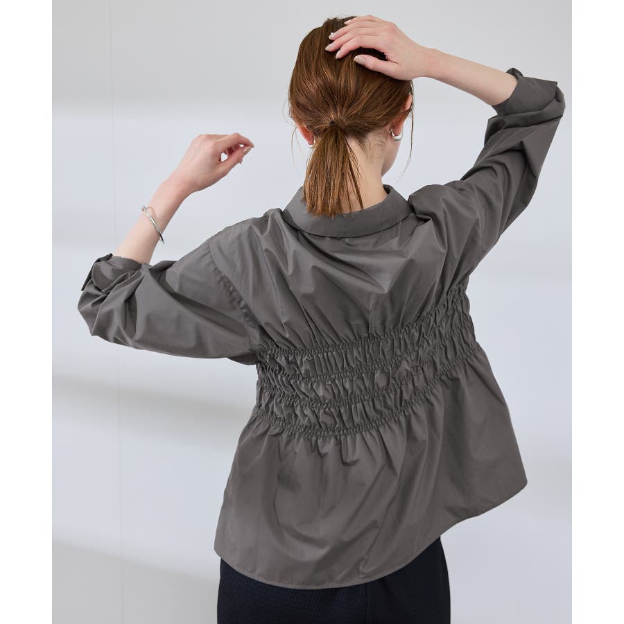 ・身頃の細かなシャーリングがポイントの長袖シャツ。
