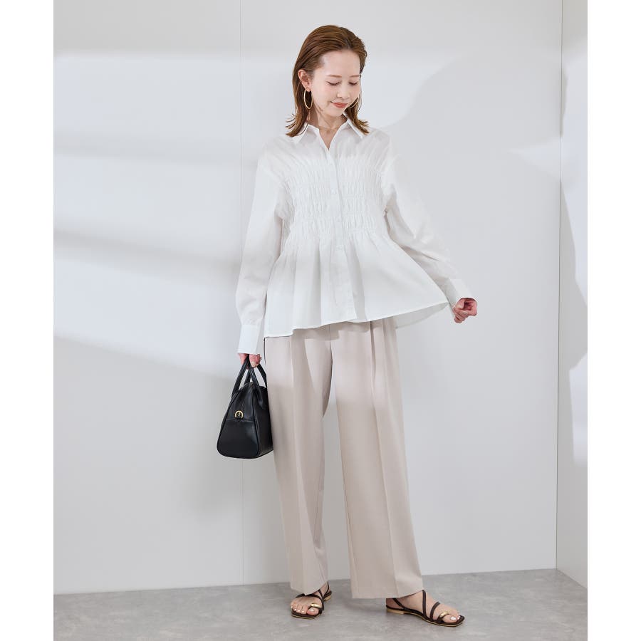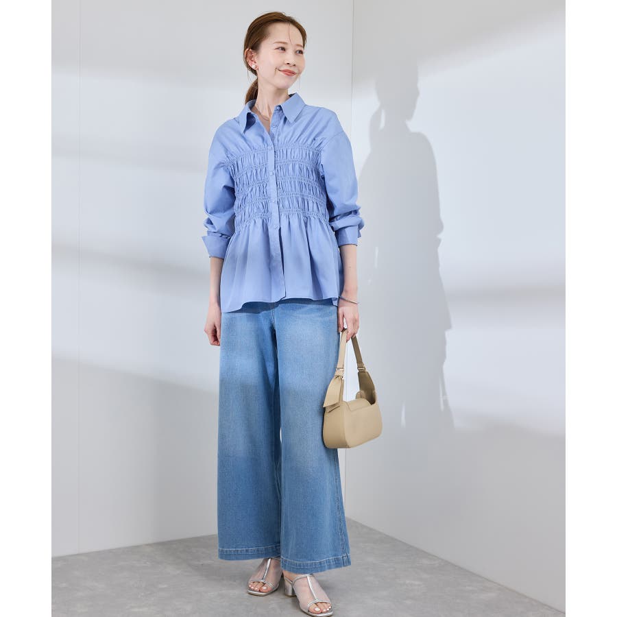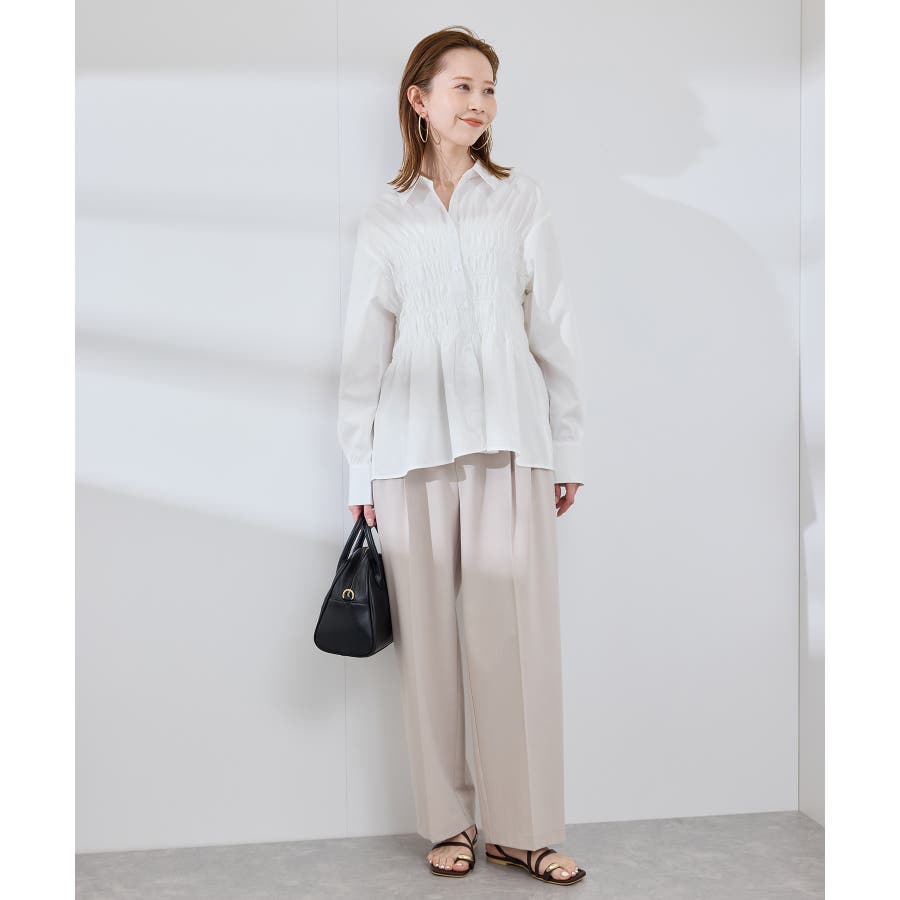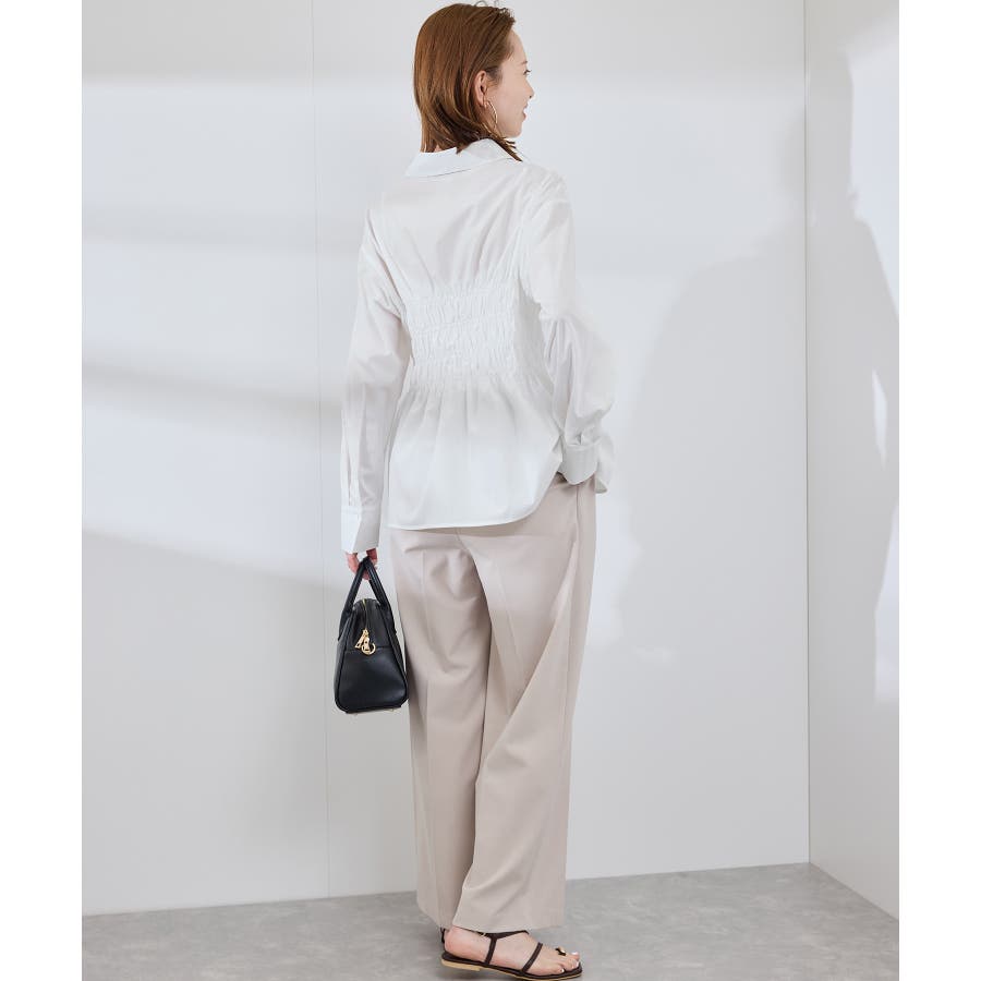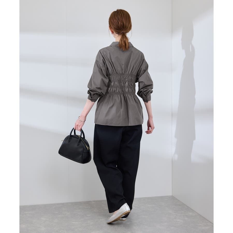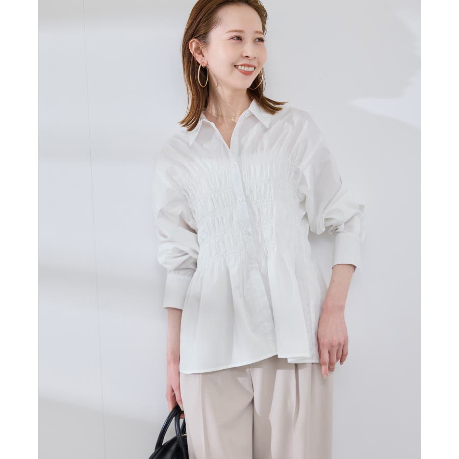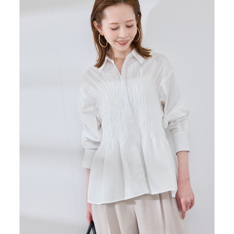 ・身頃の細かなシャーリングがポイントの長袖シャツ。
