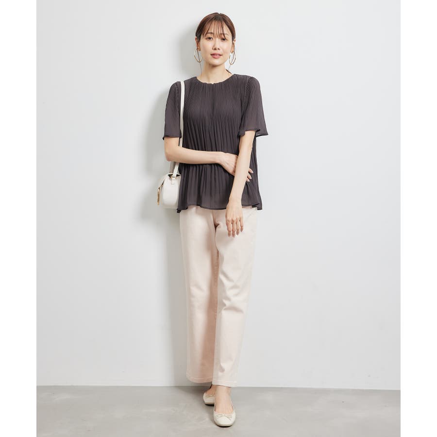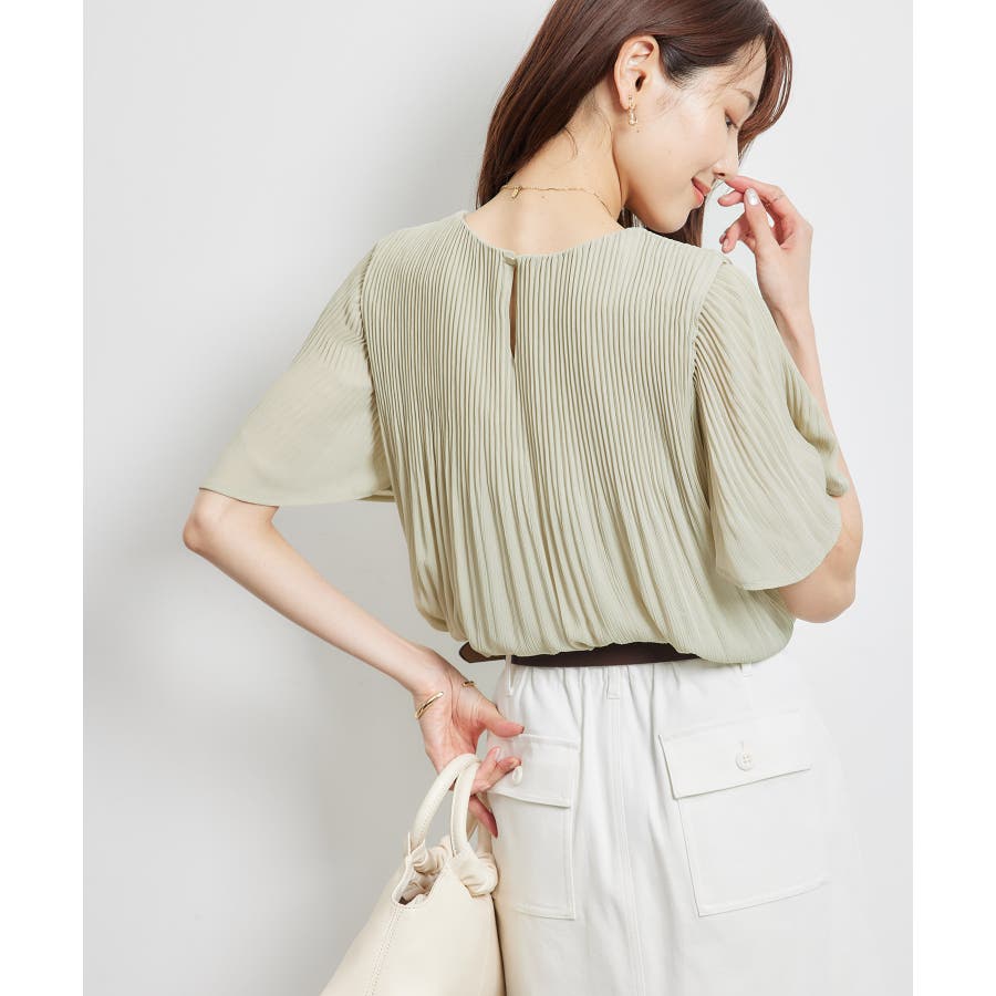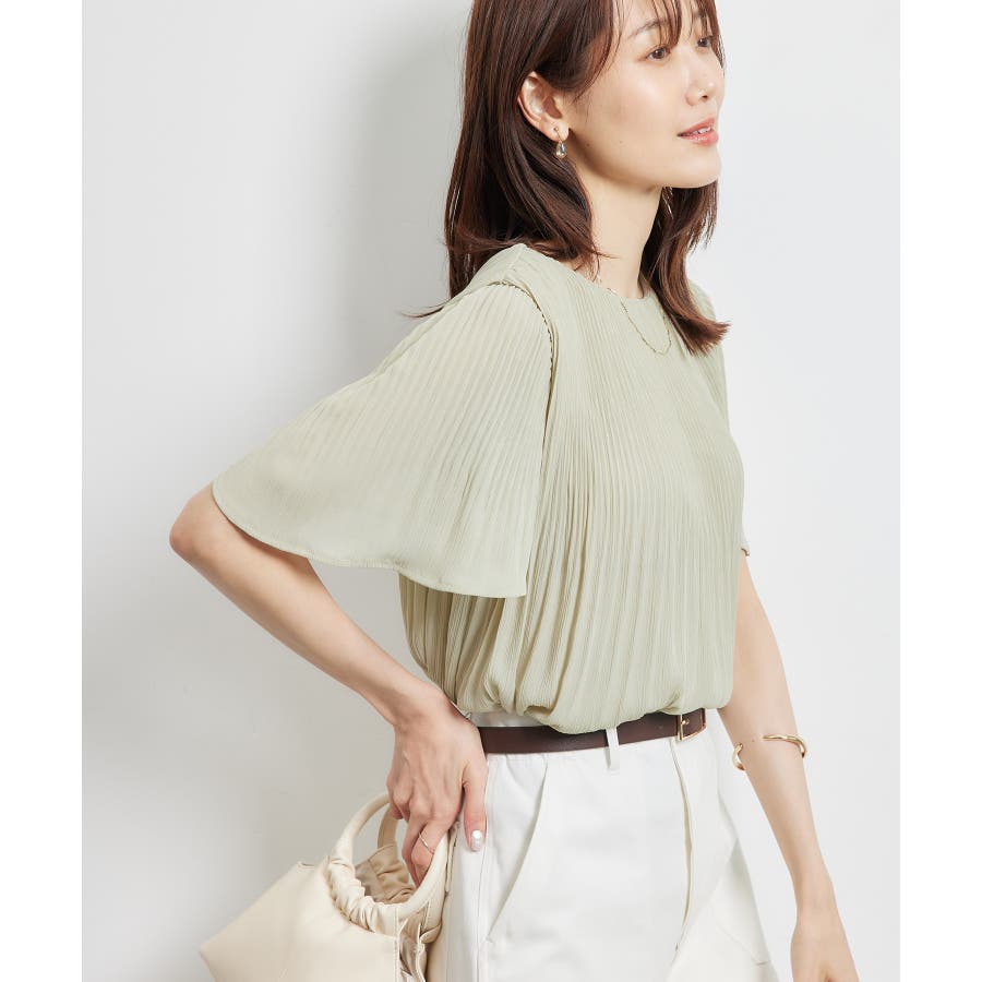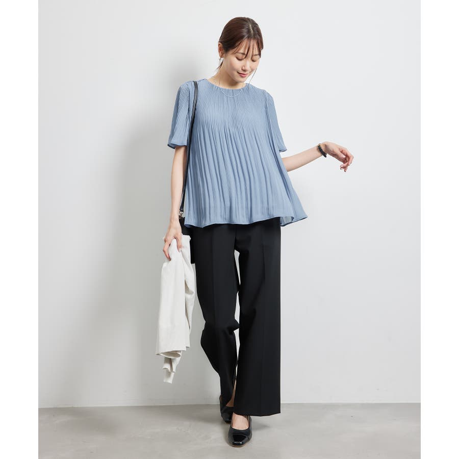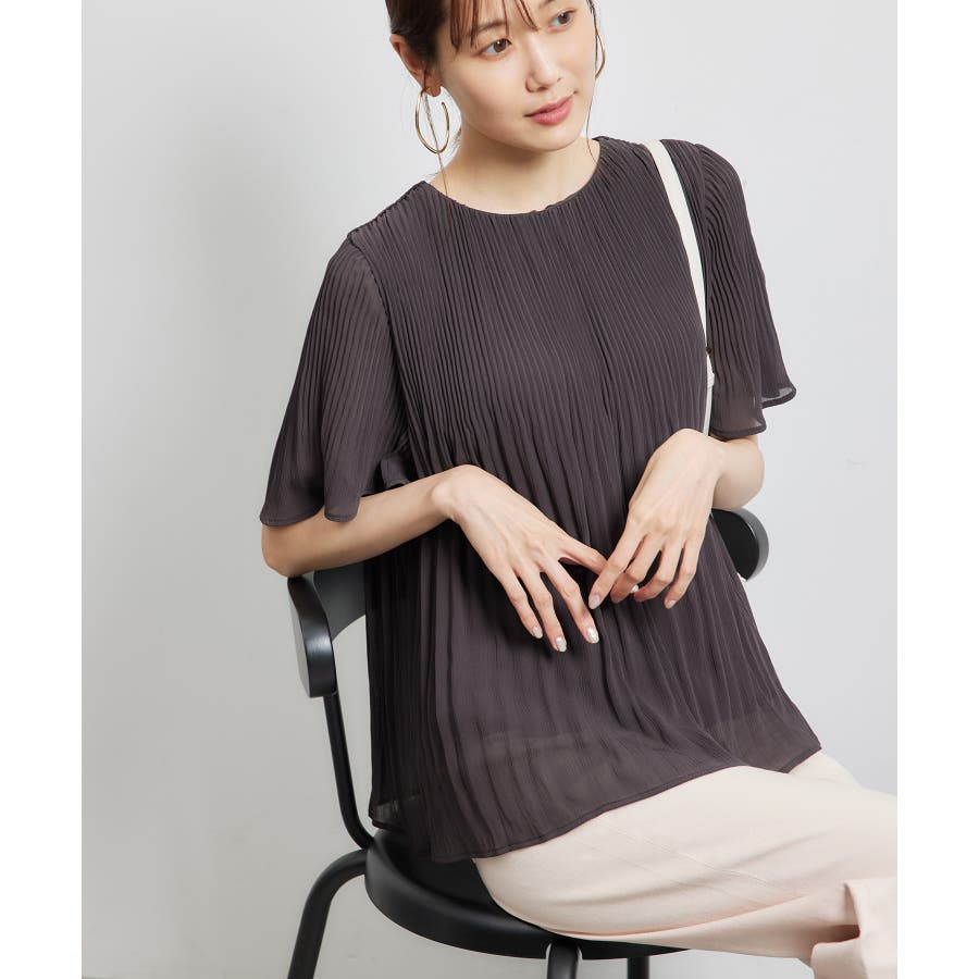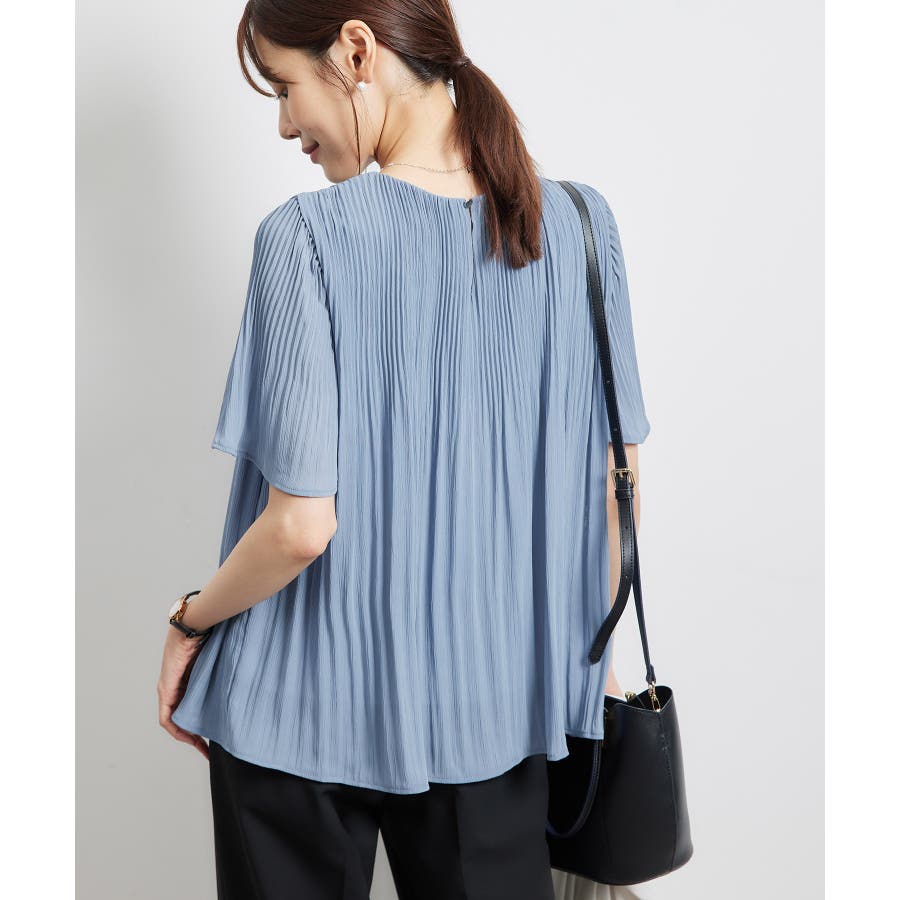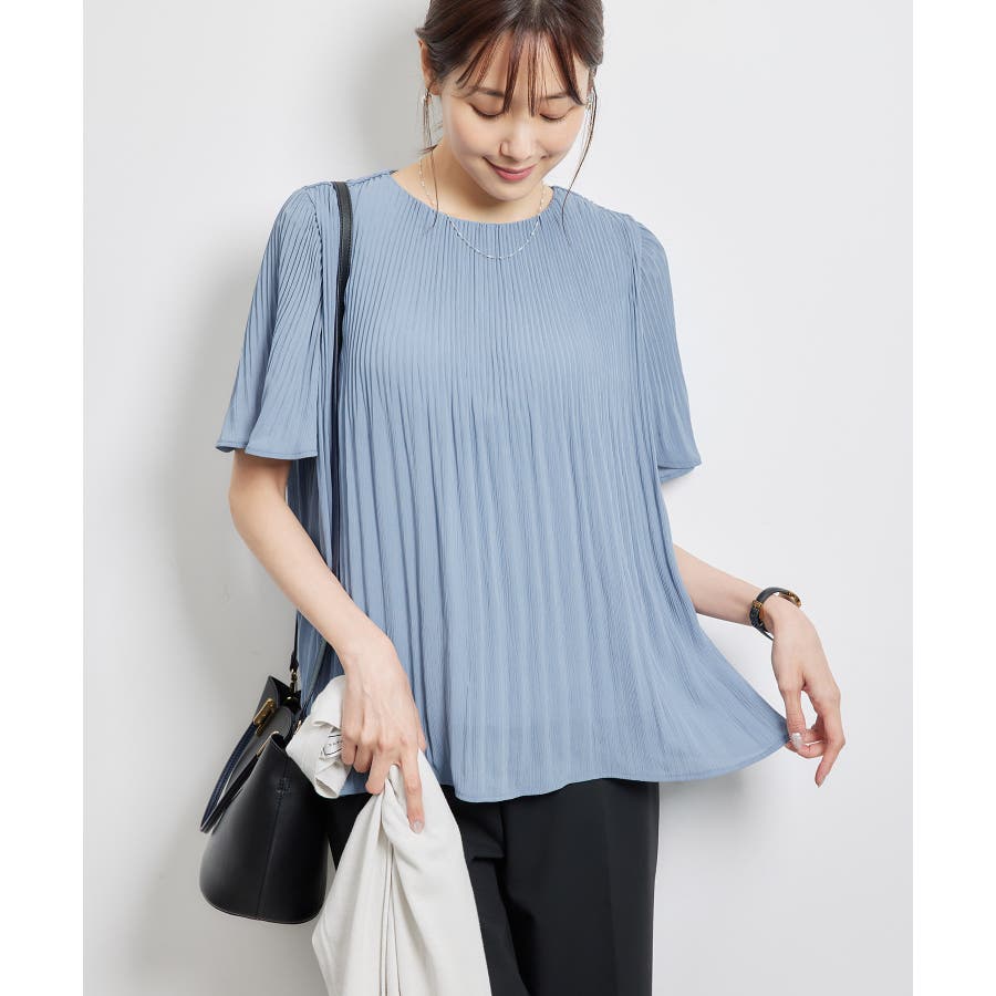 【素材感】 ・さらさらドライタッチのシアー素材を使用。 【デザイン・シルエット】 ・カップ付きで、一枚でラクして着られる半袖プルオーバーブラウス。 ・トップに細かなプリーツを施し、裾に向かって自然に消したややAライン寄りのシルエット。 【カラー】 ・チャコールブラウン、ベージュ、ブルーの3色展開。 【スタイリングポイント】 ・すっきりとしたテーパードパンツ合わせがおすすめ。 ・デイリー使いでラフにジーンズと合わせてもOK。 ----------------------------- 裏地:あり(カップ付き) 透け感:ややあり 伸縮性:なし 生地感・厚さ:やや薄手 ボタン:開閉可能 季節:夏 ----------------------------- ※撮影時の光、お使いのモニター環境によって色の見え方が違う場合がございます。 ※モデル身長:165cm 着用サイズ:38