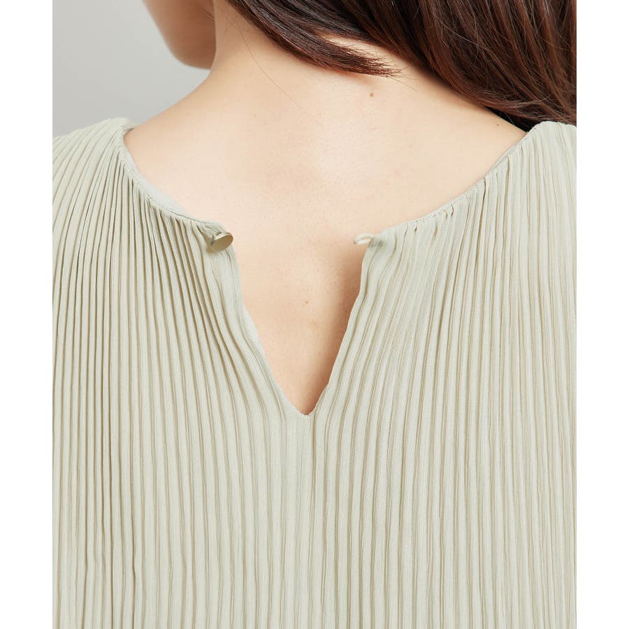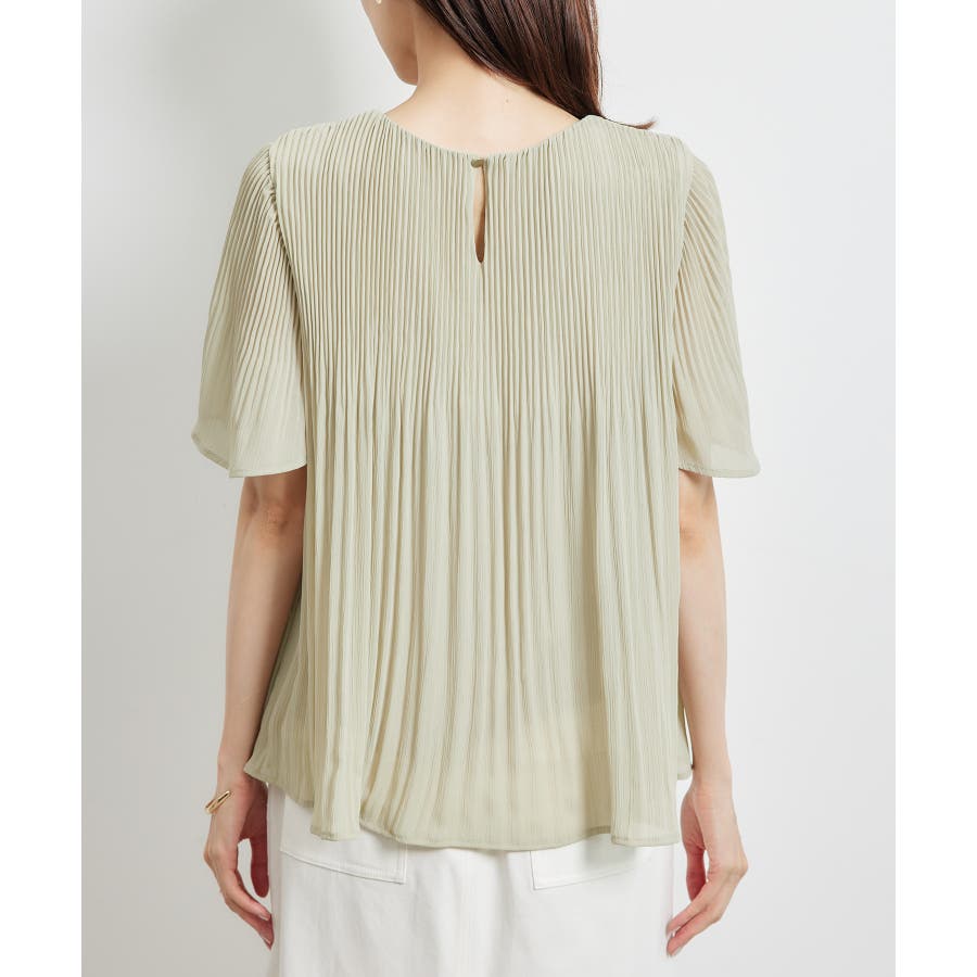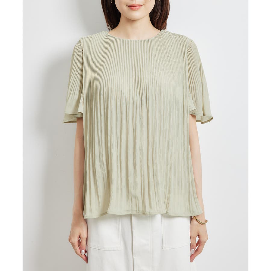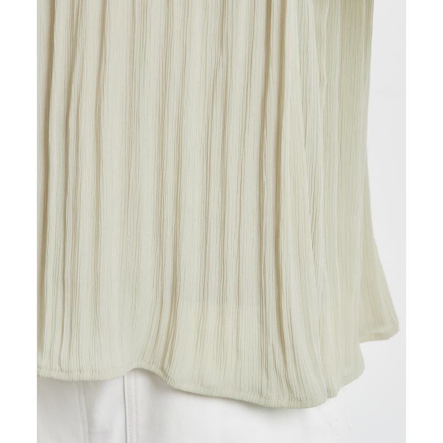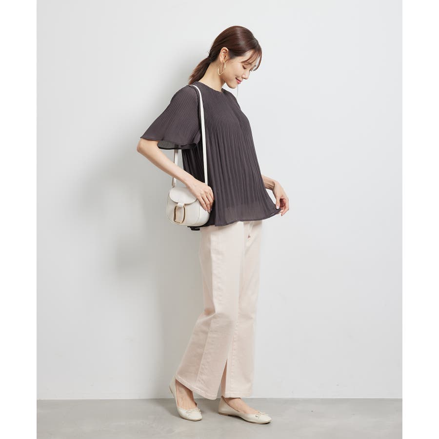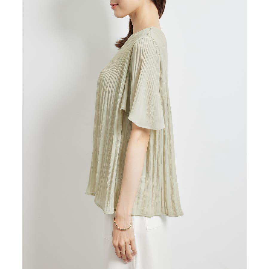 【素材感】 ・さらさらドライタッチのシアー素材を使用。 【デザイン・シルエット】 ・カップ付きで、一枚でラクして着られる半袖プルオーバーブラウス。 ・トップに細かなプリーツを施し、裾に向かって自然に消したややAライン寄りのシルエット。 【カラー】 ・チャコールブラウン、ベージュ、ブルーの3色展開。 【スタイリングポイント】 ・すっきりとしたテーパードパンツ合わせがおすすめ。 ・デイリー使いでラフにジーンズと合わせてもOK。 ----------------------------- 裏地:あり(カップ付き) 透け感:ややあり 伸縮性:なし 生地感・厚さ:やや薄手 ボタン:開閉可能 季節:夏 ----------------------------- ※撮影時の光、お使いのモニター環境によって色の見え方が違う場合がございます。 ※モデル身長:165cm 着用サイズ:38