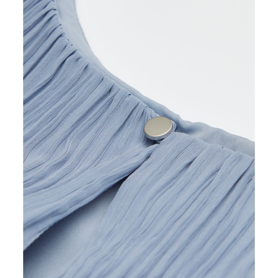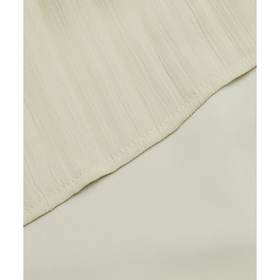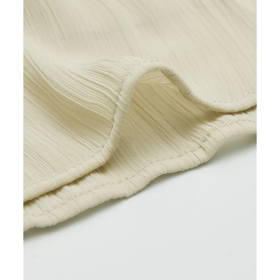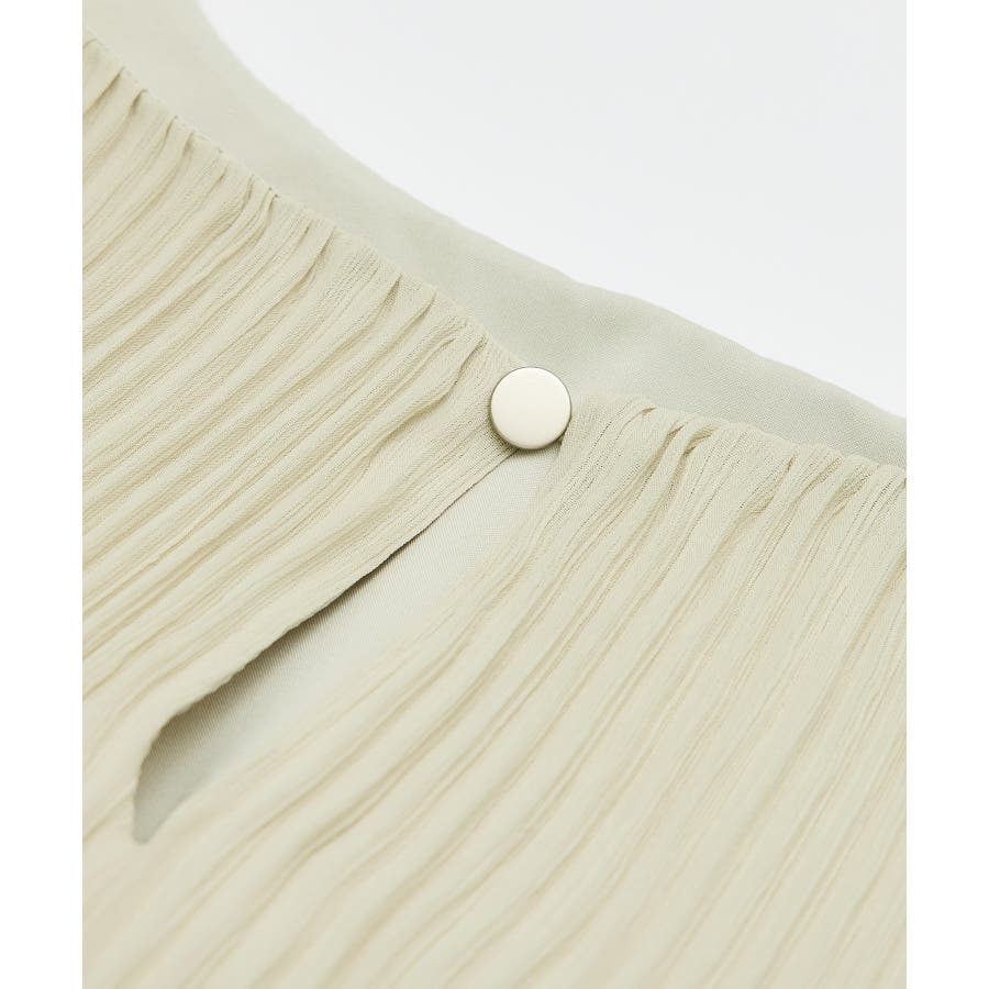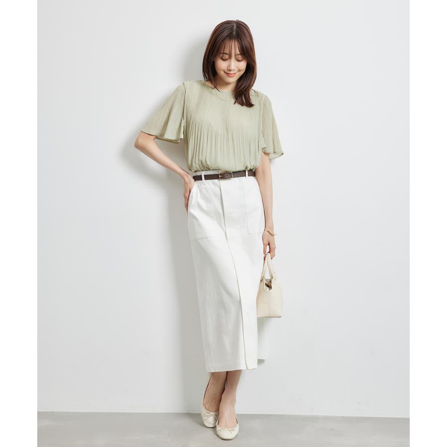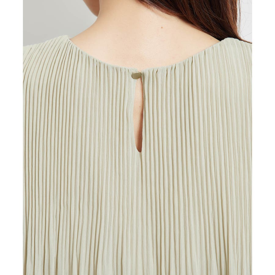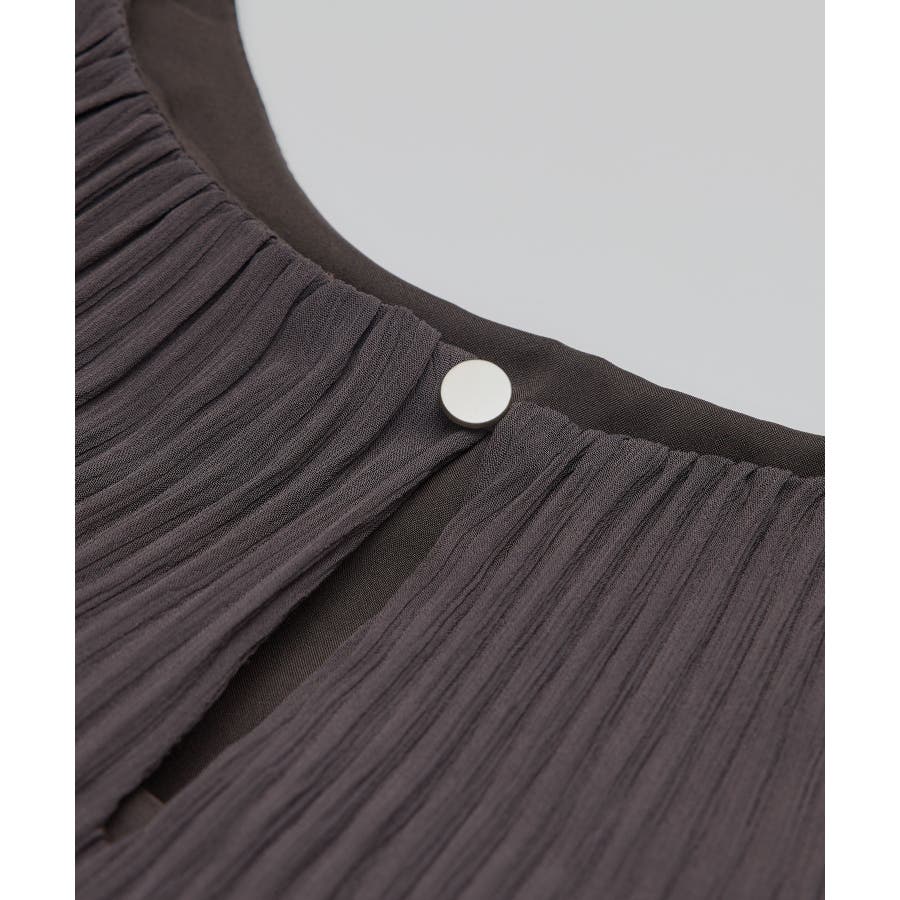 【素材感】 ・さらさらドライタッチのシアー素材を使用。 【デザイン・シルエット】 ・カップ付きで、一枚でラクして着られる半袖プルオーバーブラウス。 ・トップに細かなプリーツを施し、裾に向かって自然に消したややAライン寄りのシルエット。 【カラー】 ・チャコールブラウン、ベージュ、ブルーの3色展開。 【スタイリングポイント】 ・すっきりとしたテーパードパンツ合わせがおすすめ。 ・デイリー使いでラフにジーンズと合わせてもOK。 ----------------------------- 裏地:あり(カップ付き) 透け感:ややあり 伸縮性:なし 生地感・厚さ:やや薄手 ボタン:開閉可能 季節:夏 ----------------------------- ※撮影時の光、お使いのモニター環境によって色の見え方が違う場合がございます。 ※モデル身長:165cm 着用サイズ:38