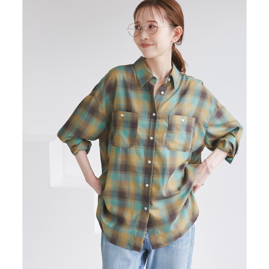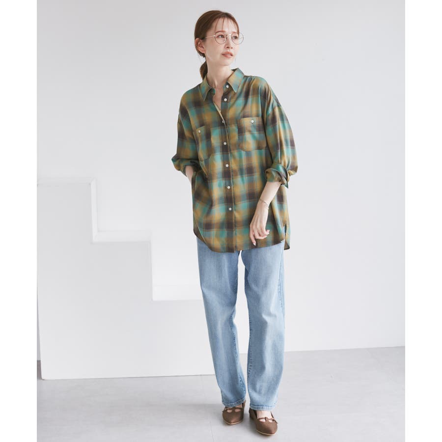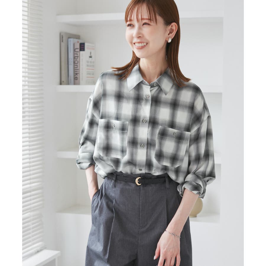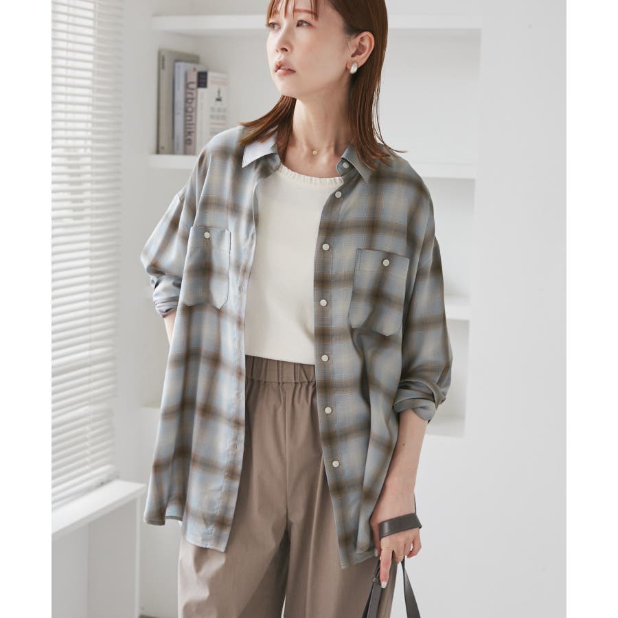 ・ゆとりのあるサイズ感のオンブレチェックシャツ。
