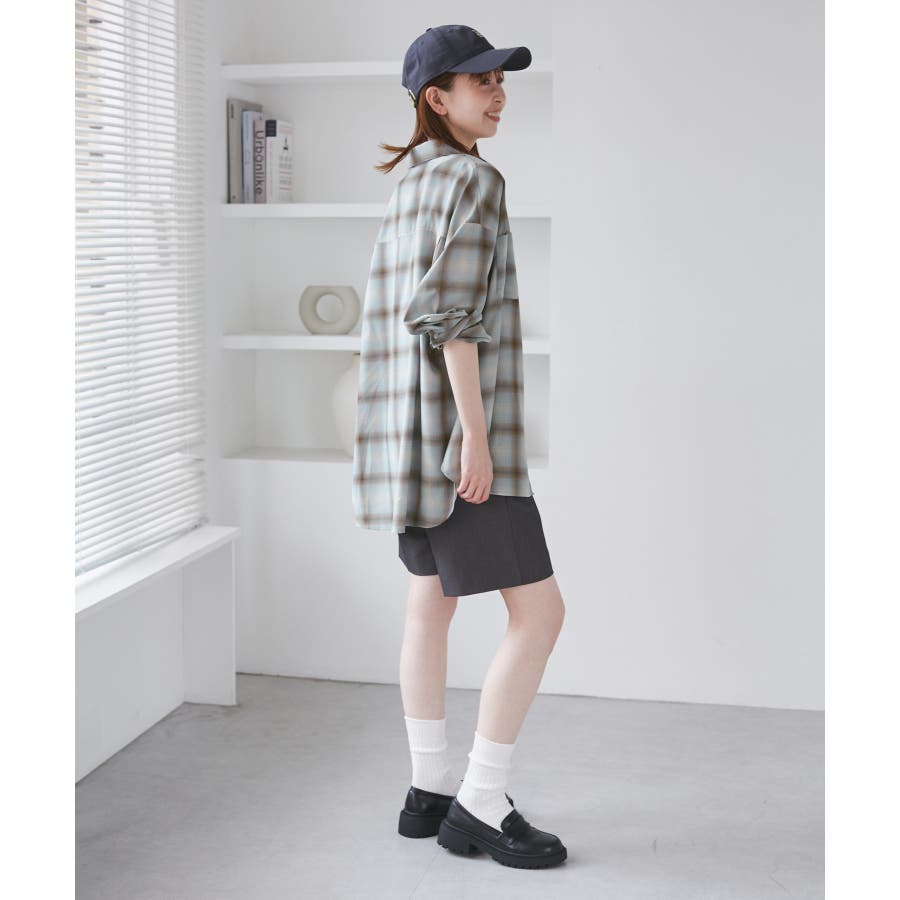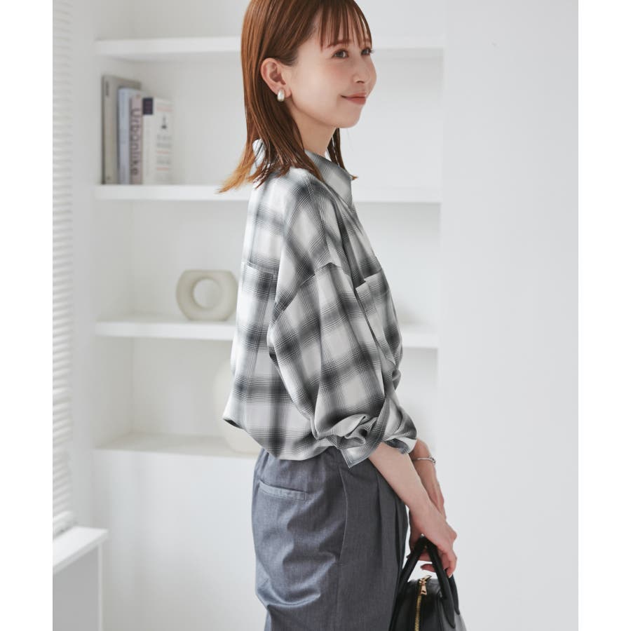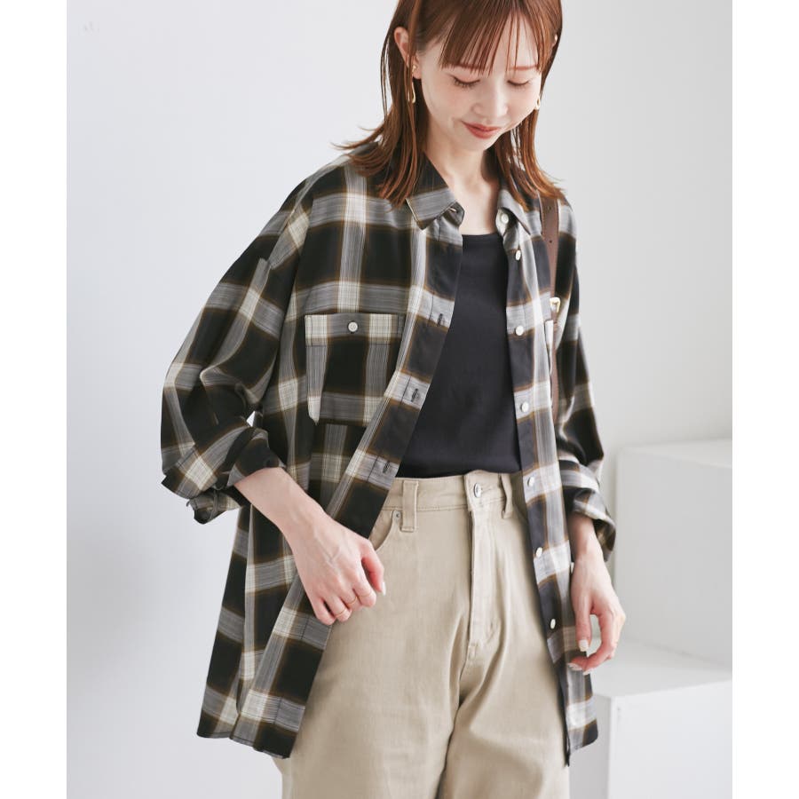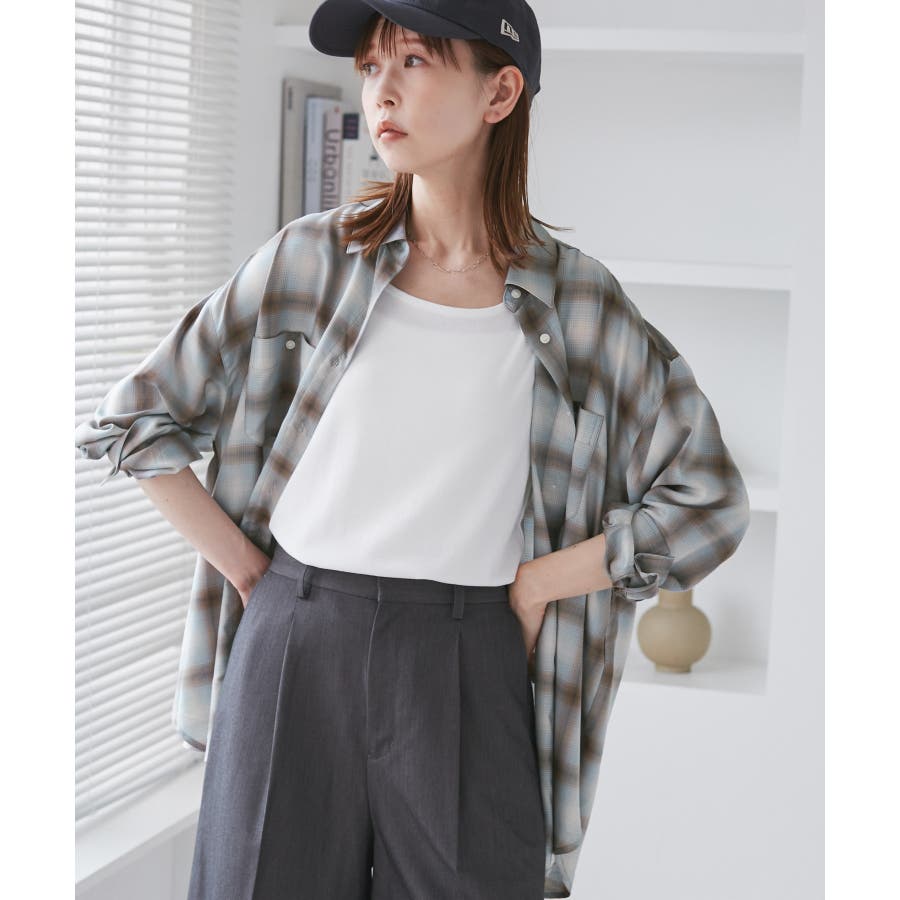 ・ゆとりのあるサイズ感のオンブレチェックシャツ。