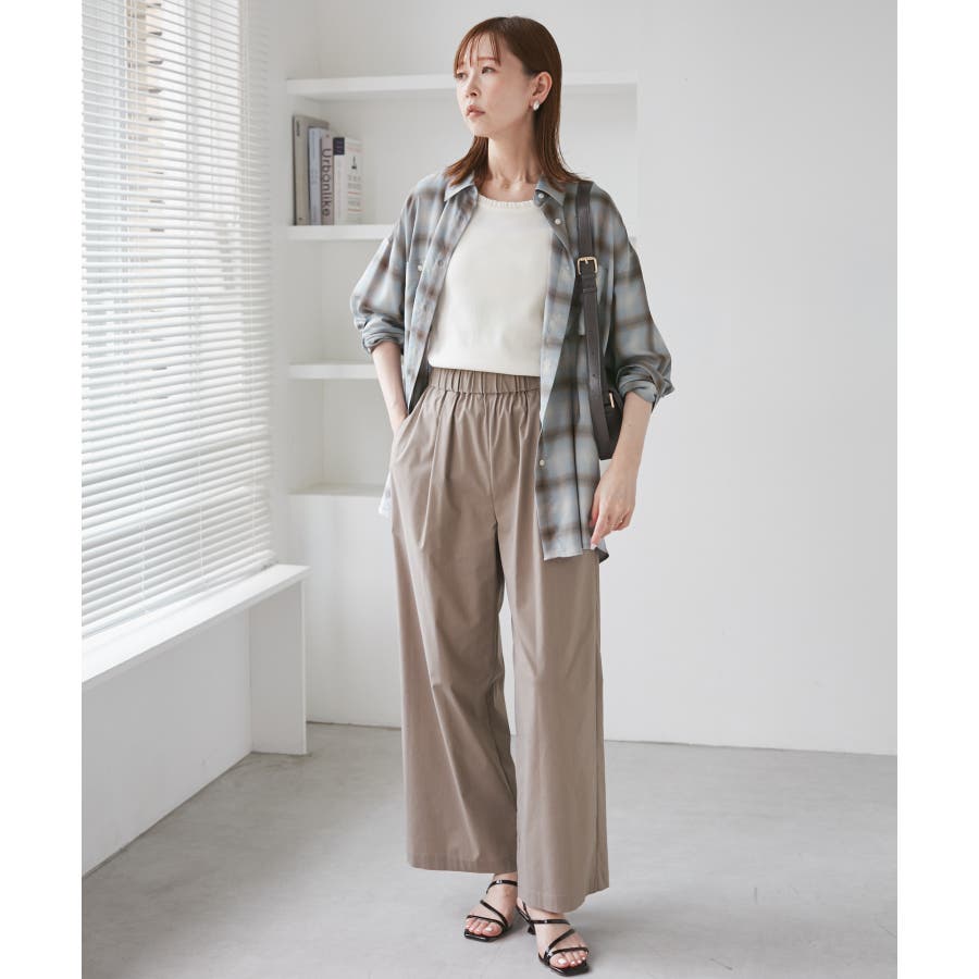 ・アイラインスカートやワイドパンツとのコーディネートが合わせやすく大人カジュアルなスタイルが完成。