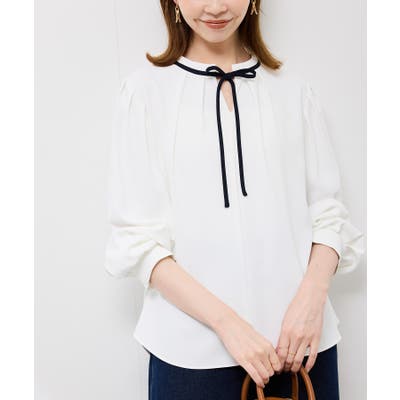 【ネイビー系(41)】【前後2WAY】【WEB限定カラー】配色リボンブラウス/通勤対応