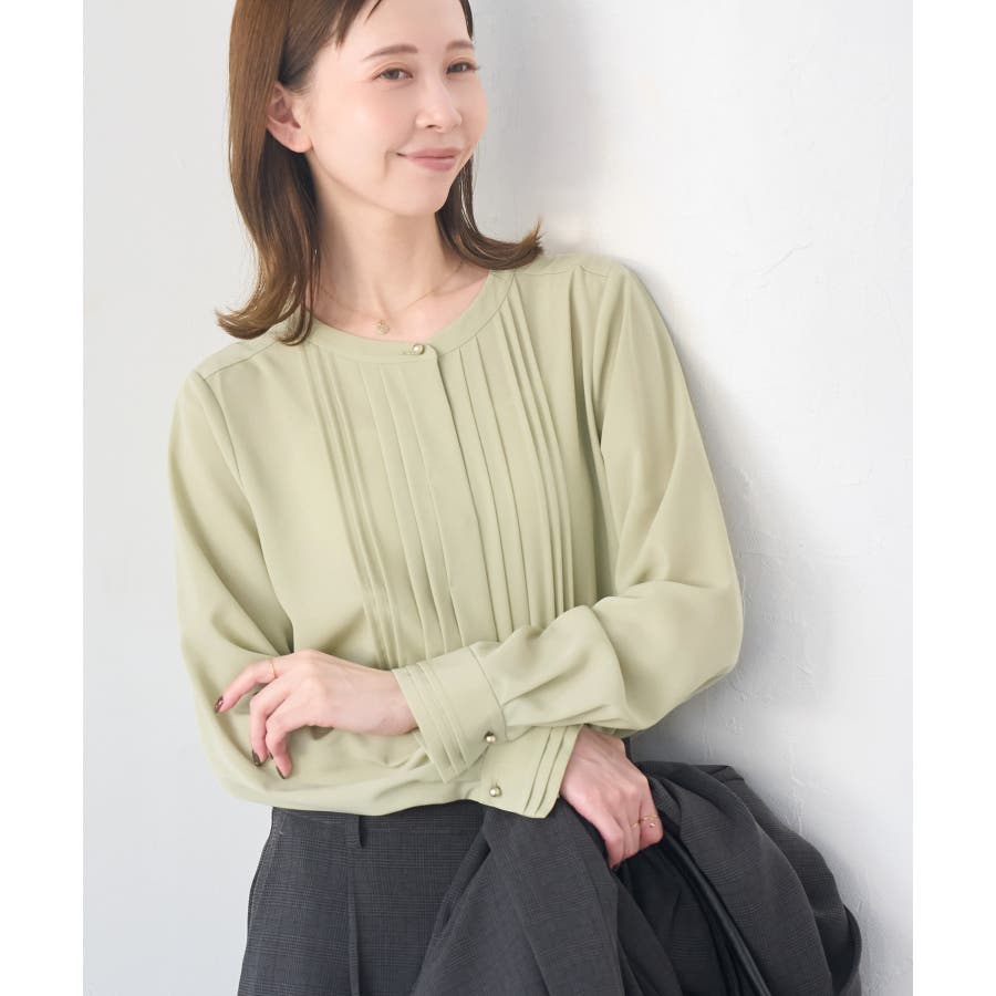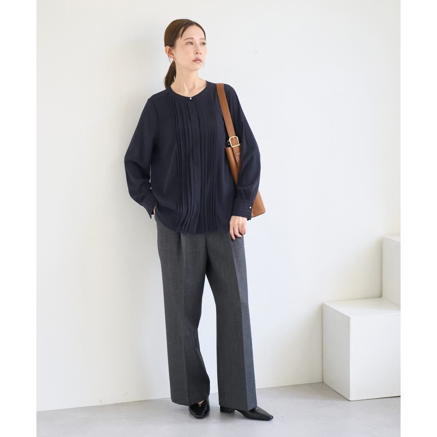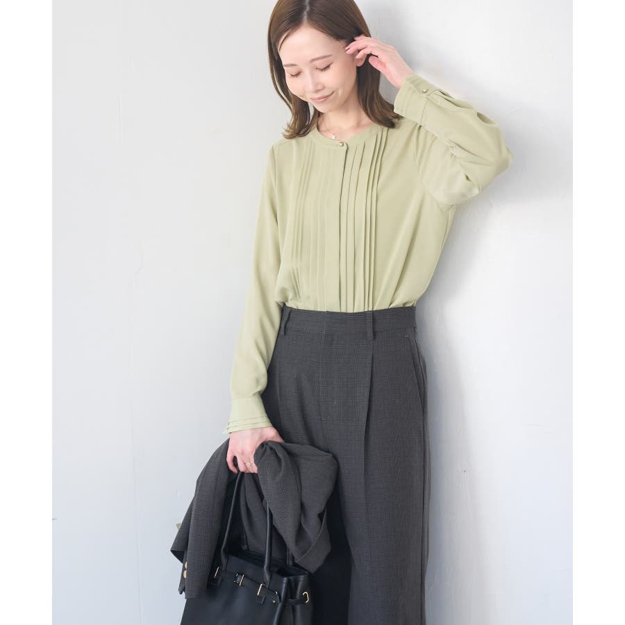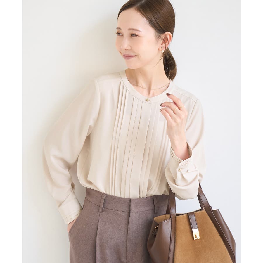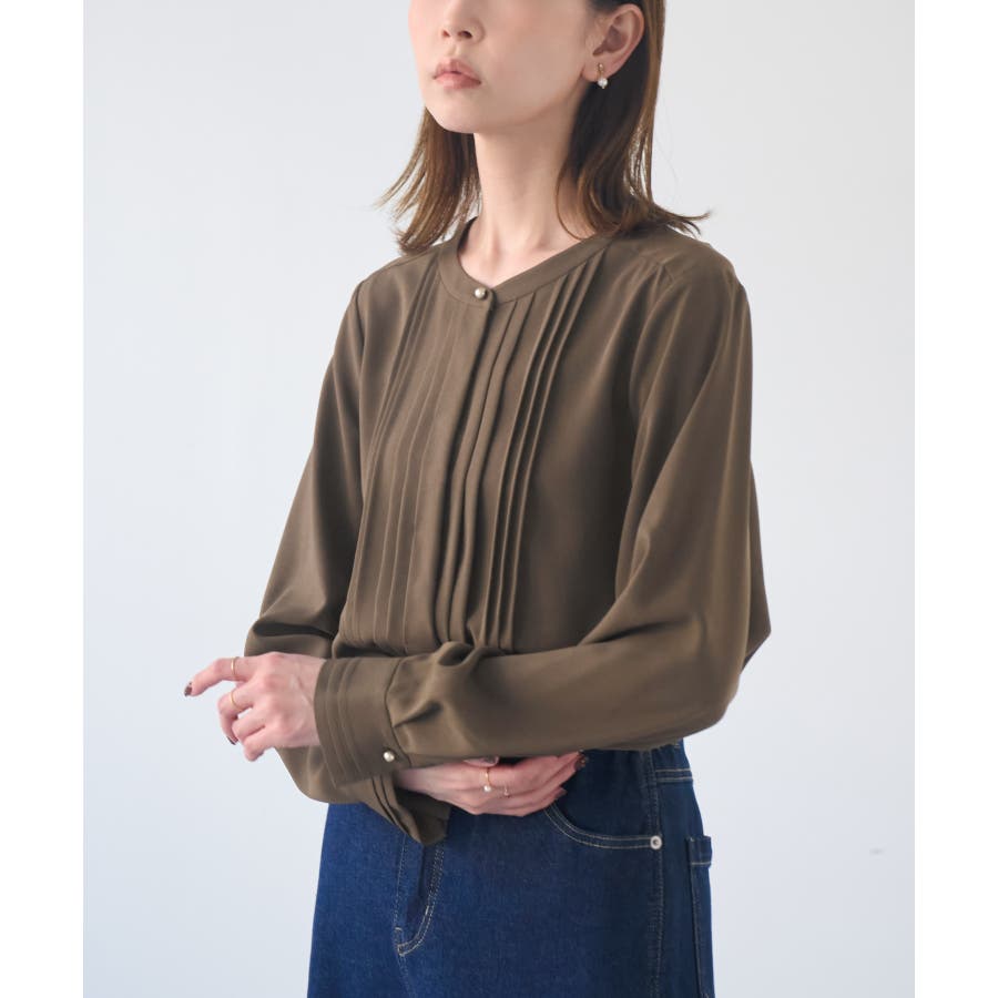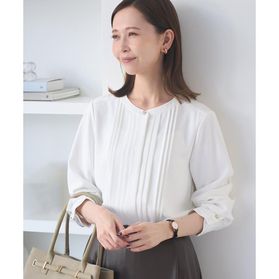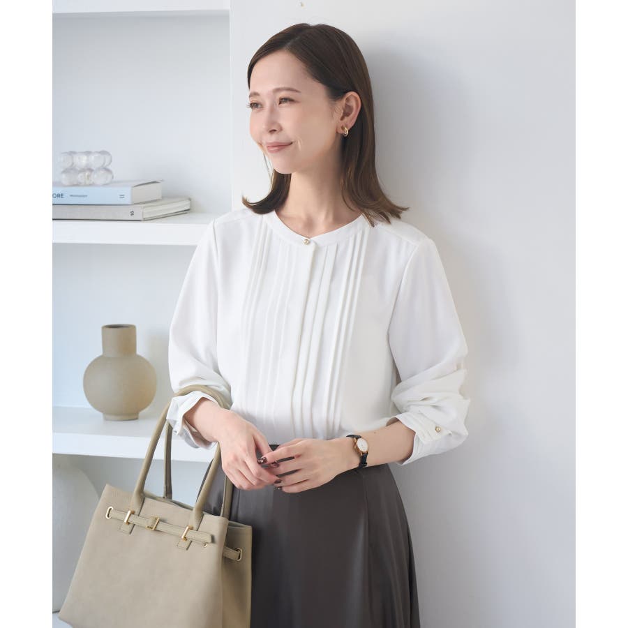 ・前身頃と袖口に施された繊細なピンタックが上品なアクセント。