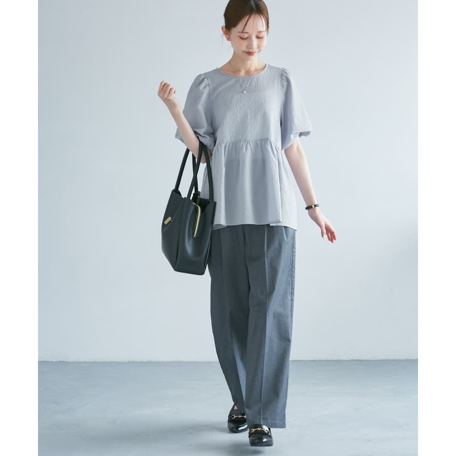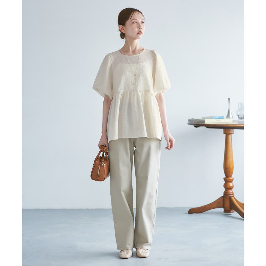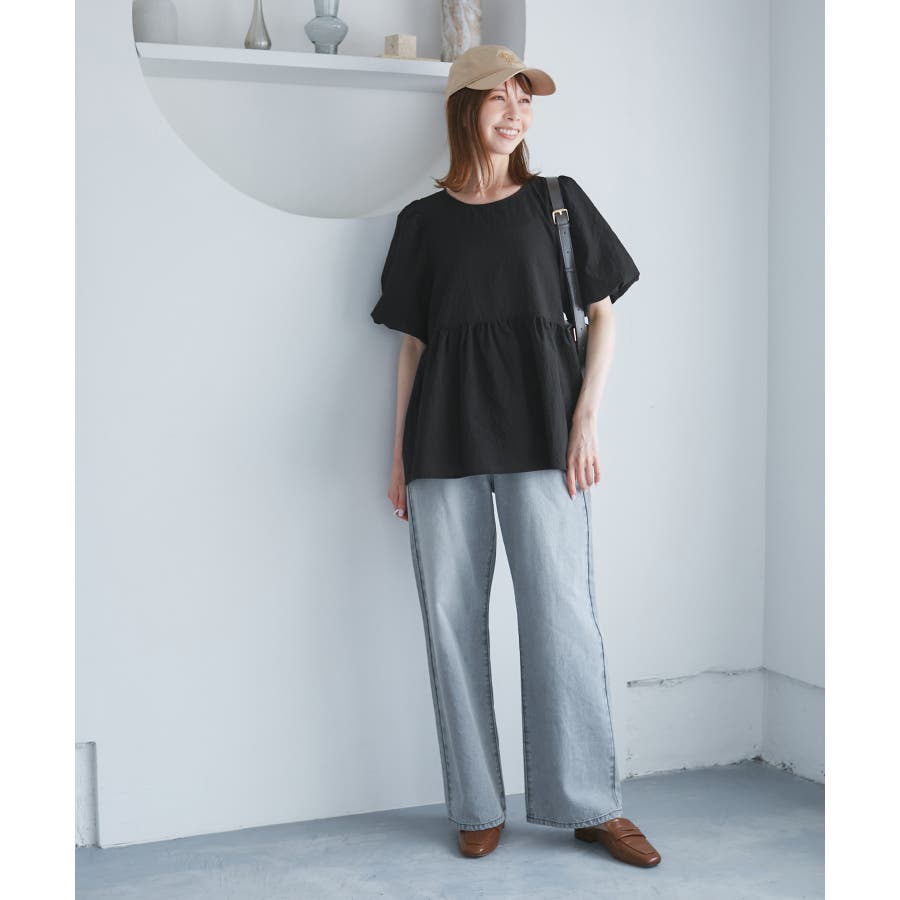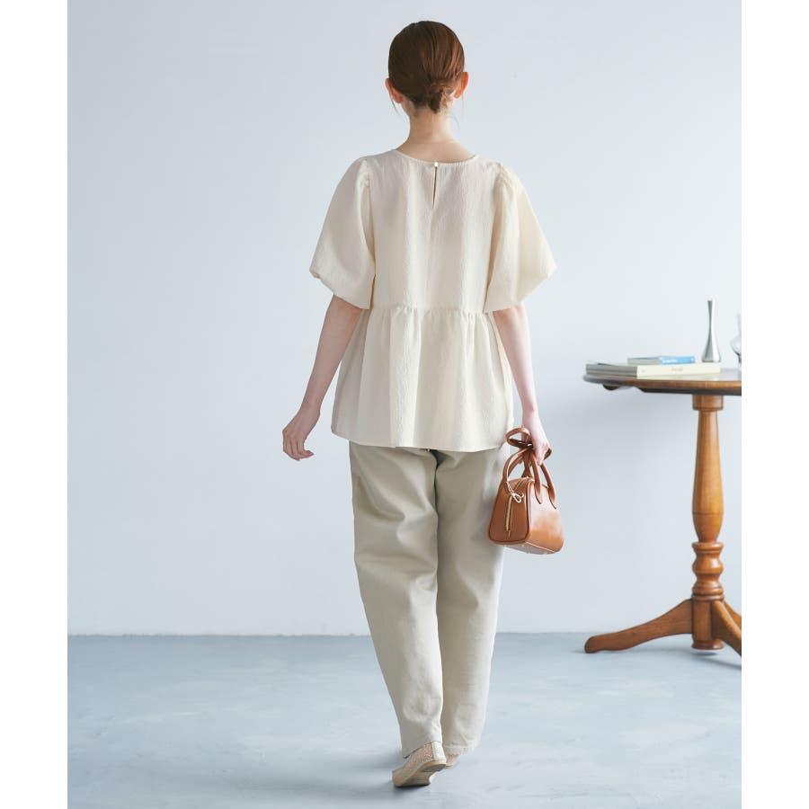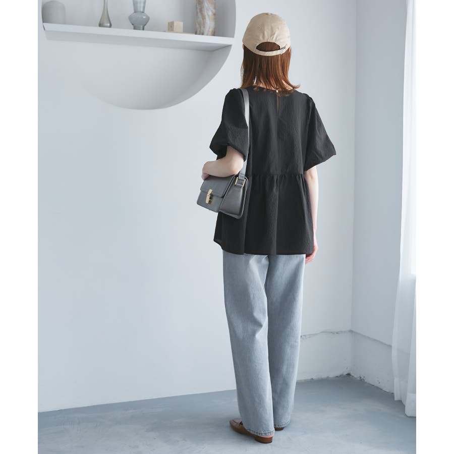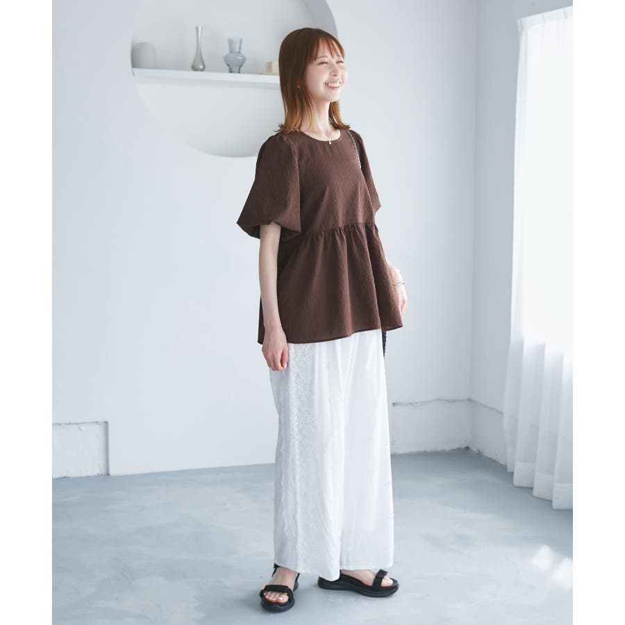 ・ハイウエストで切り替え、裾に向かって広がりを持たせたペプラムシルエット。