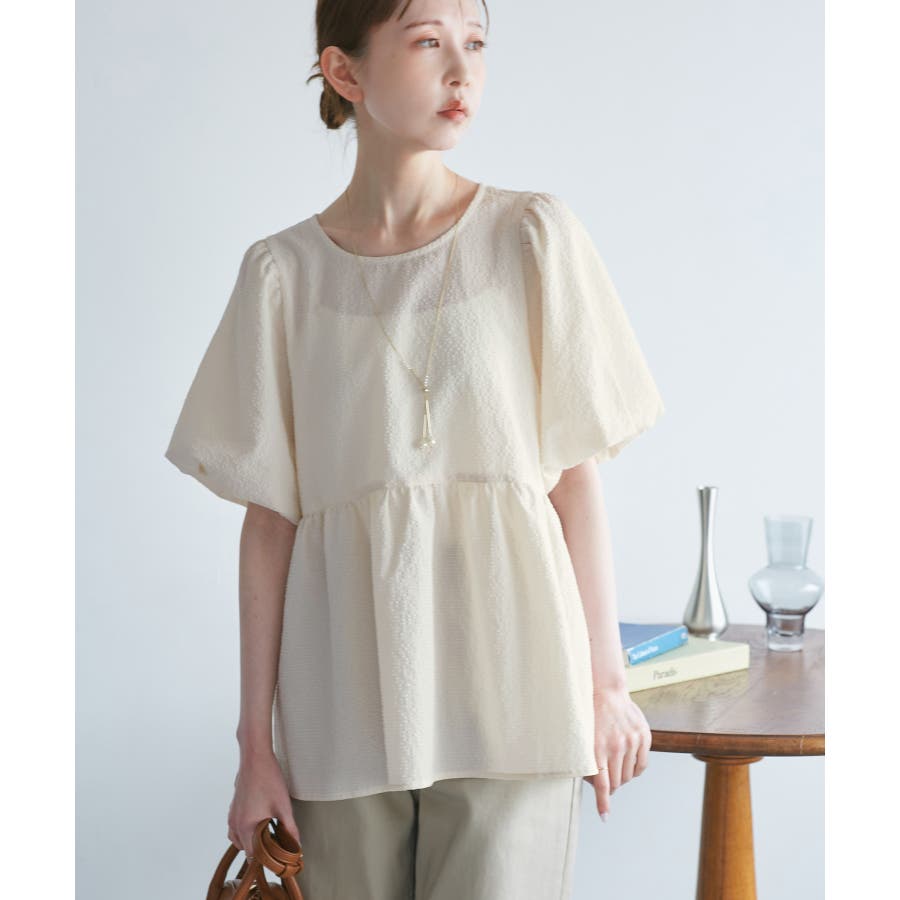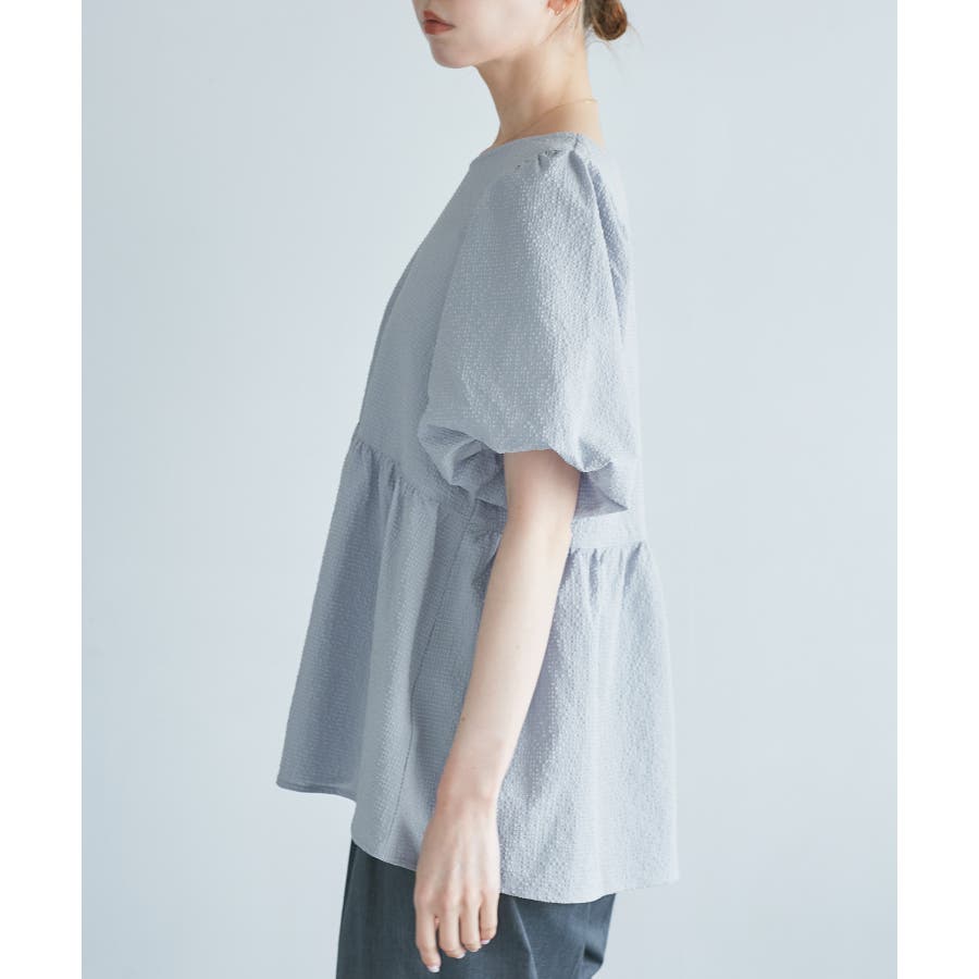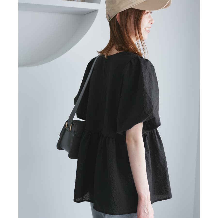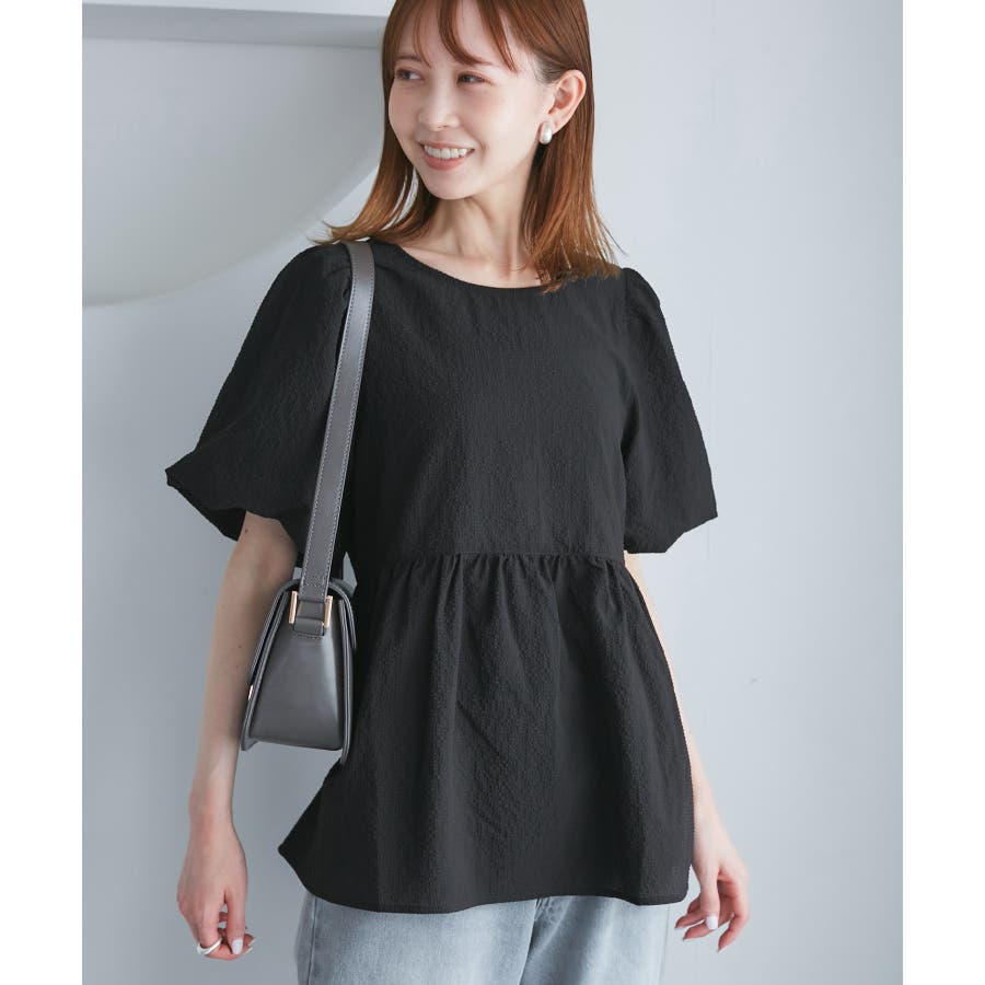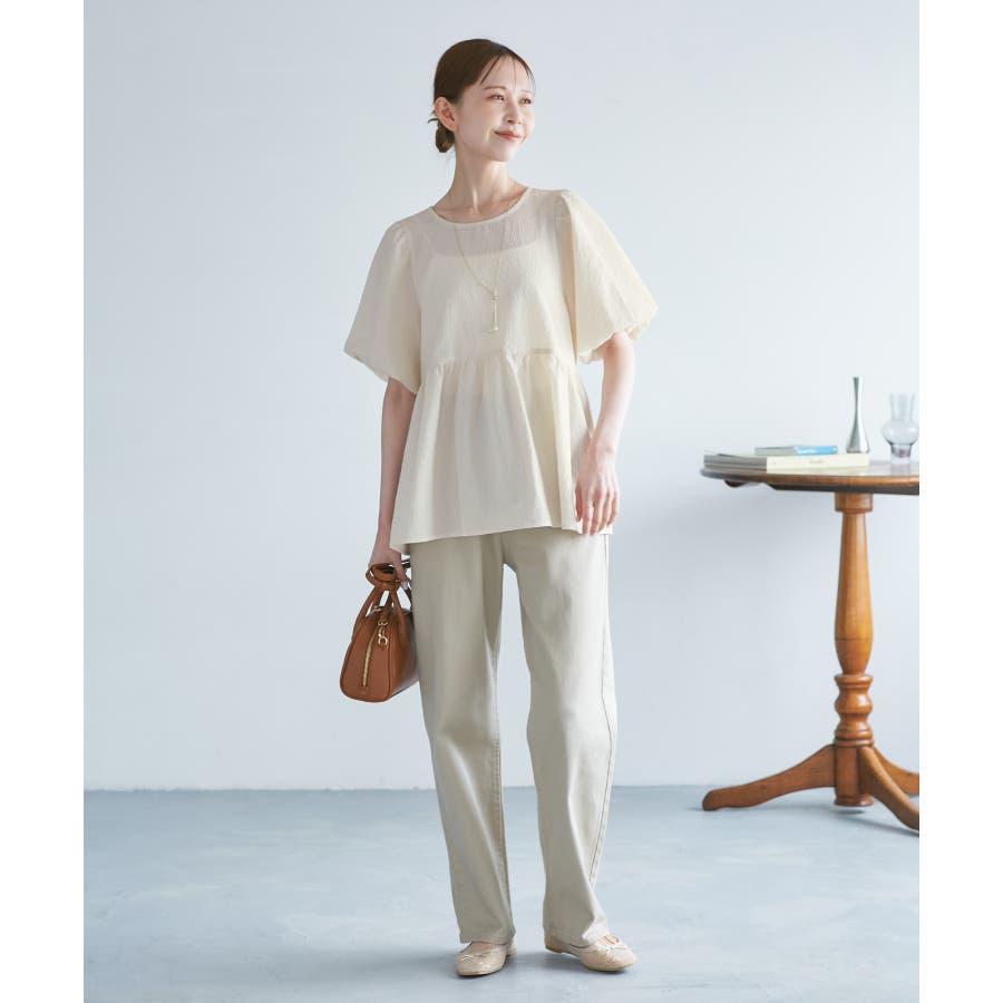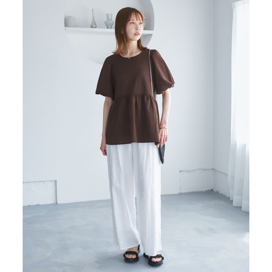 ・ハイウエストで切り替え、裾に向かって広がりを持たせたペプラムシルエット。