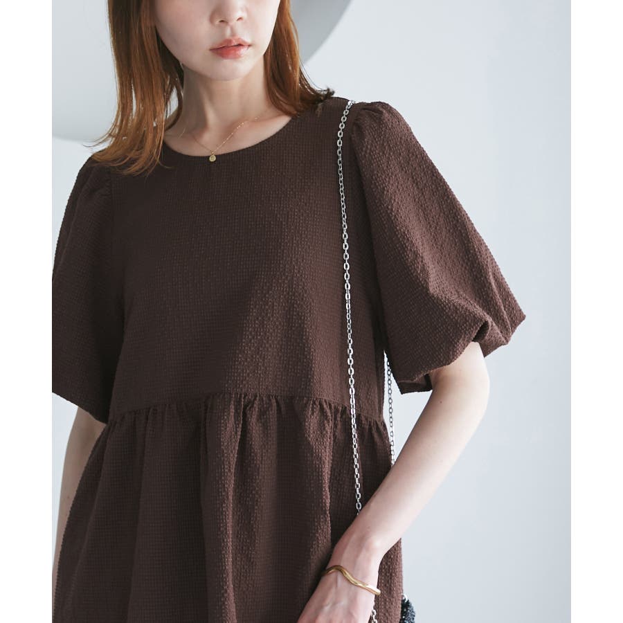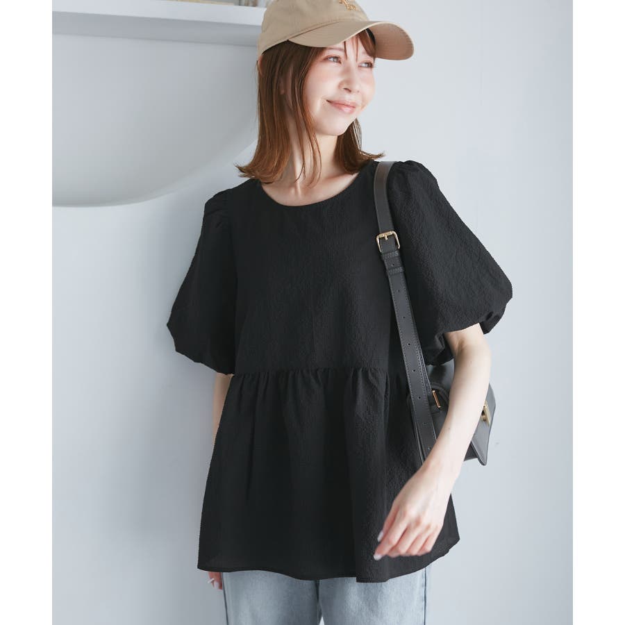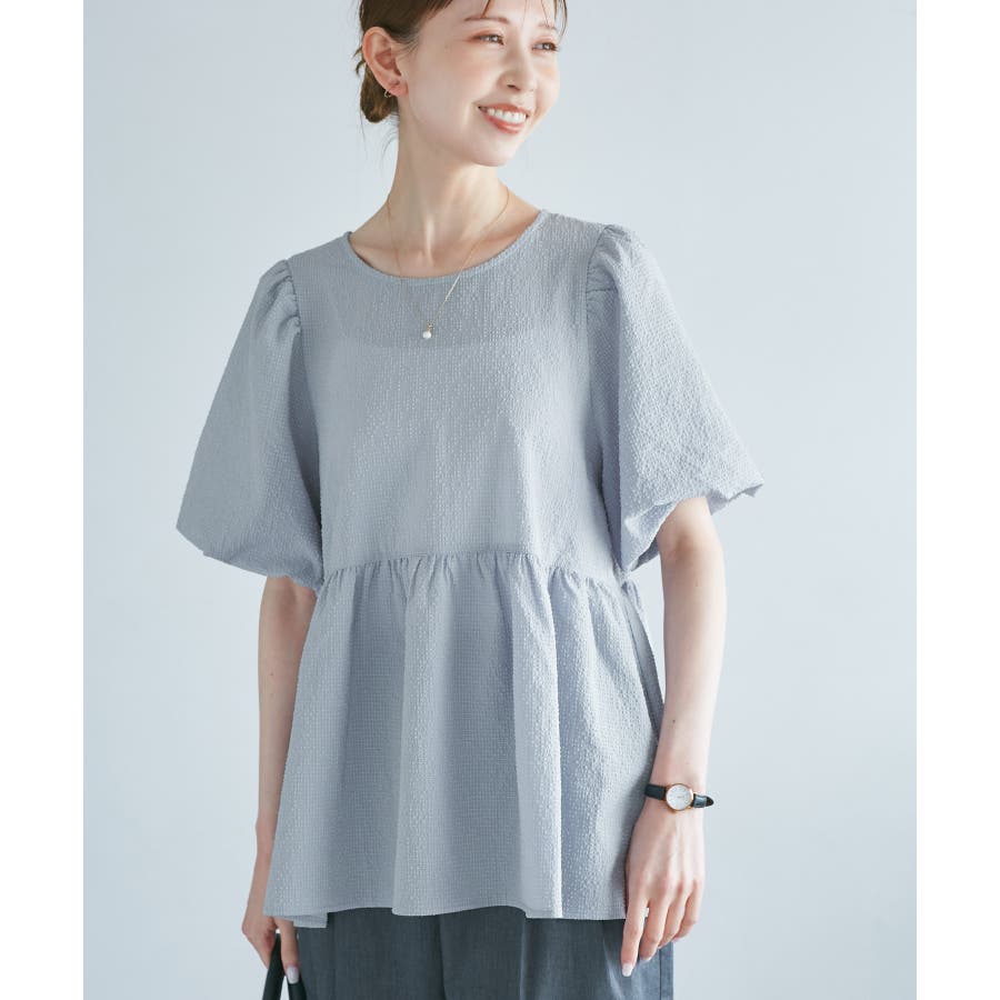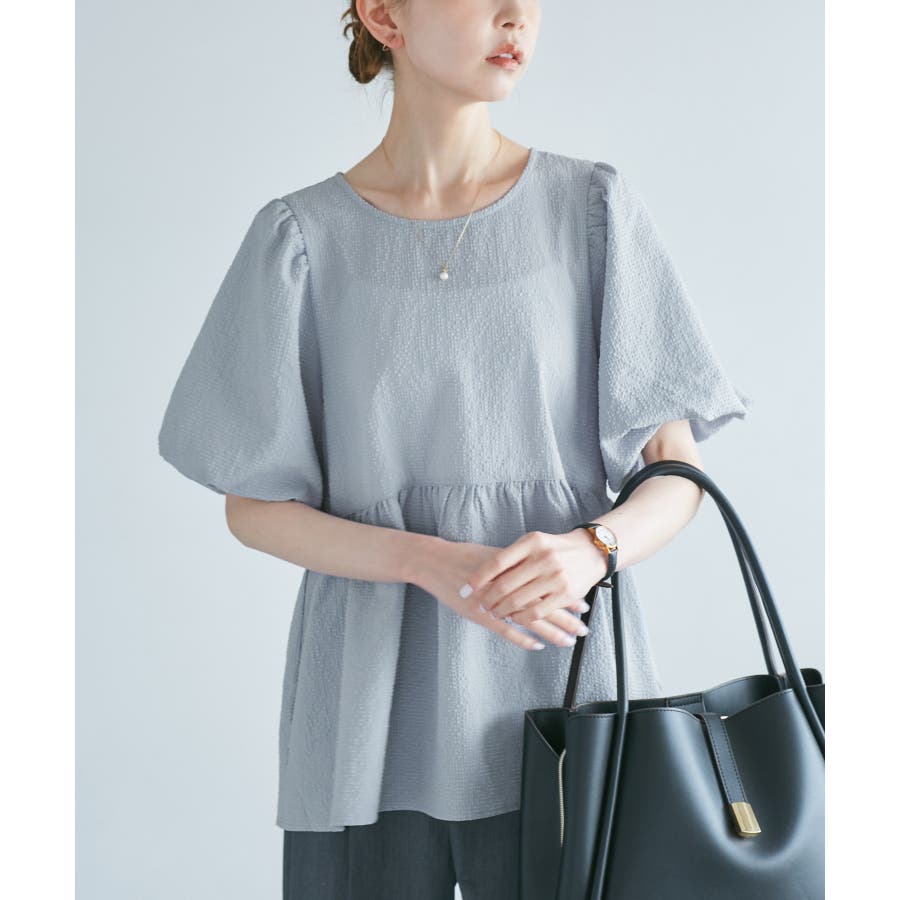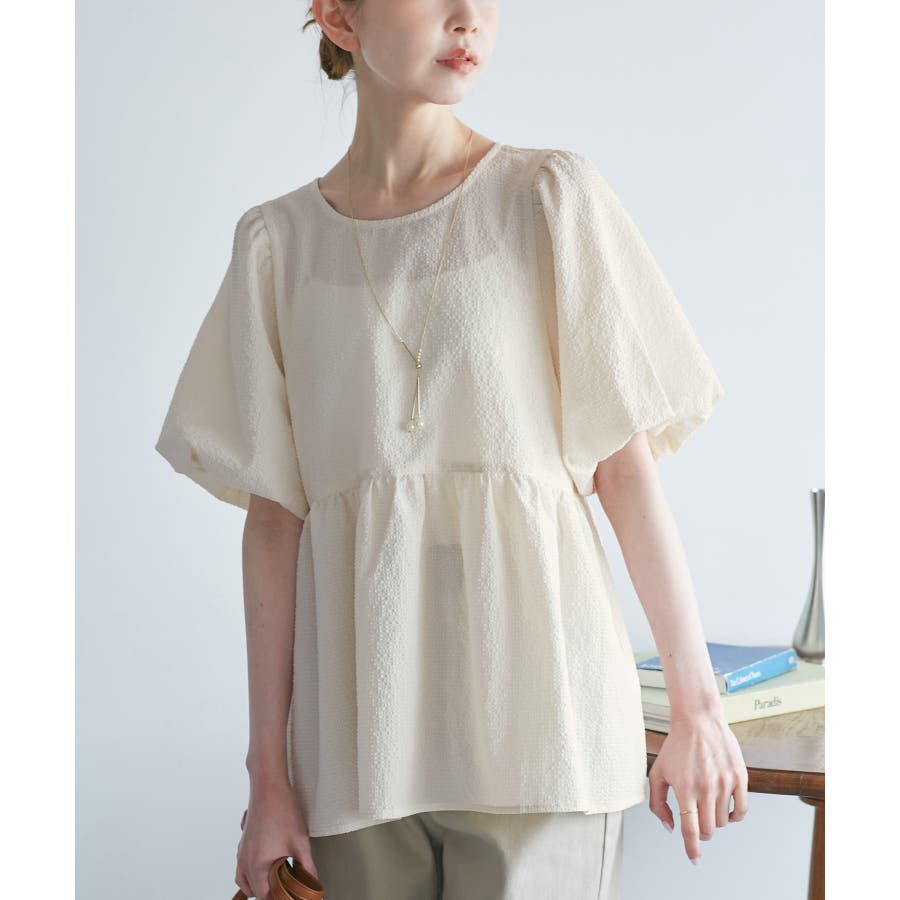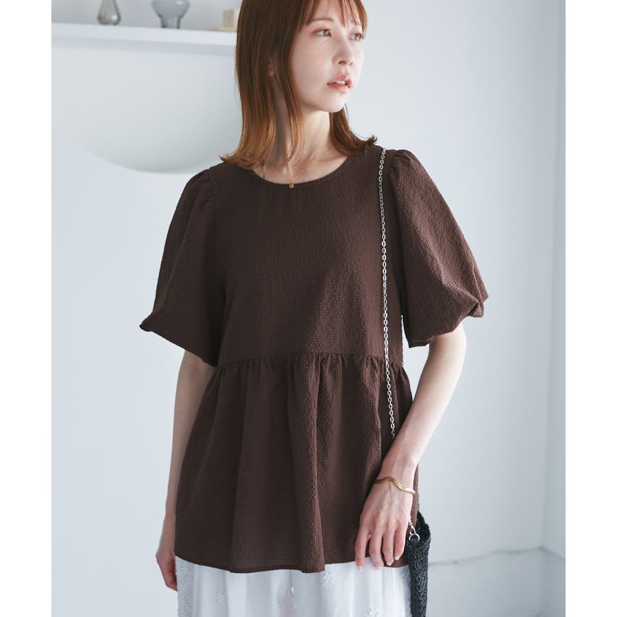 ・ハイウエストで切り替え、裾に向かって広がりを持たせたペプラムシルエット。