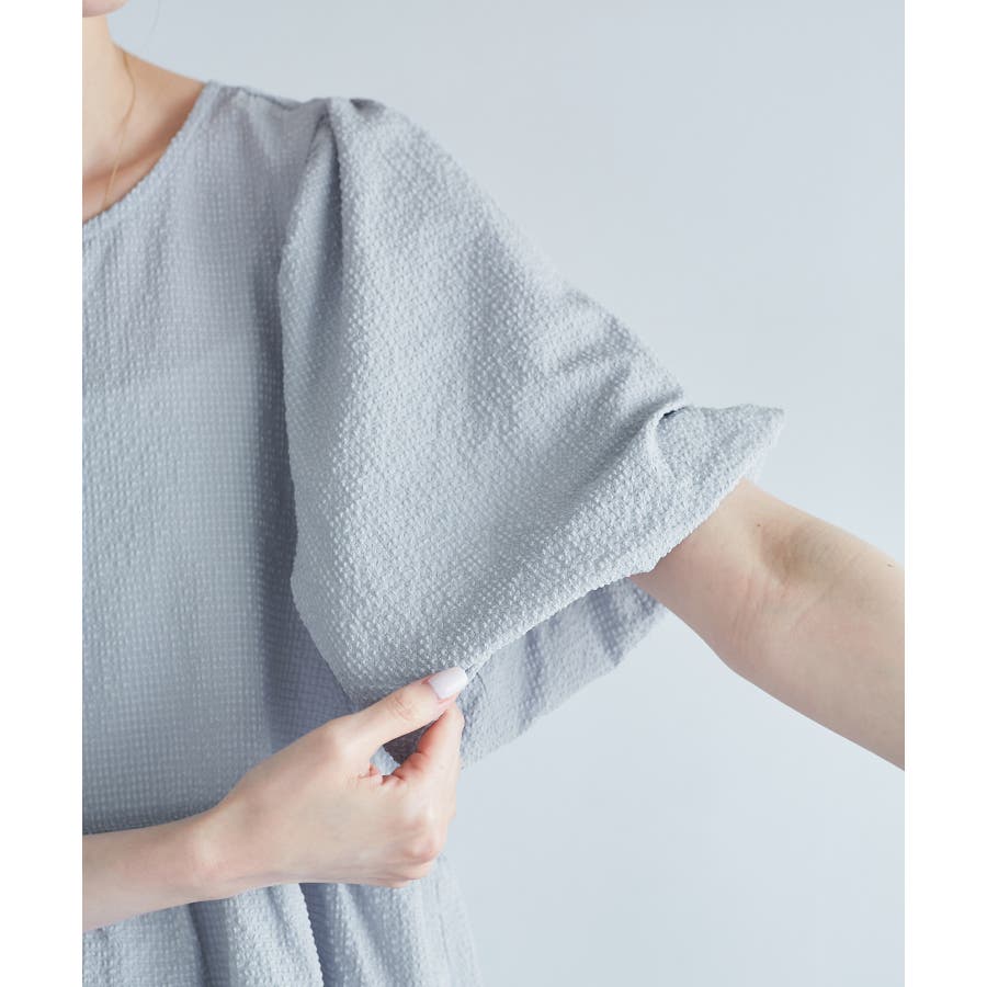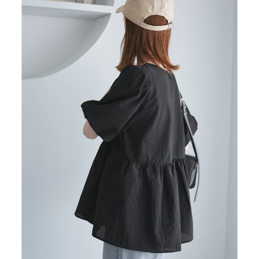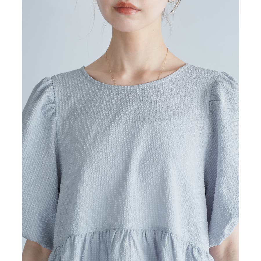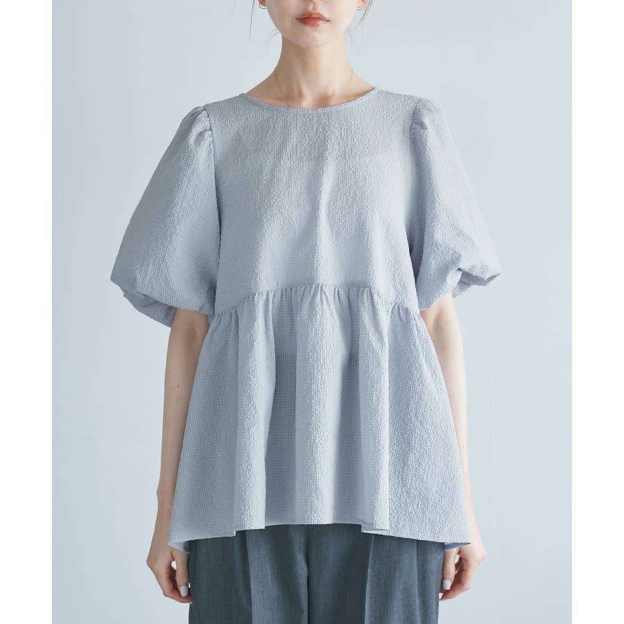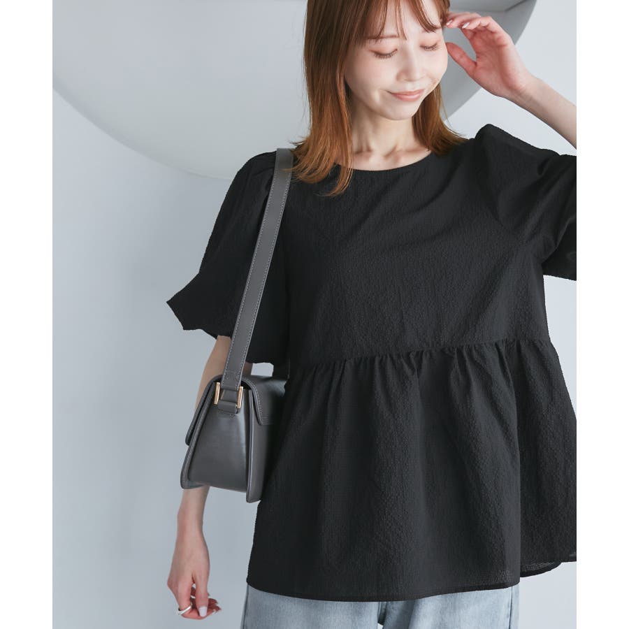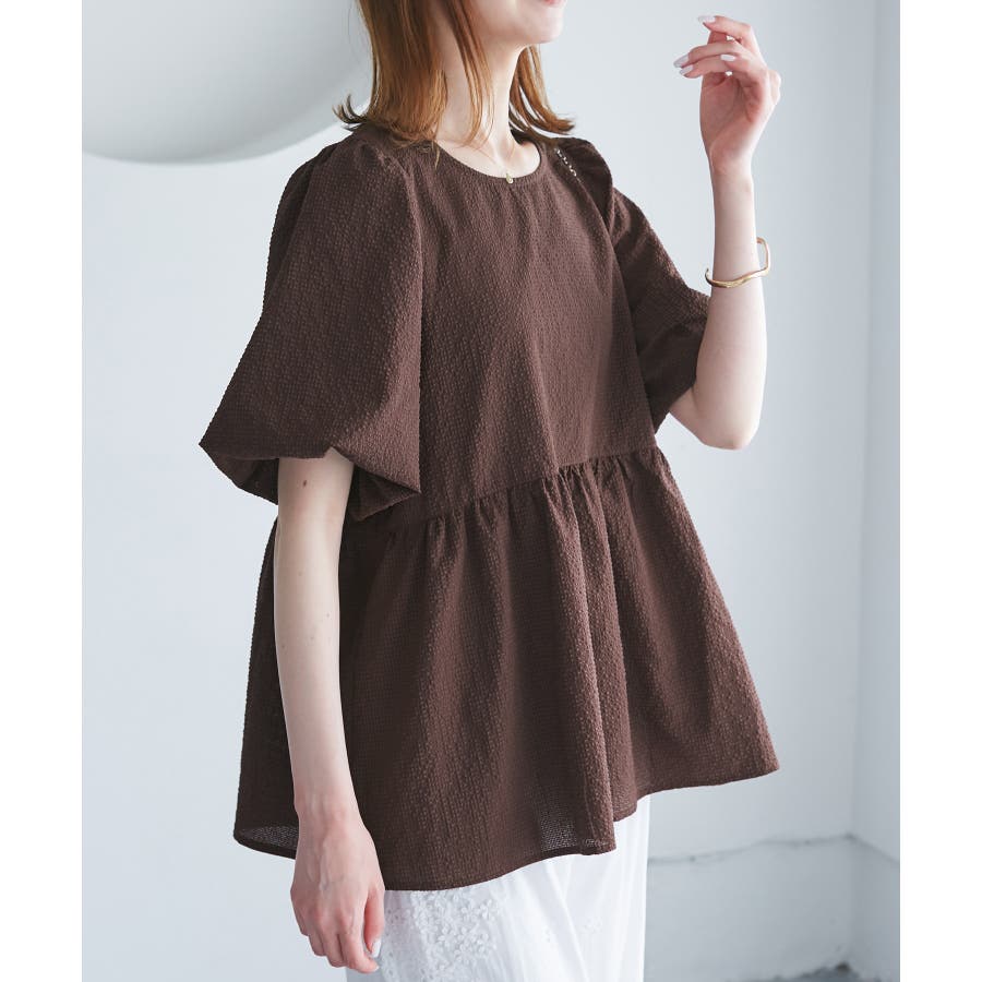 ・ハイウエストで切り替え、裾に向かって広がりを持たせたペプラムシルエット。
