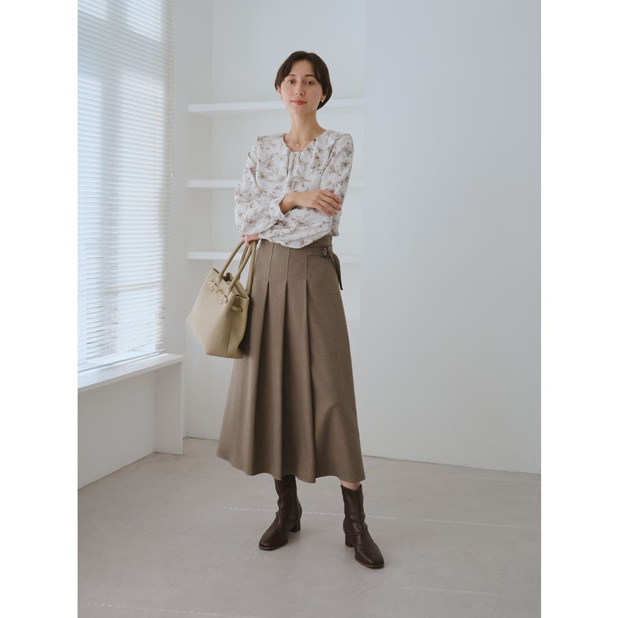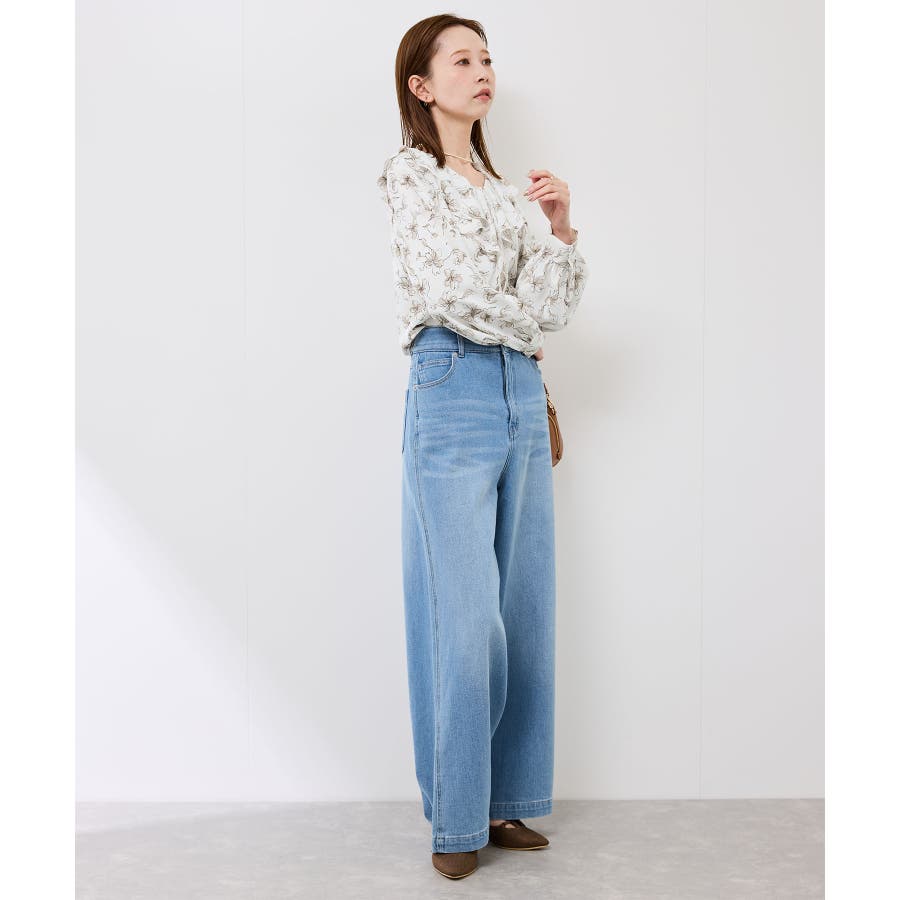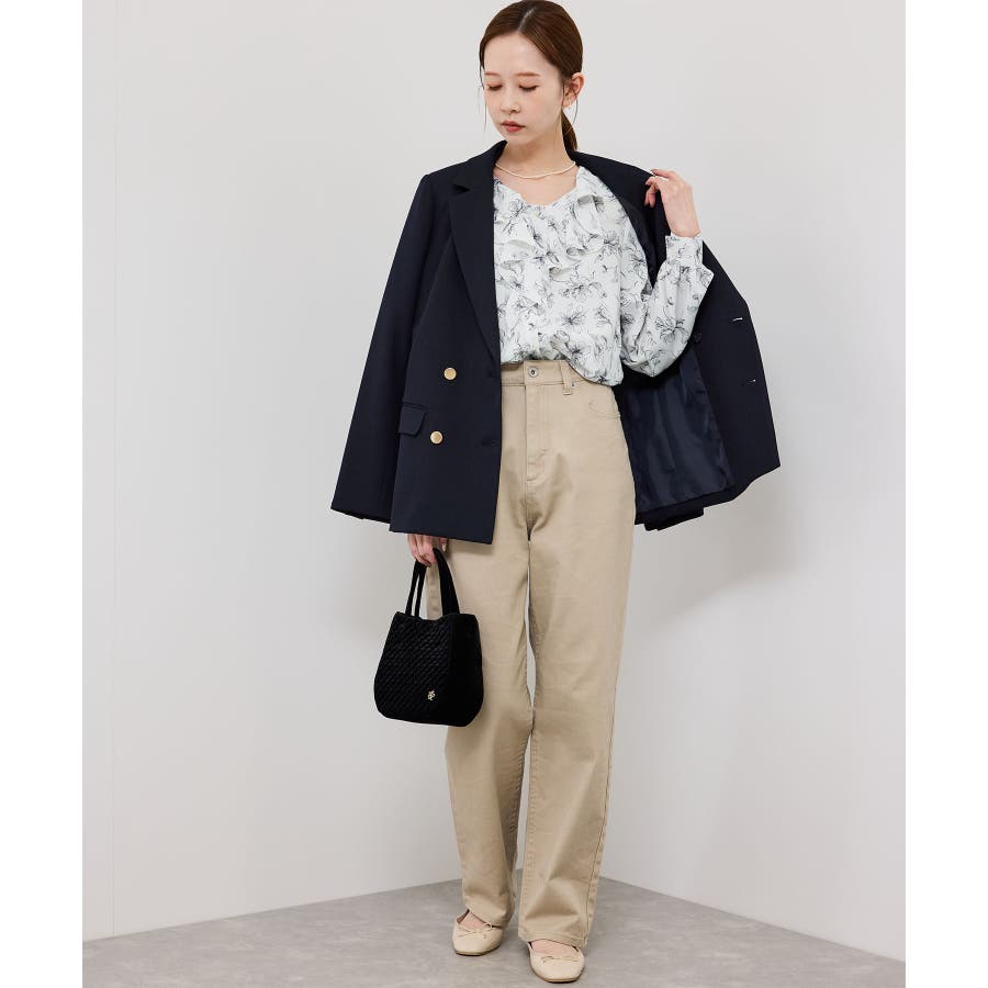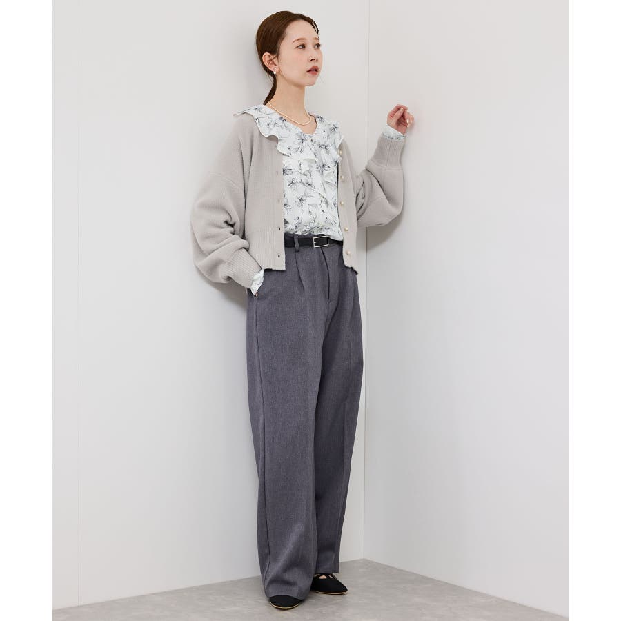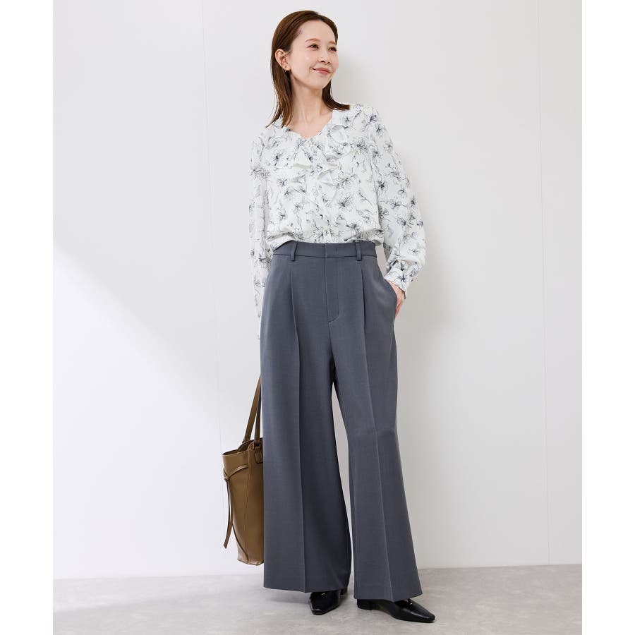 ・手描き調の花柄のラッフルカラーのブラウス。
