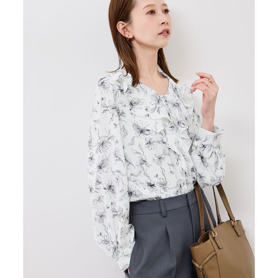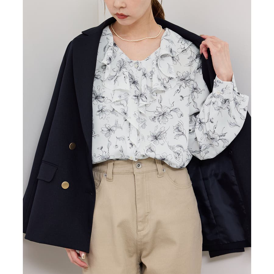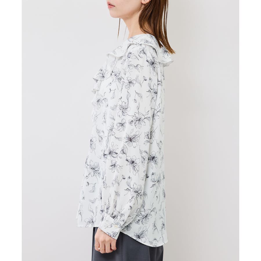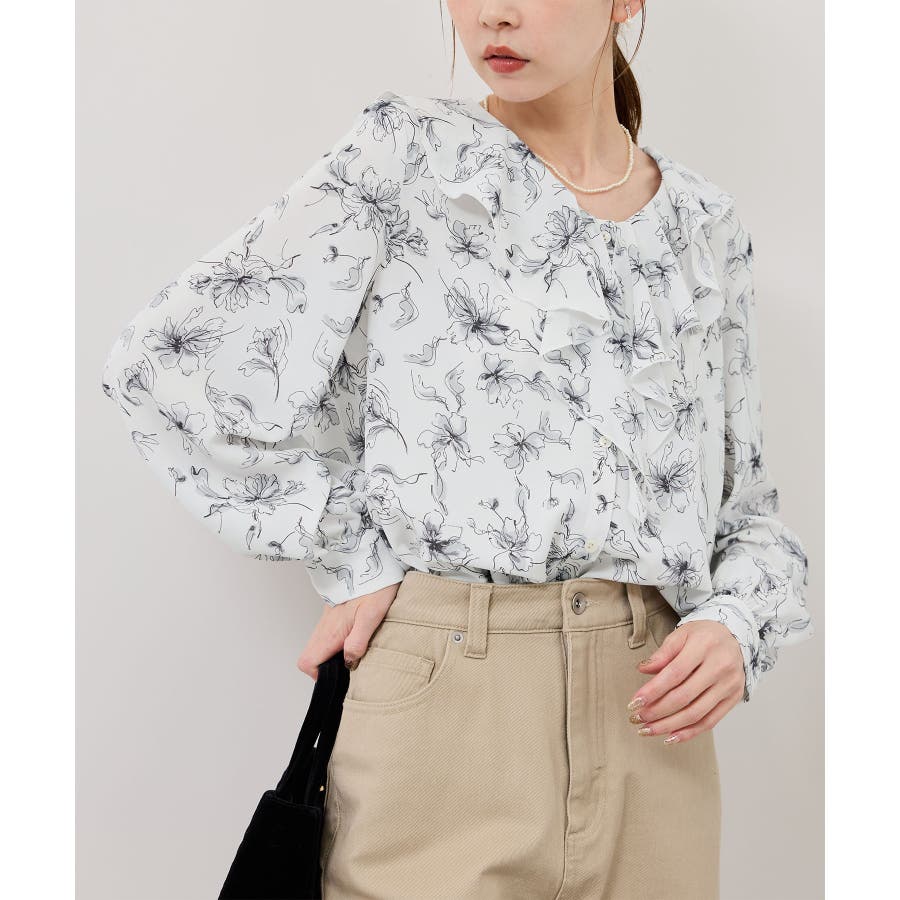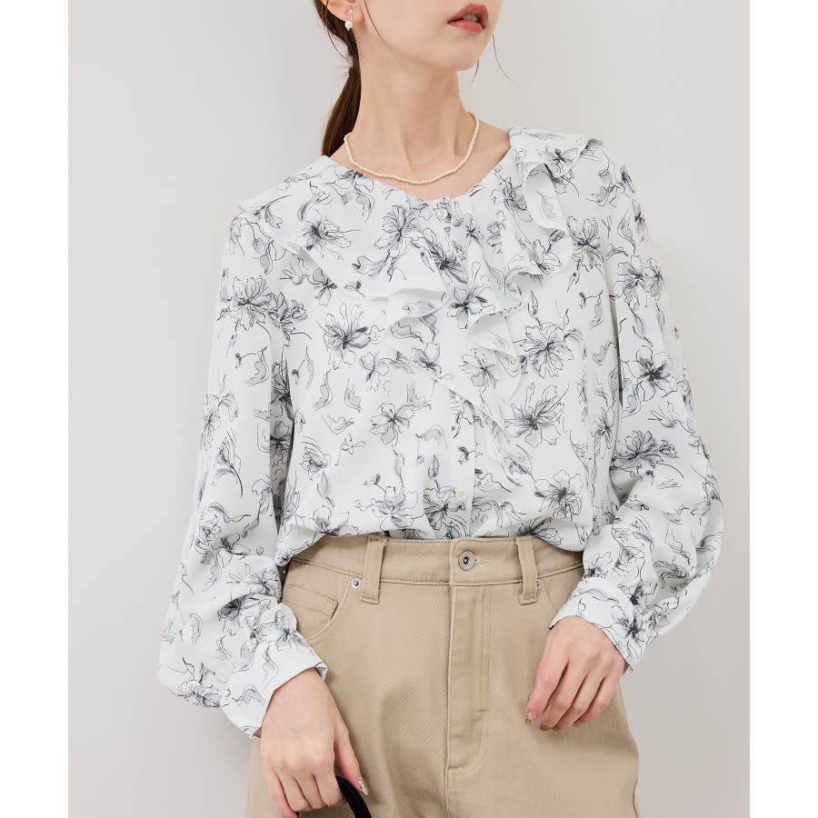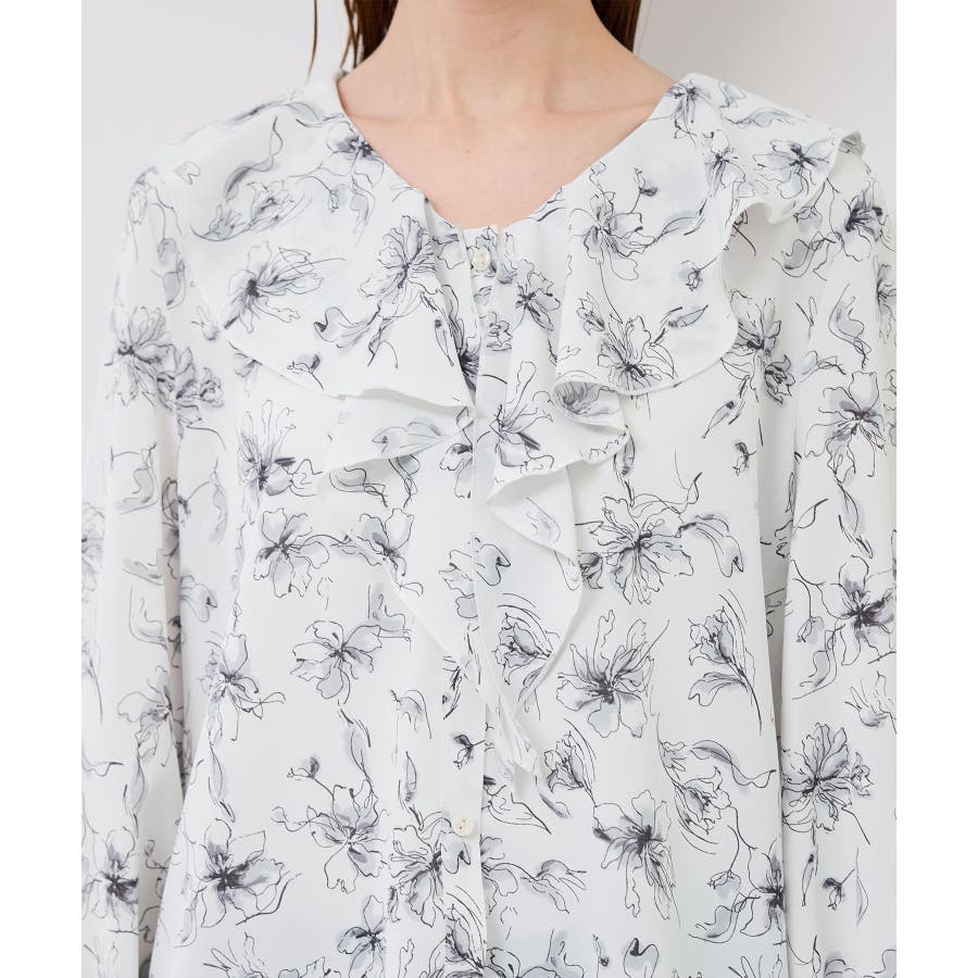 花柄ラッフルデザインブラウス