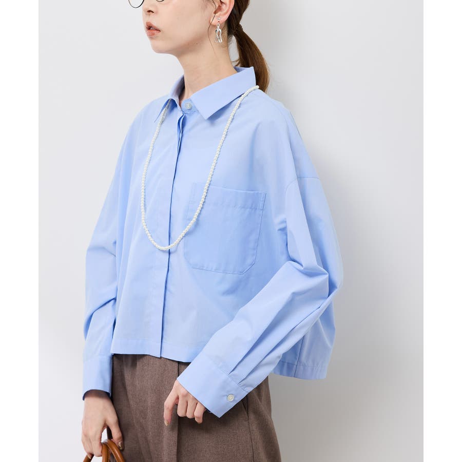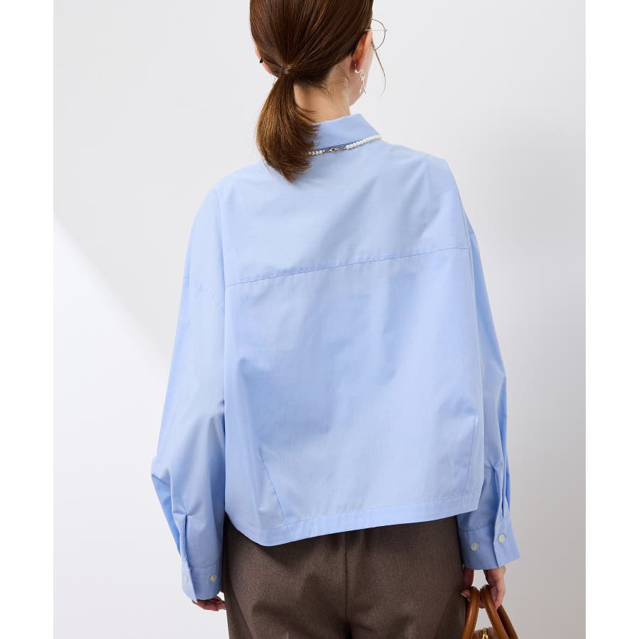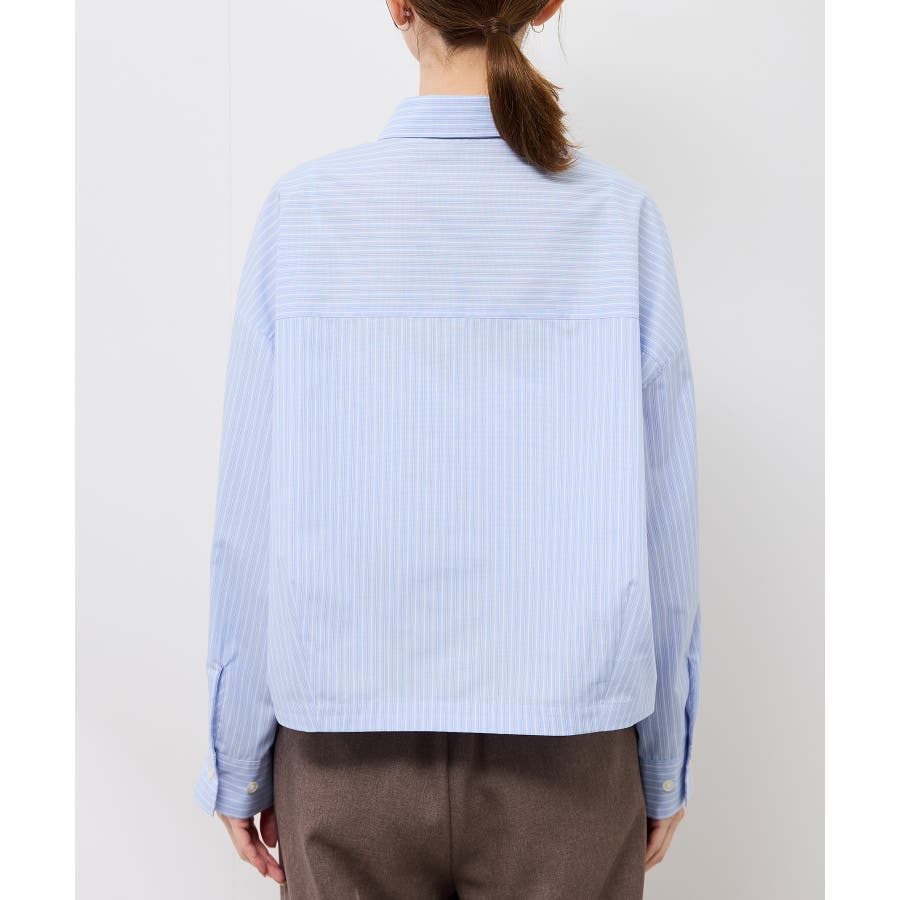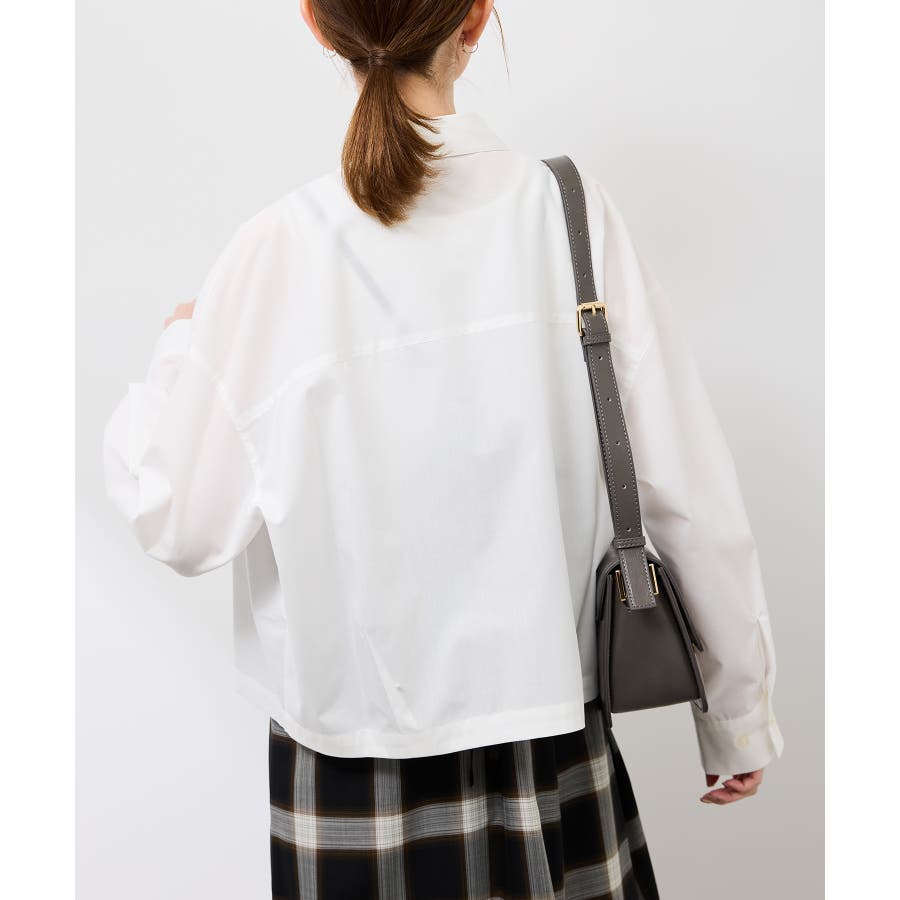 ・裾にダーツをとり構築的なディテールをいれることでバックシルエットがバルーン状につくられるデザインのクロップドシャツ。
