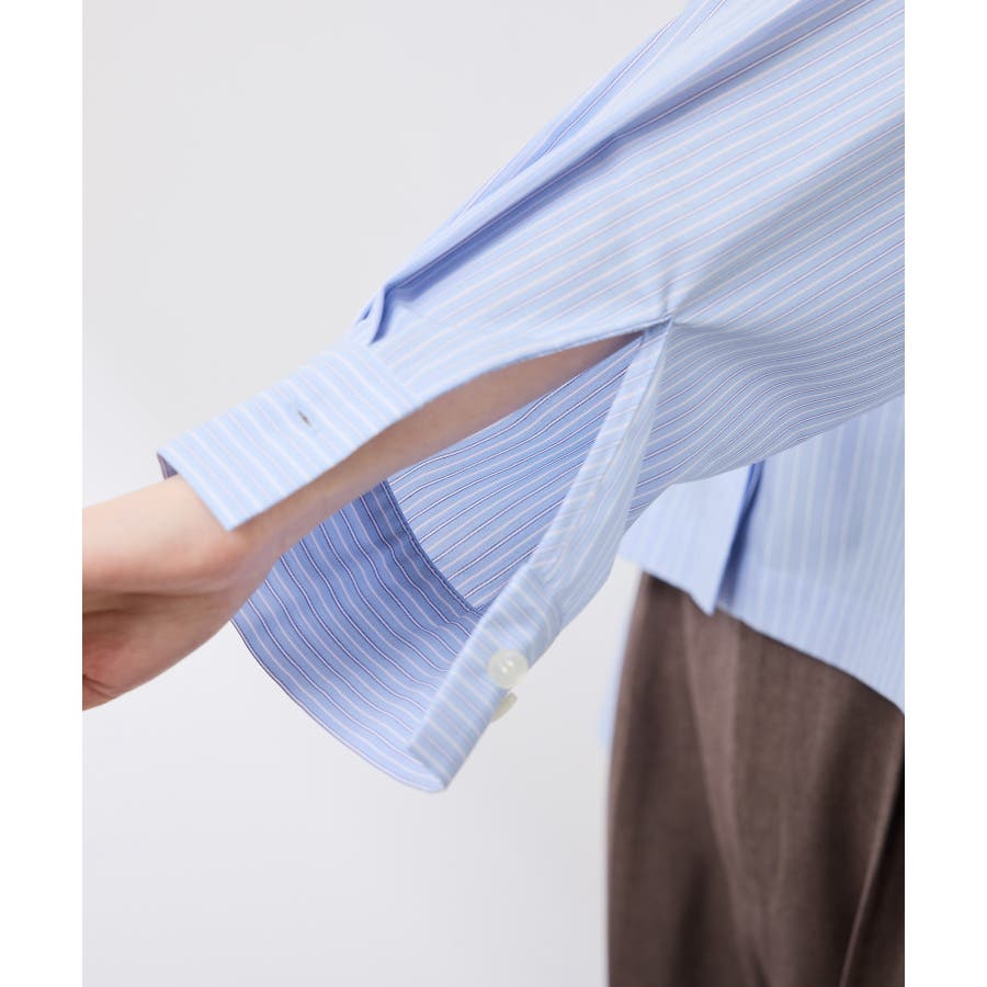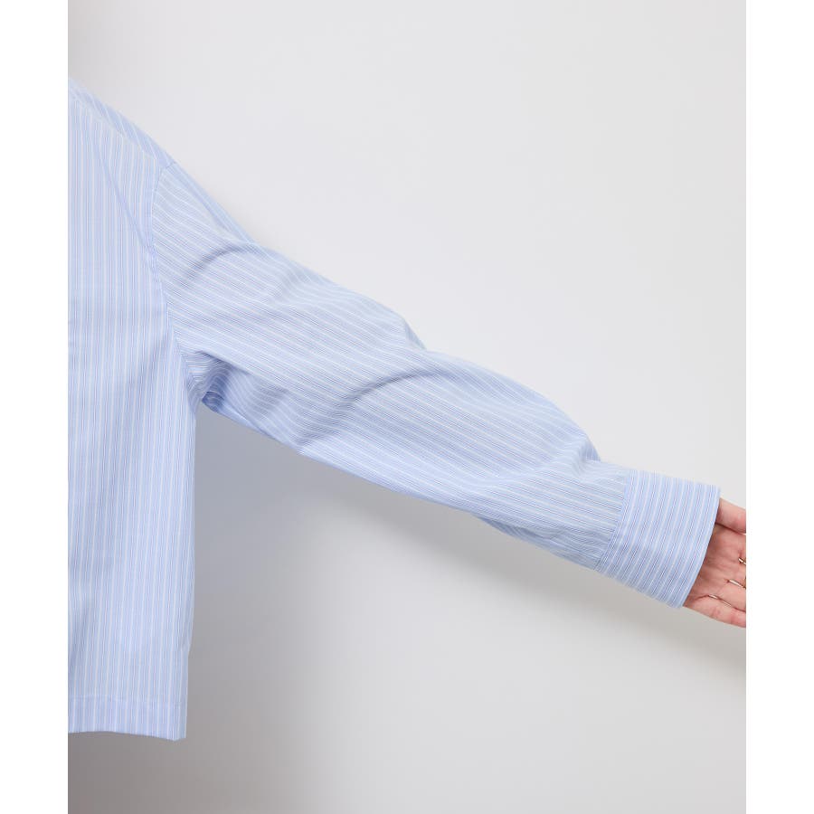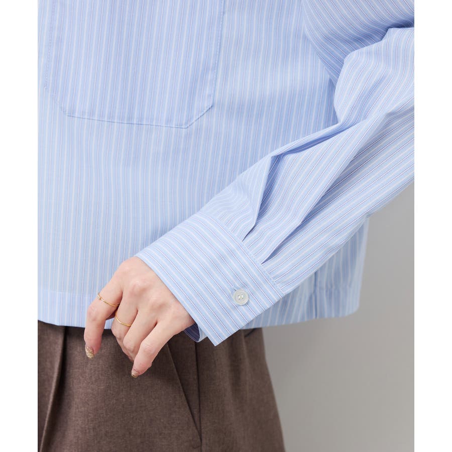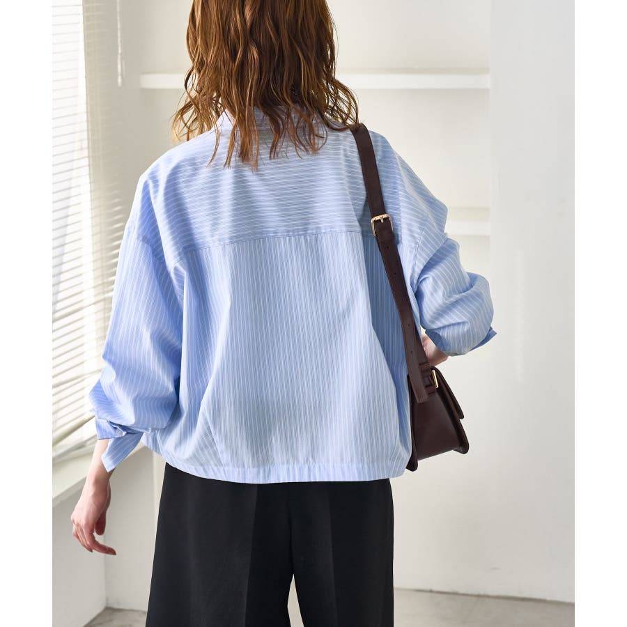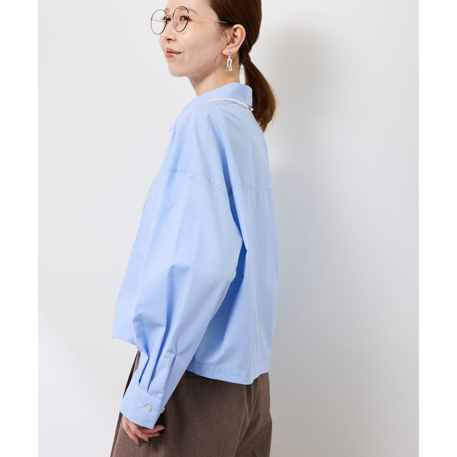 ・裾にダーツをとり構築的なディテールをいれることでバックシルエットがバルーン状につくられるデザインのクロップドシャツ。