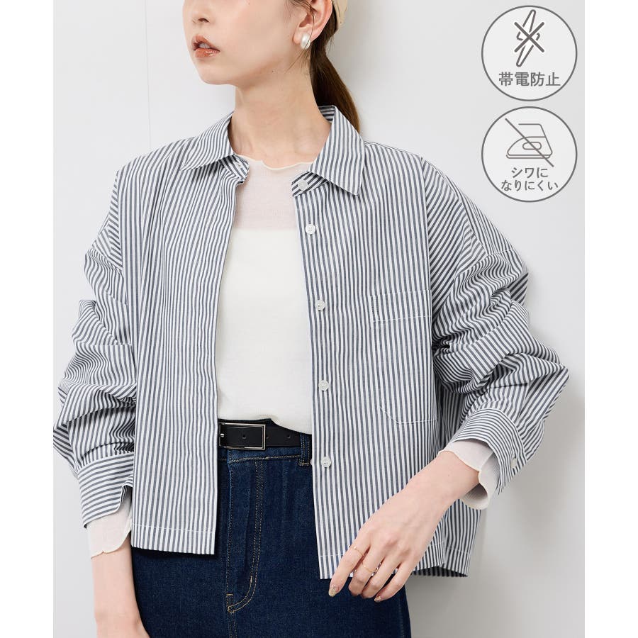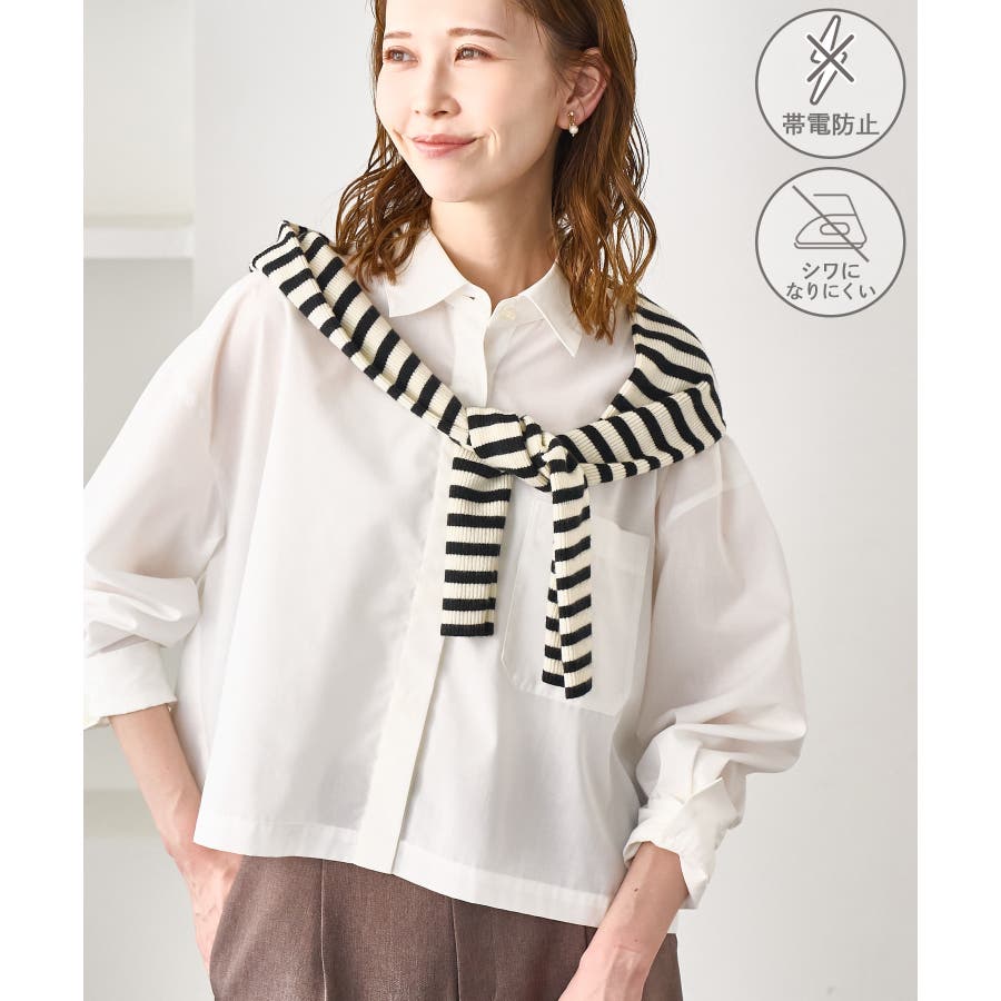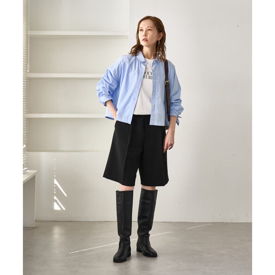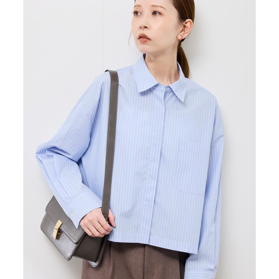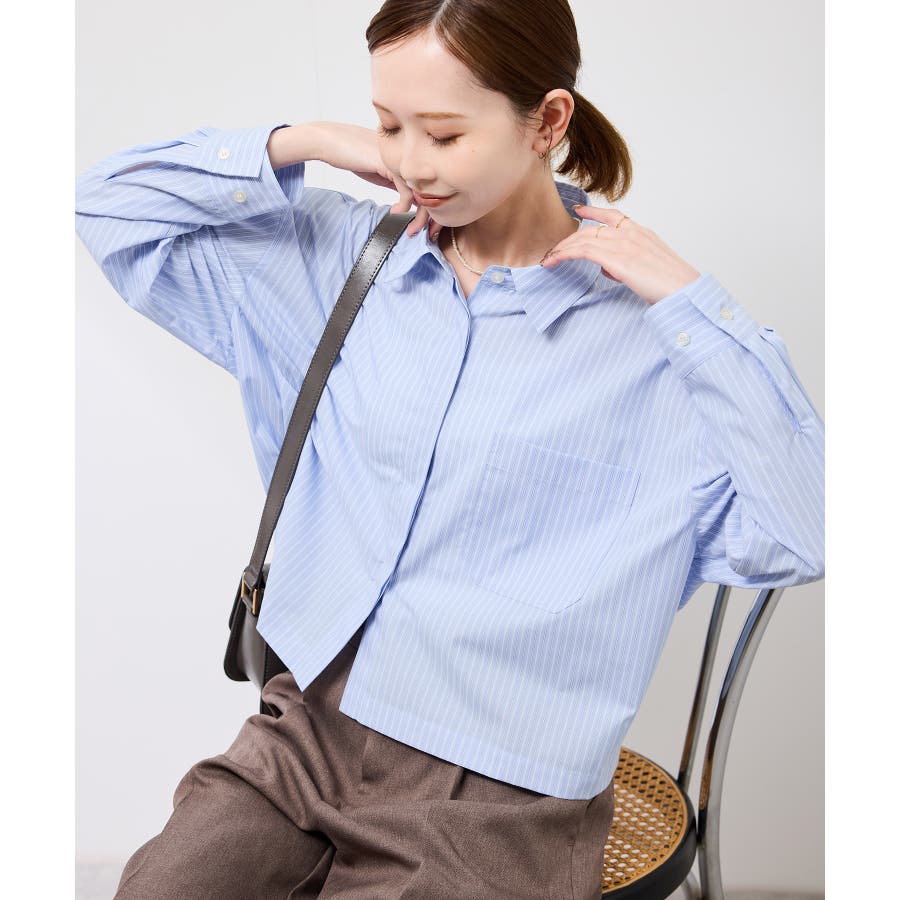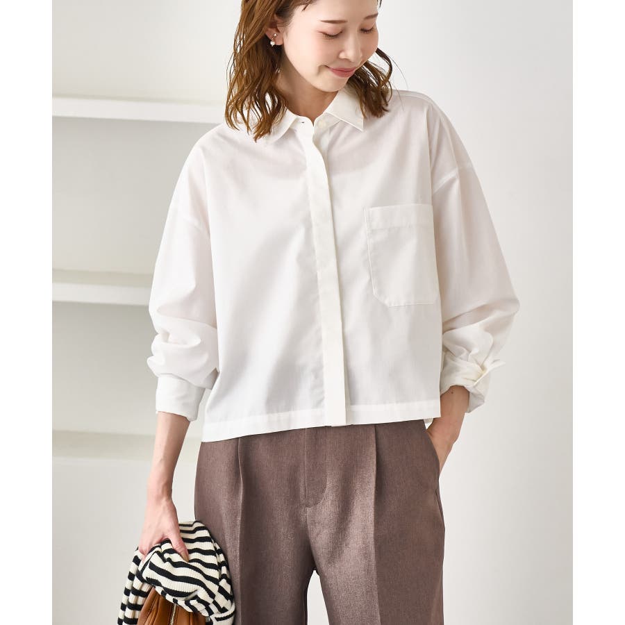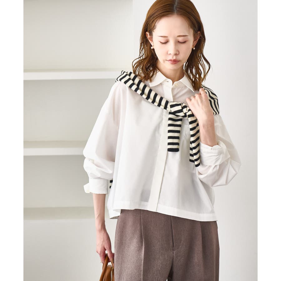 クロップド丈なのでスッキリとした印象があり、小柄さんでも着やすい一枚です。