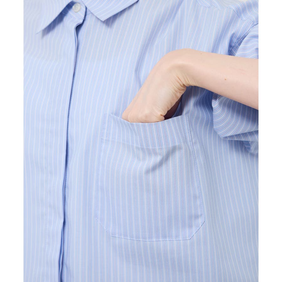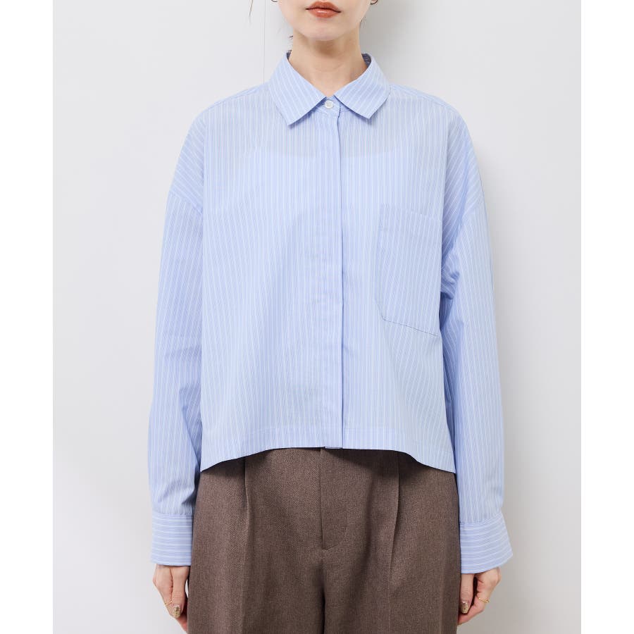 ハリのある素材できちんと感のある短丈シャツです!オンオフ兼用で使えて、ややゆったりめです◎