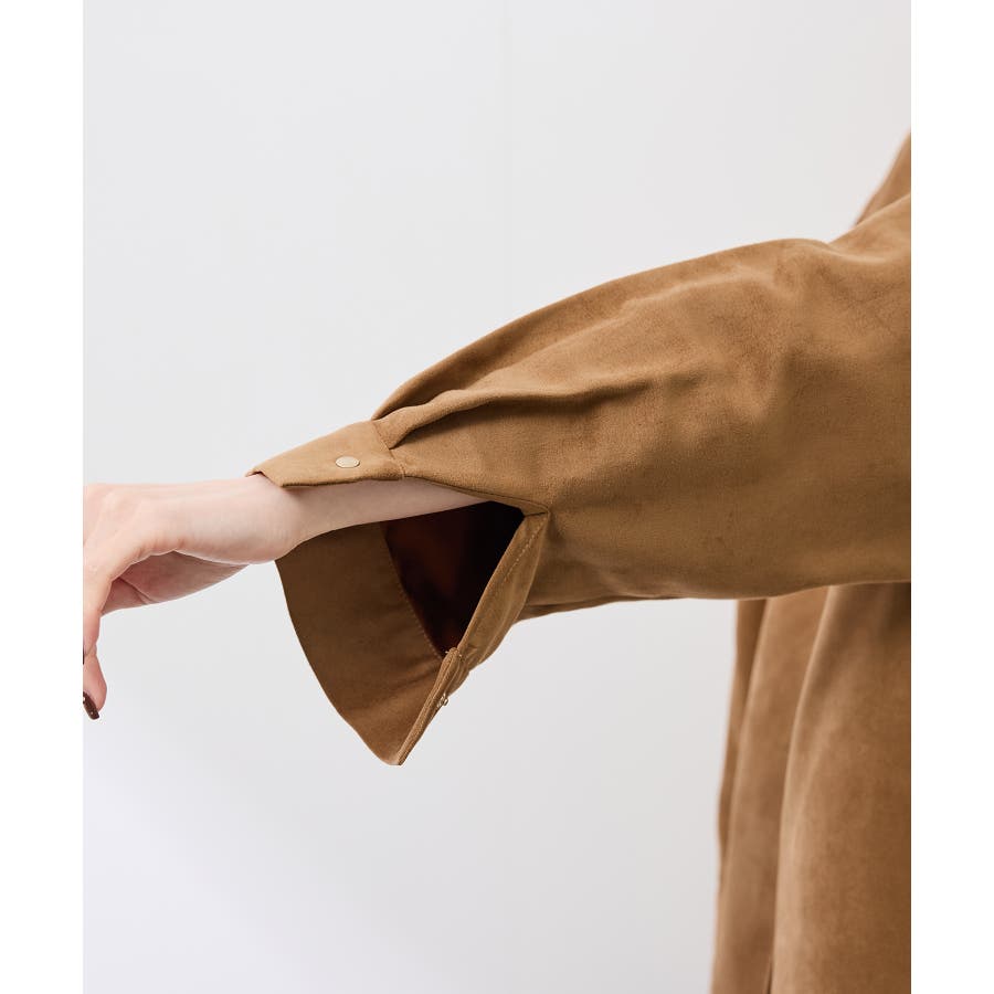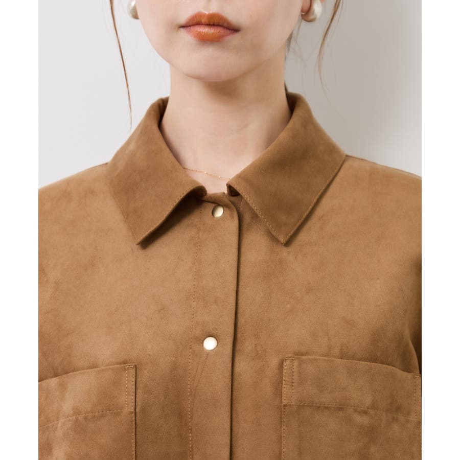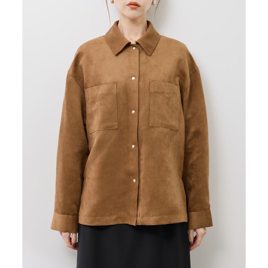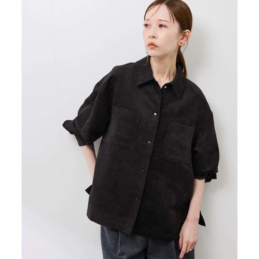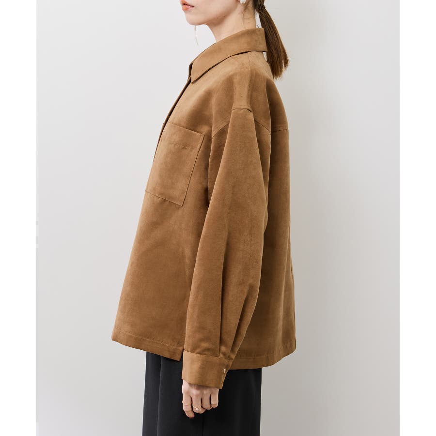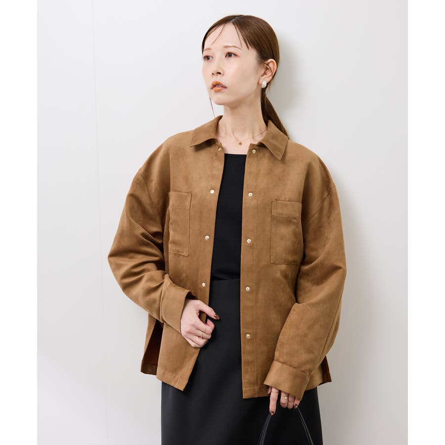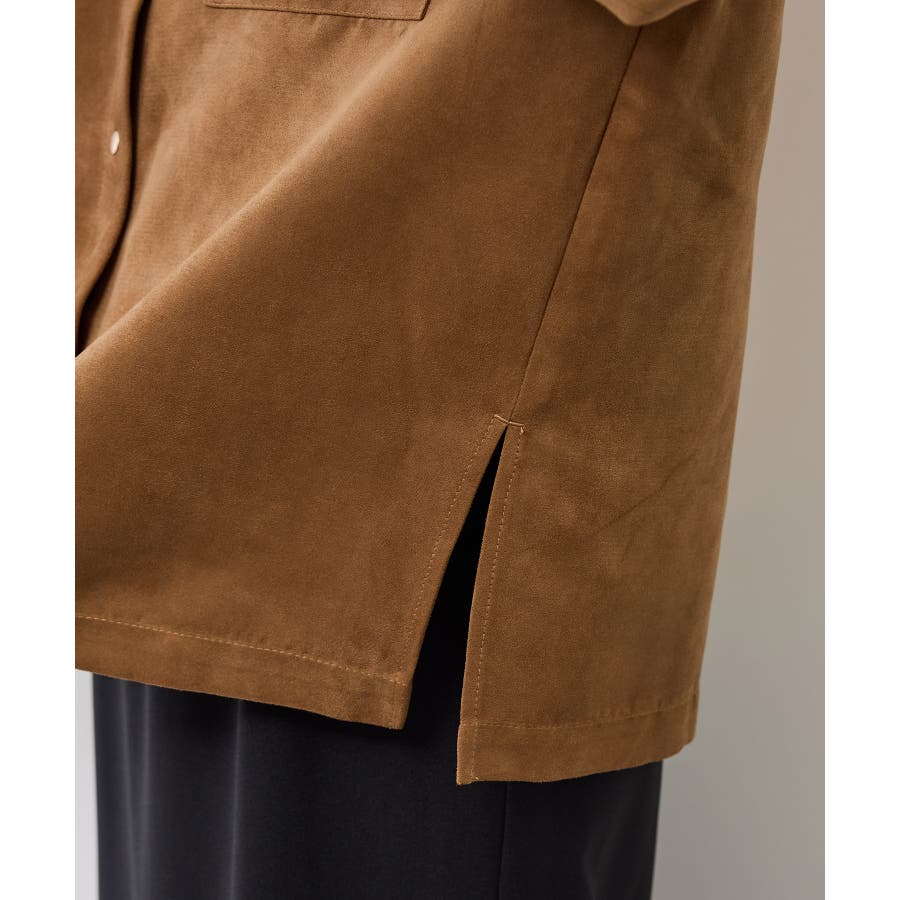 ・シャツ素材と同じ感覚で着用できる柔らかく着やすいスウェードのフェイクレザー素材。
