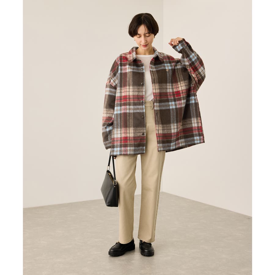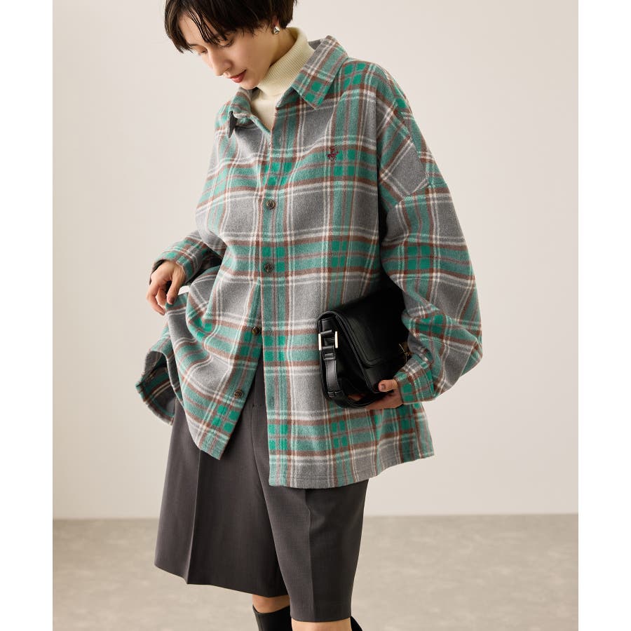 ・クラシックなチェック柄に、別注カラーのアイコン刺繍を胸もとにあしらい、カジュアルながらも品のある印象に。
