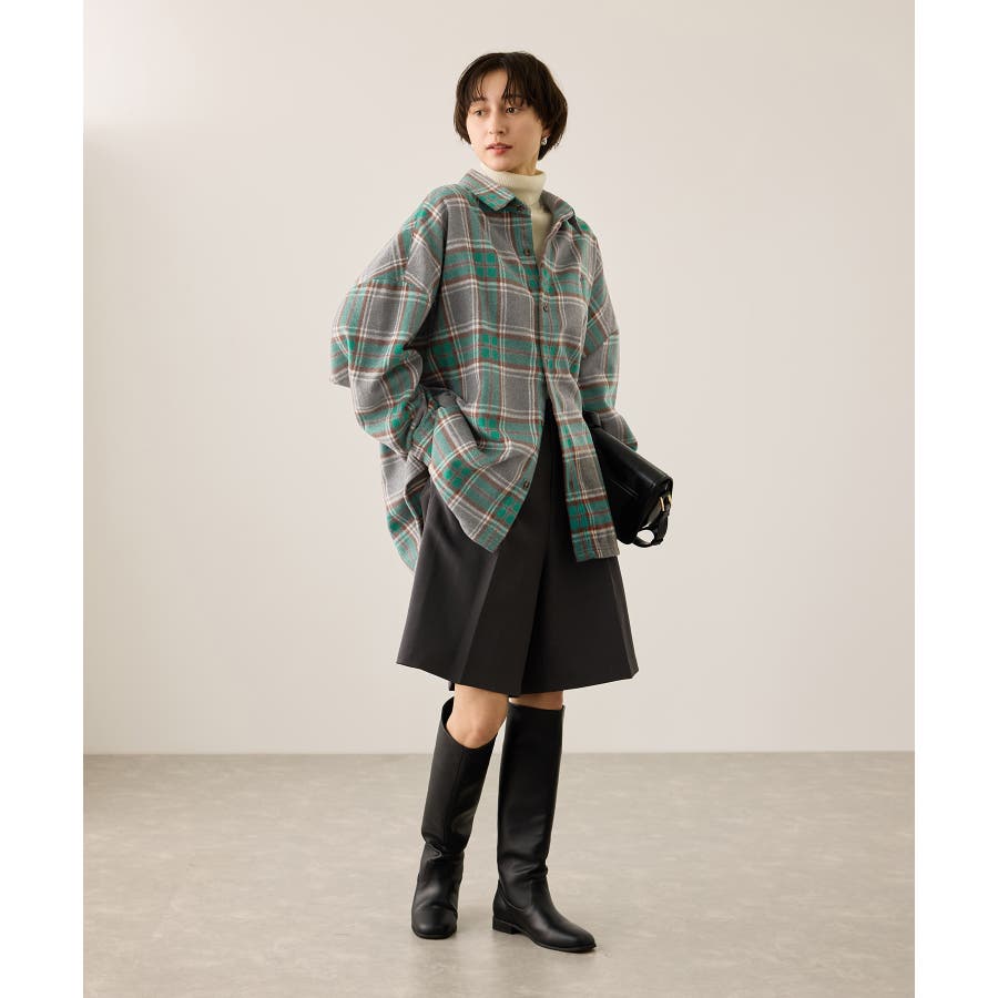 ・ハーフパンツにロングブーツ合わせも、品があるスタイリングに。