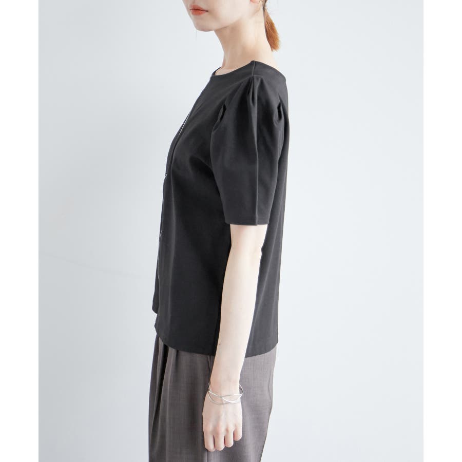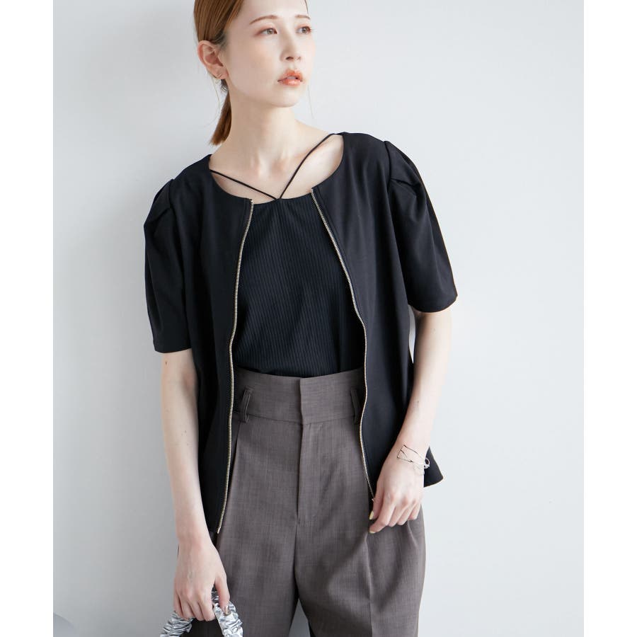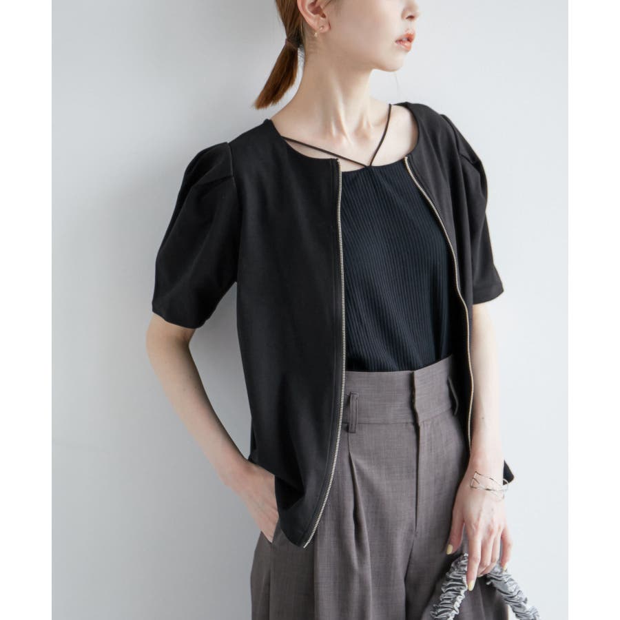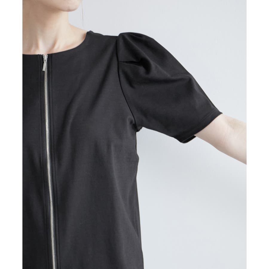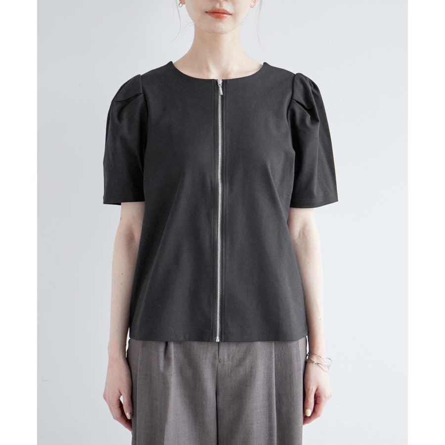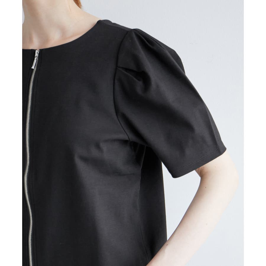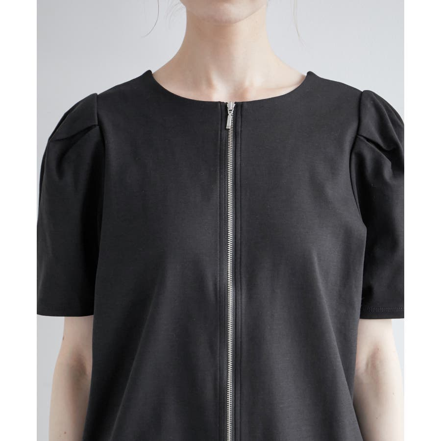 【素材感】 ・ややハリのあるポンチ素材を使用。 【デザイン・シルエット】 ・フロントファスナー開きで羽織としても活躍し、前後逆にしても着られる2WAY仕様。 ・着丈がしっかりとあり、パンツ合わせも安心。 ・裾インしても、もたつかないのも魅力。 【カラー】 ・ブラック、ホワイトのモノトーン2色展開。 ファスナーは両カラーともシルバー。 【スタイリングポイント】 ・バックファスナーでプルオーバー着用なら、Iラインスカートやスティックパンツできれいめにコーディネートを。 ・タンクトップとジーンズのラフなコーデには羽織で活用して。 ・ワンピースの羽織物にも最適。 ----------------------------- 裏地:なし 透け感:ホワイト(10)はややあり 伸縮性:ややあり 生地感・厚さ:普通 ポケット:なし 季節:春~秋 ----------------------------- ※撮影時の光、お使いのモニター環境によって色の見え方が違う場合がございます。 ※モデル身長:165cm 着用サイズ:38