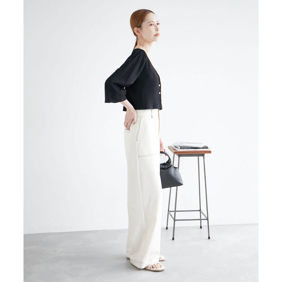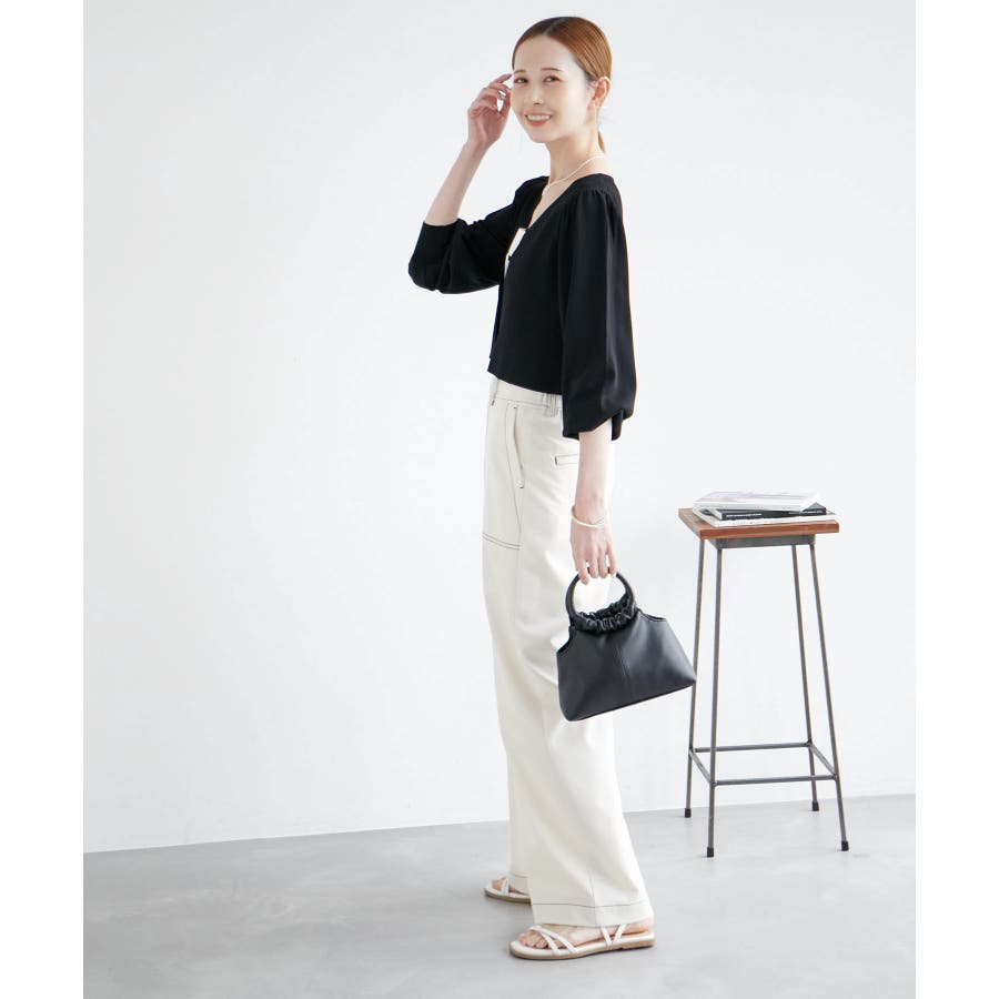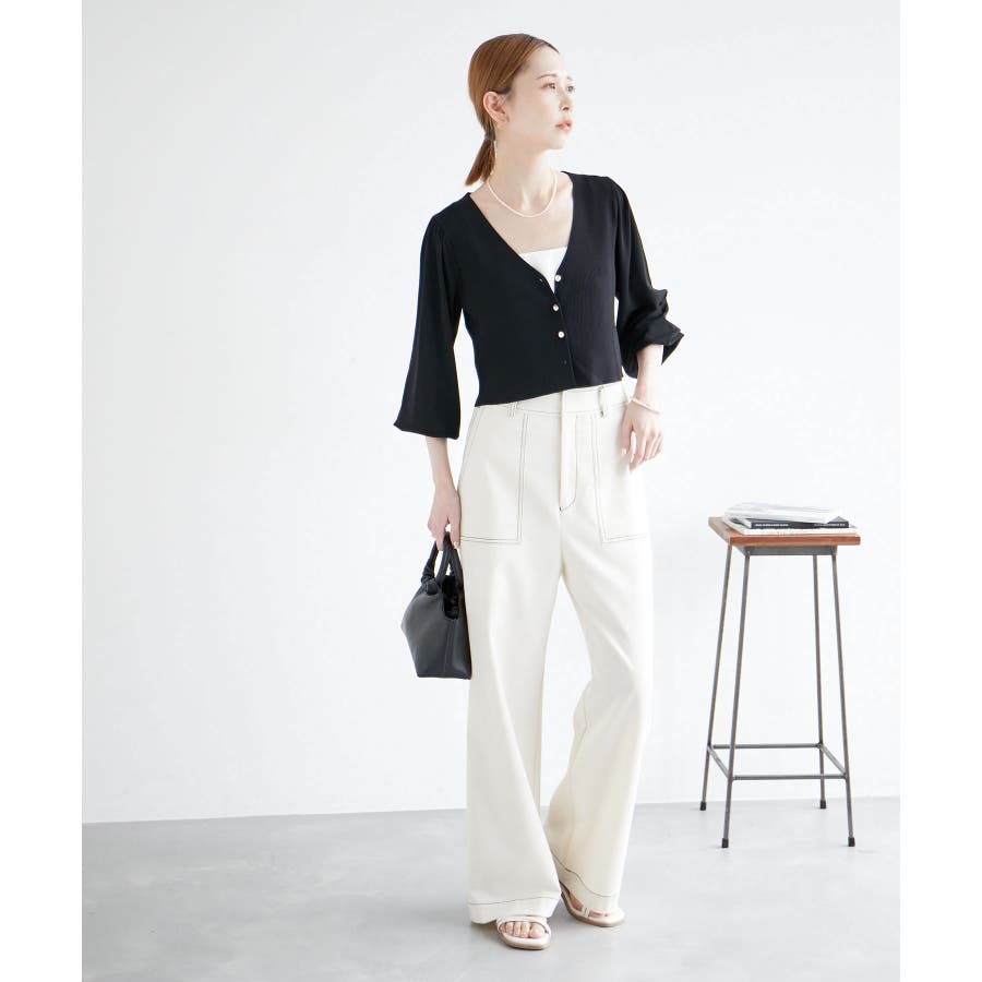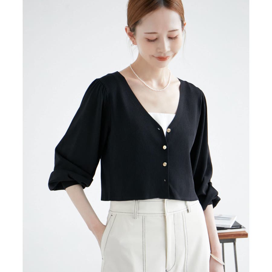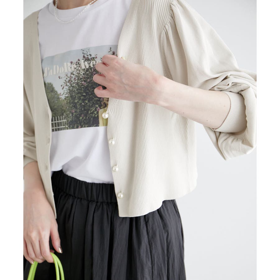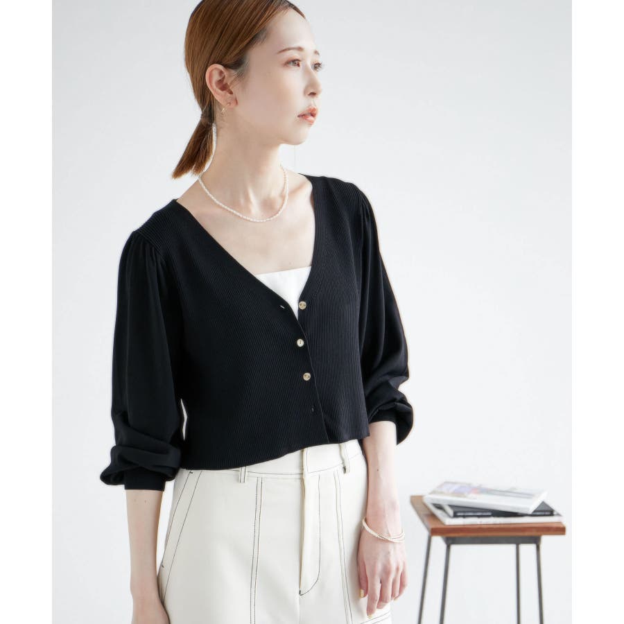 【素材感】 ・伸びの良いストレッチニットで動きやすさも抜群。 ・日差しの強い時期に嬉しいUVカット素材。 【デザイン・シルエット】 ・ボリュームたっぷりな袖と好バランスを形成する、ショート丈のVネックカーディガン。 ・袖口は長めのリブで切り替え、全体を引き締め。 【カラー】 ・ブラック、ライトグレー、ダスティブルー、クリームイエローの4色展開。 ・カラーによってボタンが異なります。 ブラック(01)クリーム(83):ゴールドボタン ライトグレー(08)ブルー系(45):パールボタン 【スタイリングポイント】 ・着丈の長い、チュニックシャツやロングカットソーとのレイヤードに。 ・広がりやすいワンピースの羽織にも活躍。 ・春っぽさを狙うなら、クリームイエローをチョイスして。 <同シリーズ> ・袖フレアニット(品番:GDM14550) ・タックスリーブニット(品番:GDM14510) ・バックパールニット(品番:GDM14540) ・ゼロスリーブニット(品番:GDM14520) ・ハーフスリーブ(品番:GDM14500) ----------------------------- 裏地:なし 透け感:なし 伸縮性:あり 生地感・厚さ:普通 季節:春・夏 ----------------------------- ※撮影時の光、お使いのモニター環境によって色の見え方が違う場合がございます。 ※モデル身長:165cm 着用サイズ:38