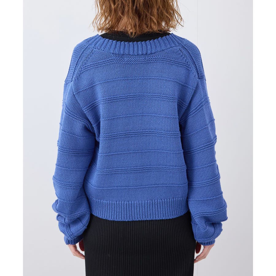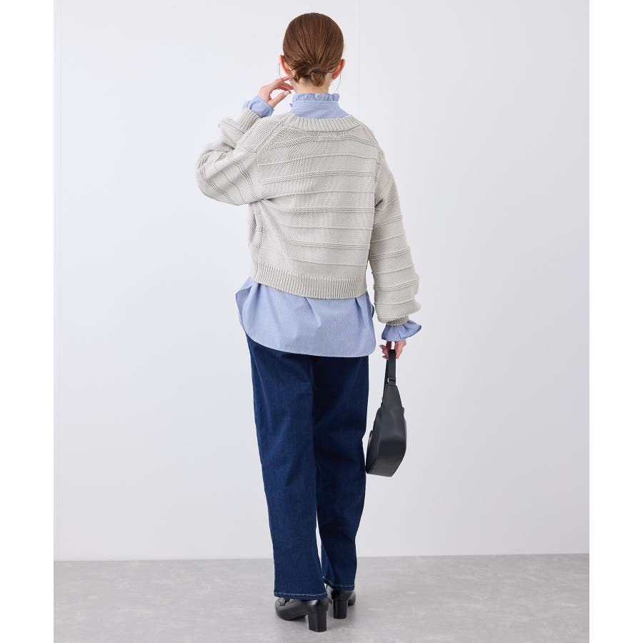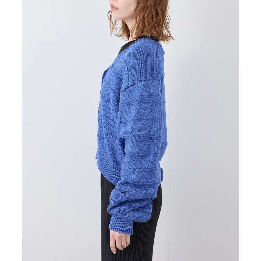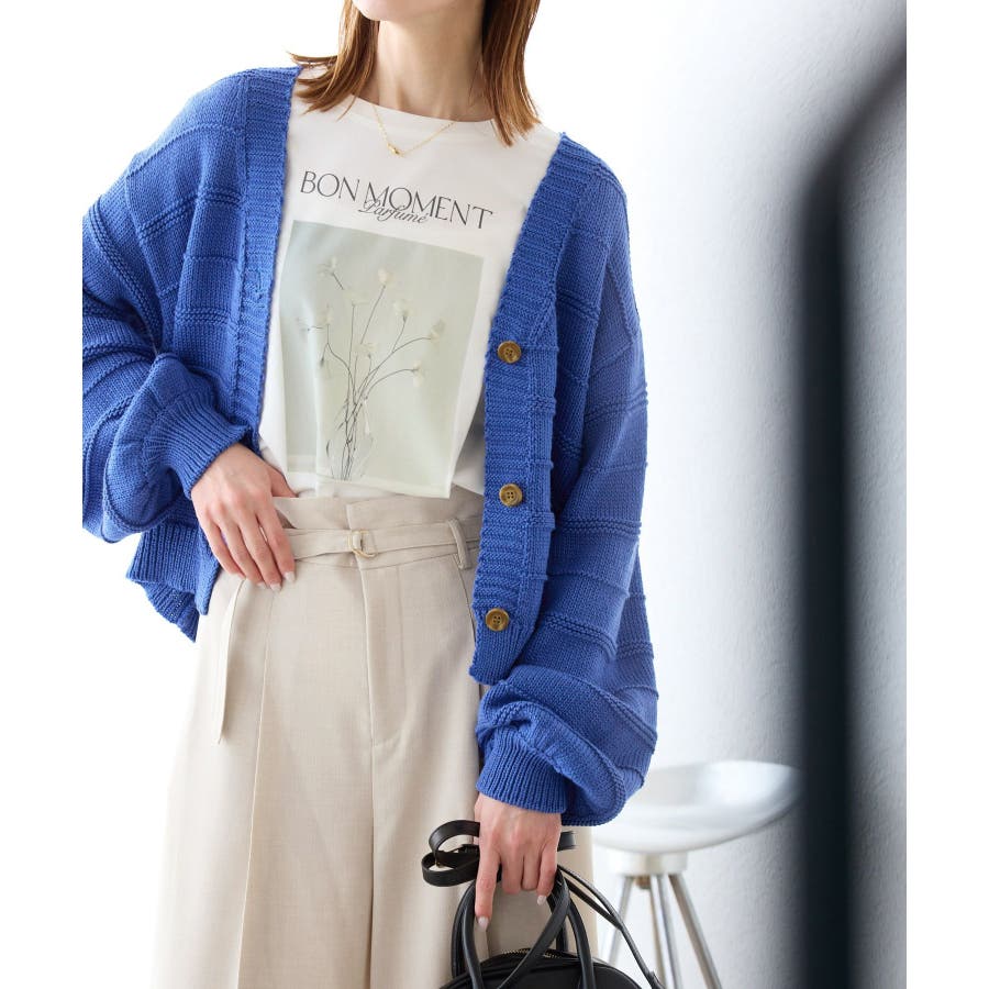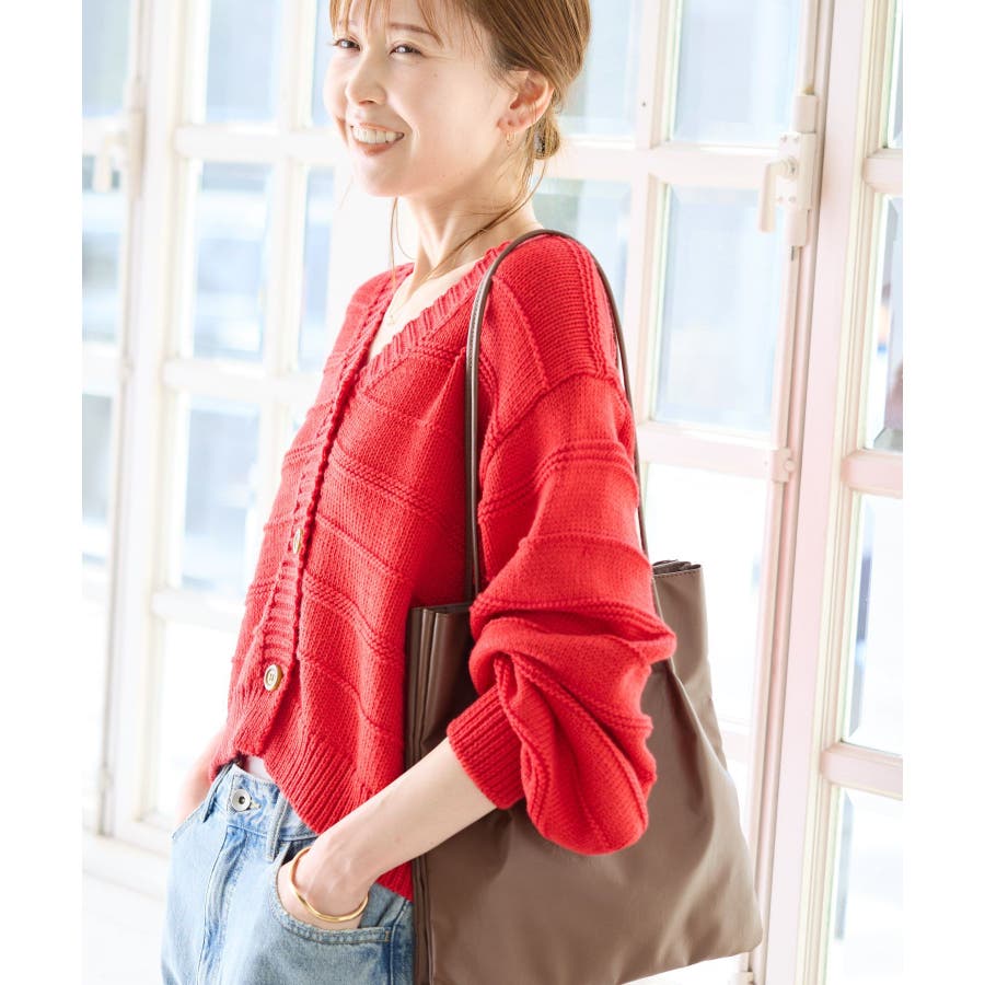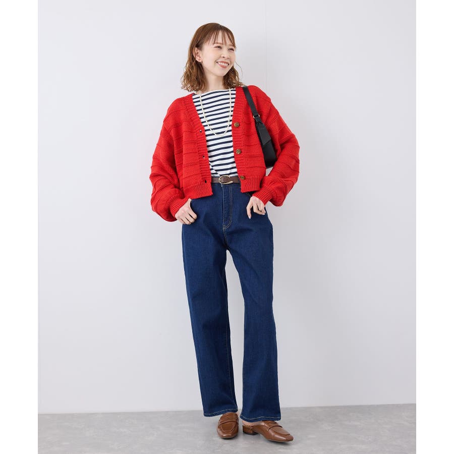 【デザイン・シルエット】 ・ガーター編みの表情豊かなボーダー柄ニットカーディガン。 ・ルーズフィットをバランス良く見せる、Vネックとショート丈がポイント。 ・リブ編み切り替えは幅を持たせてすっきり感をプラス。 ・華やかな金ボタンを採用。 【カラー】 ・ライトグレー、ブルー、レッド、クリームイエローの明るい4色を展開。 【スタイリングポイント】 ・レッドはデニムのボトム合わせが一押し。 ・可愛らしいオールインワンの上から羽織ると今っぽいスタイルに。 ・前の開きが広いので、インナーはロゴロンTが一押し。 ・マフラーのように巻いてポイントにするのも可愛い。 ----------------------------- 裏地:なし 透け感:なし 伸縮性:ややあり 生地感・厚さ:普通 ポケット:なし 季節:秋・冬 ----------------------------- ※撮影時の光、お使いのモニター環境によって色の見え方が違う場合がございます。 ※モデル身長:165cm 着用サイズ:38