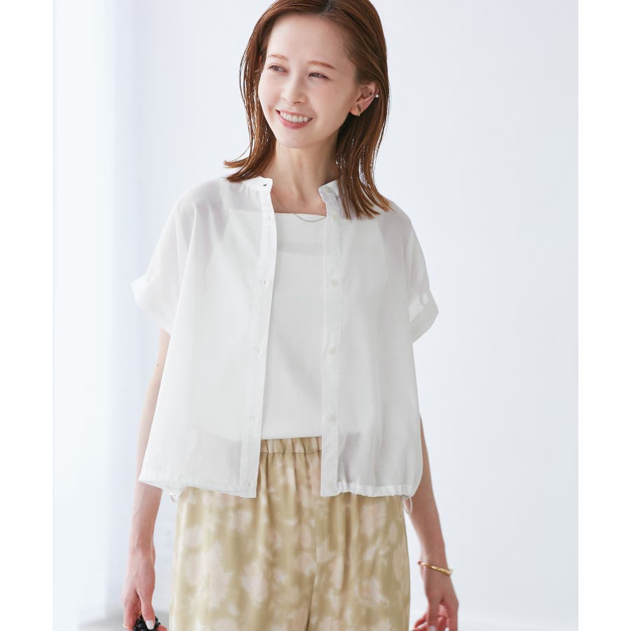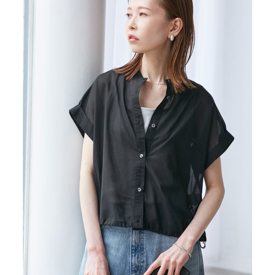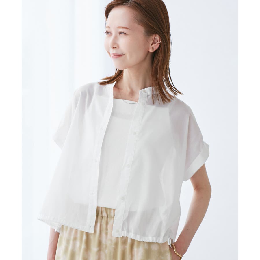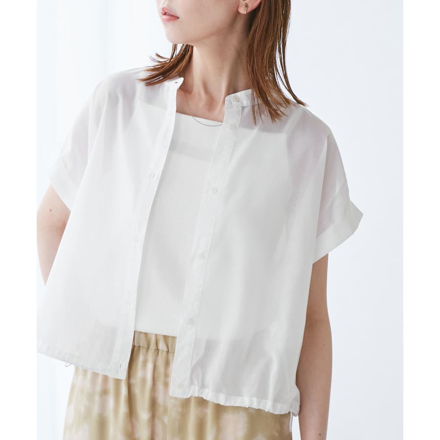 ・裾のコードを絞ることで、ふんわりとしたバルーンシルエットが作れるクロップドシャツ。