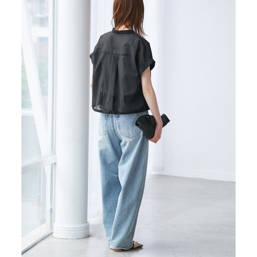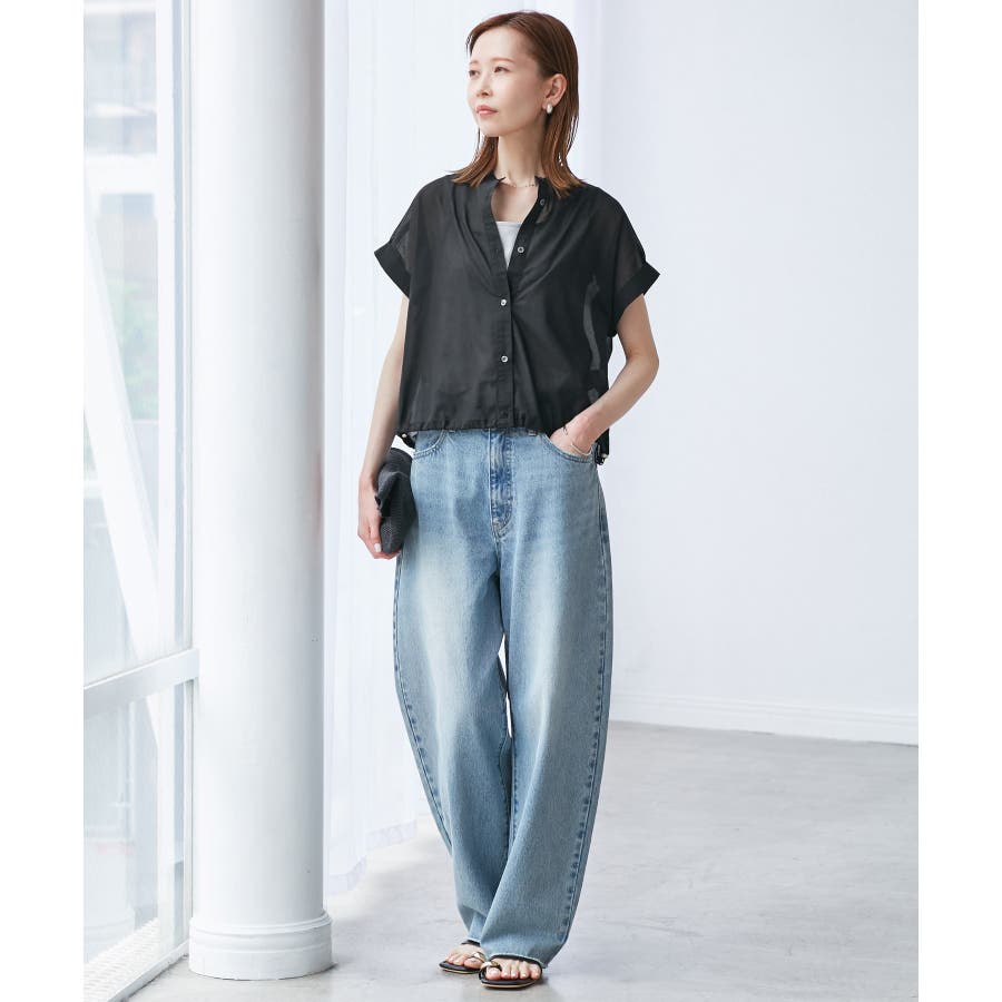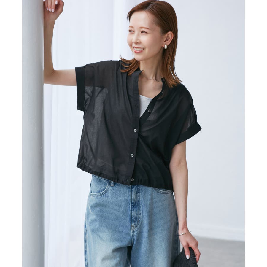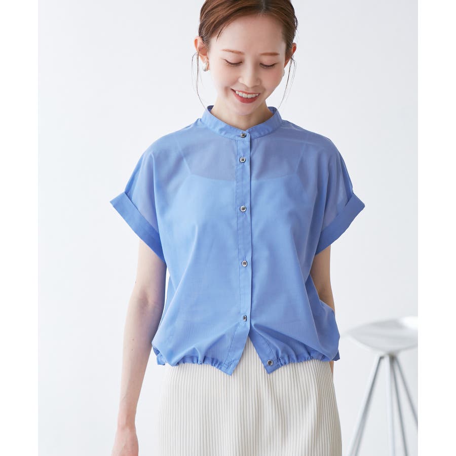 ・裾のコードを絞ることで、ふんわりとしたバルーンシルエットが作れるクロップドシャツ。