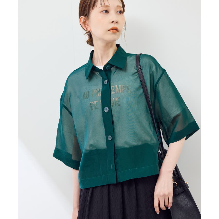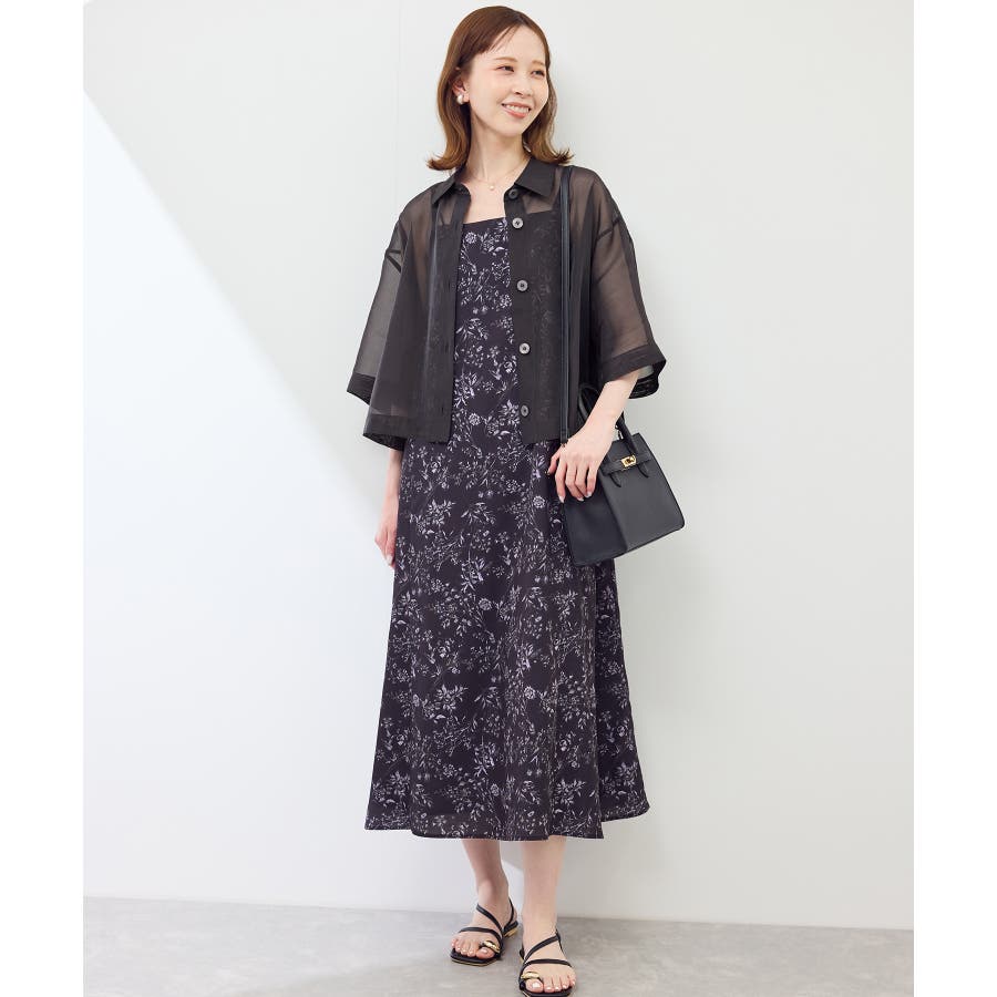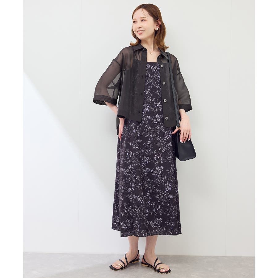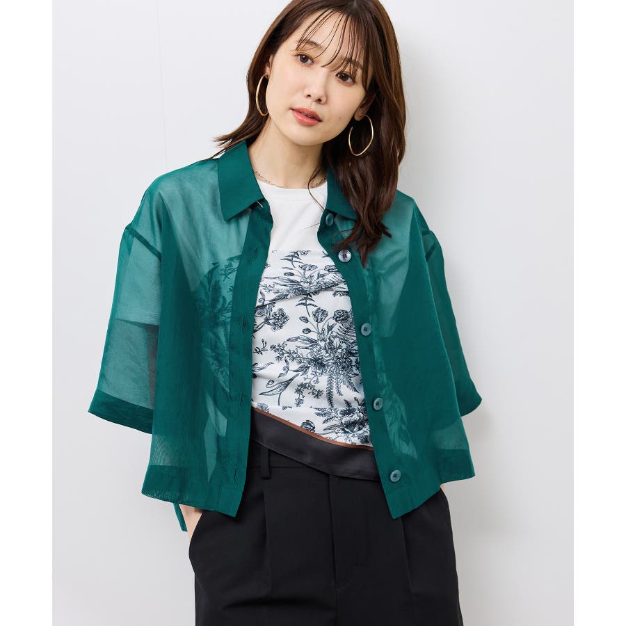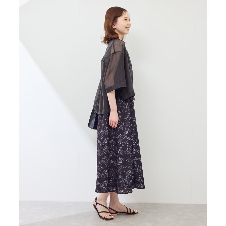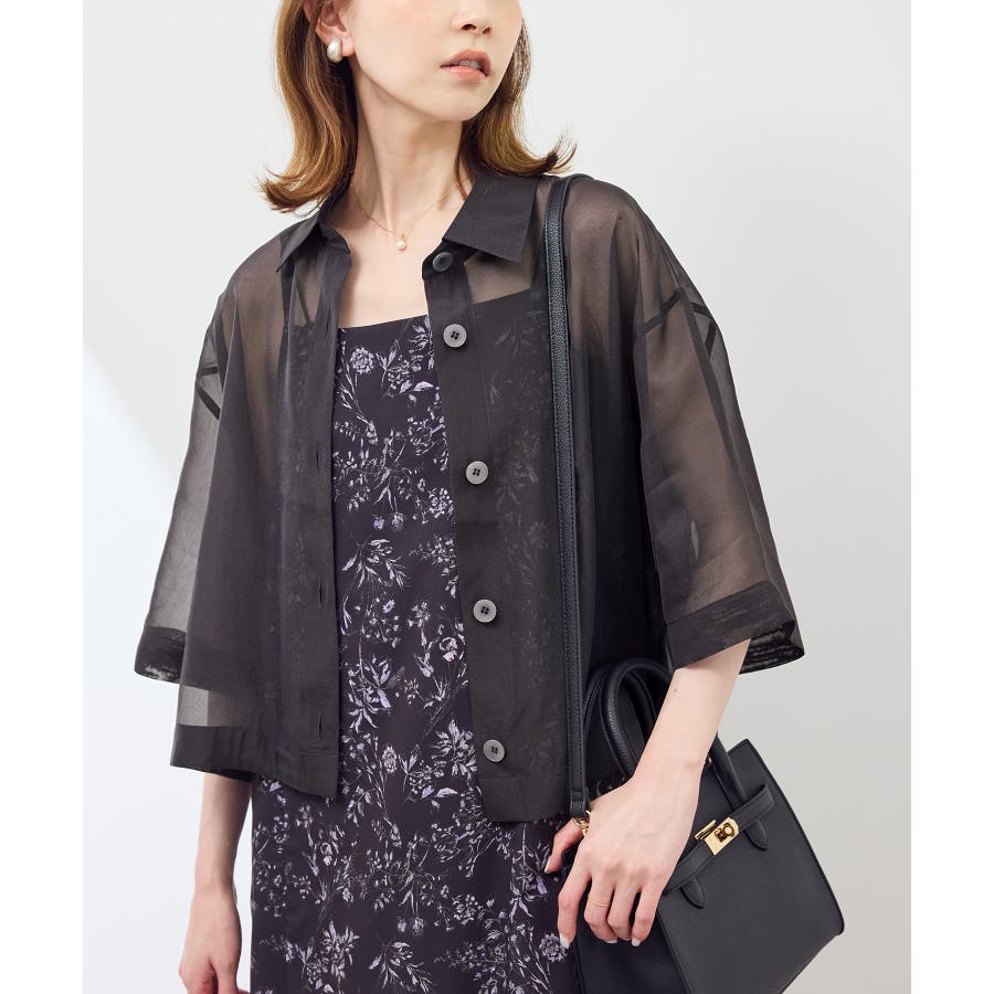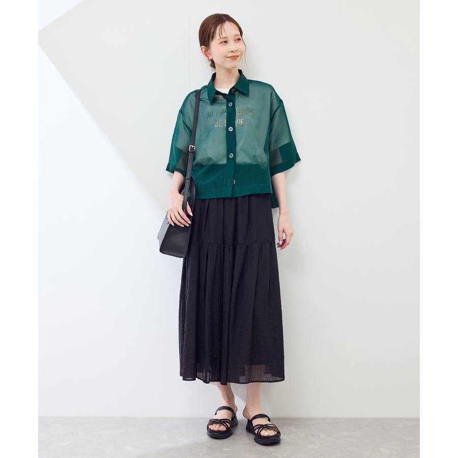 ・シアー素材&五分袖よりやや長めの袖で大胆な露出は避けながら清涼感のあるスタイルに。