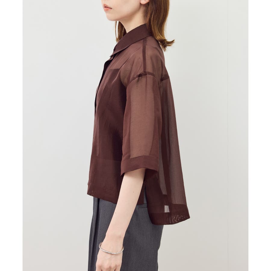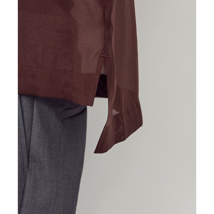 ・オーバーサイズで作る、素材のハリ感が特徴的なシアーシャツ。