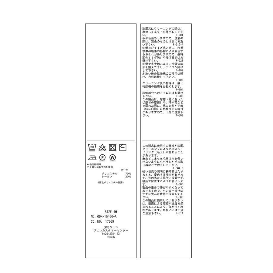 40:着丈 56 肩幅 37 バスト 98 そで丈 58 その他 (袖幅)16.5